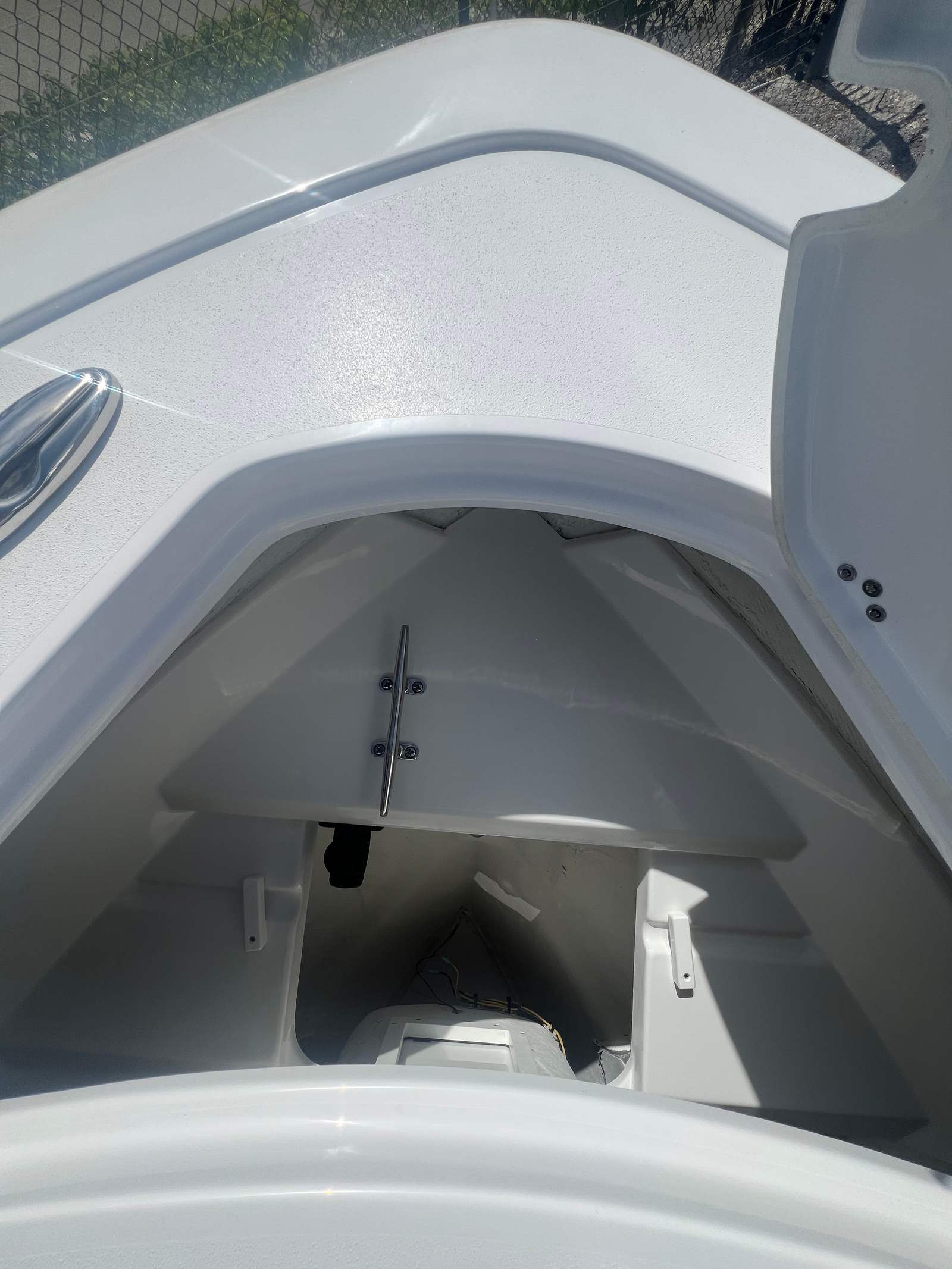 The Sportsman Open 232 is loaded with premium features that enhance both functionality and comfort. The fiberglass console is thoughtfully designed with a footrest and ample storage, keeping your essentials organized and within easy reach. The fiberglass hard top, complete with integrated LED lighting, provides shade and visibility for those long days under the sun, while the hardtop’s underside in Jet Black adds a touch of sophistication.The boat’s powder coating in Black not only adds to its visual appeal but also offers durability and protection against the elements. Step aboard and you’ll immediately notice the Serenity Sileather Smoky Gray upholstery, which offers a luxurious and weather-resistant seating experience. The premium dual chair leaning post features flip-up bolsters for customizable comfort, and the slide-out track for a Yeti cooler ensures your refreshments stay chilled throughout your adventure. Additionally, the under-leaning post tackle storage keeps your gear organized and ready for action, making this center console boat a true angler’s companion.