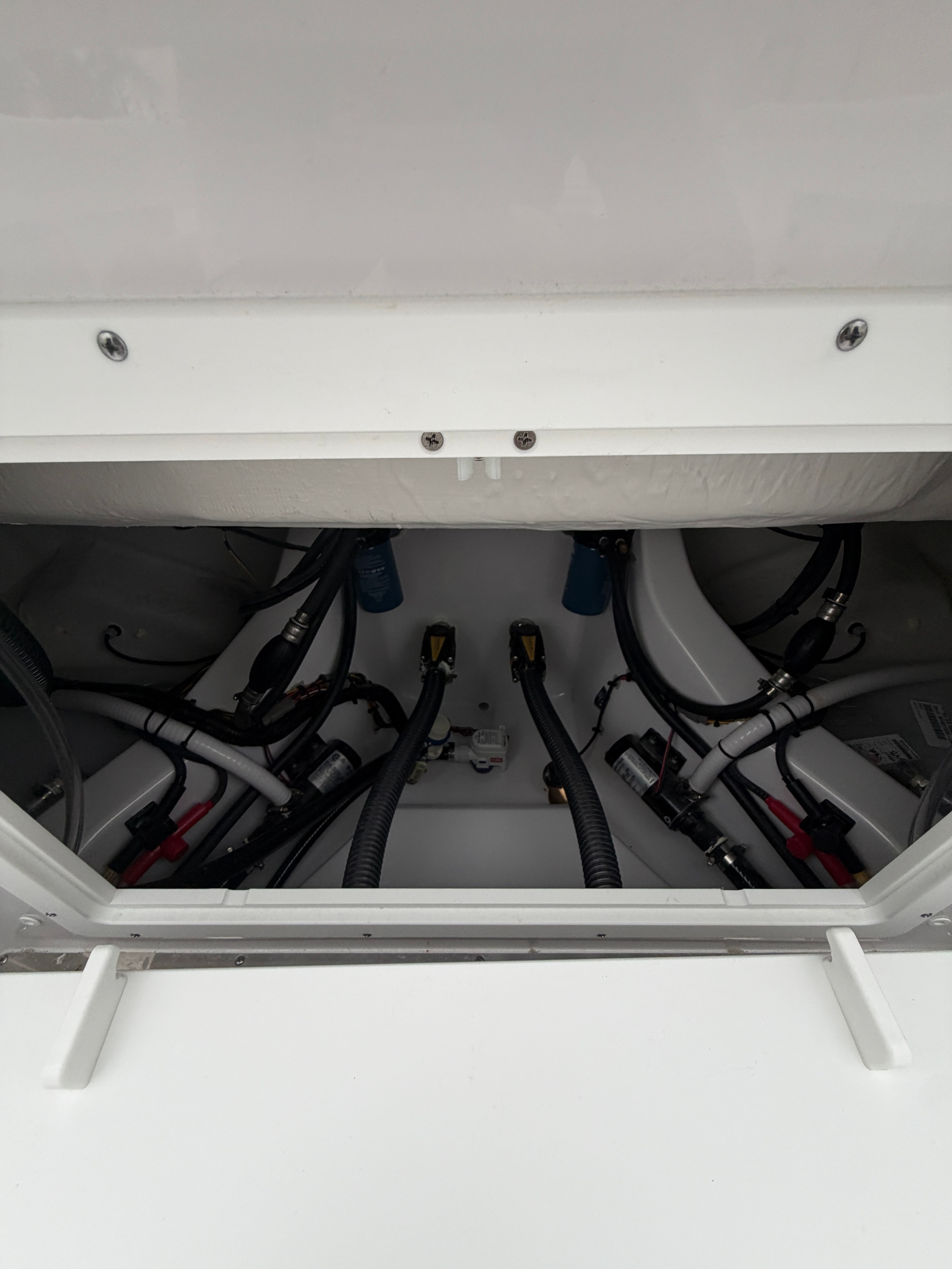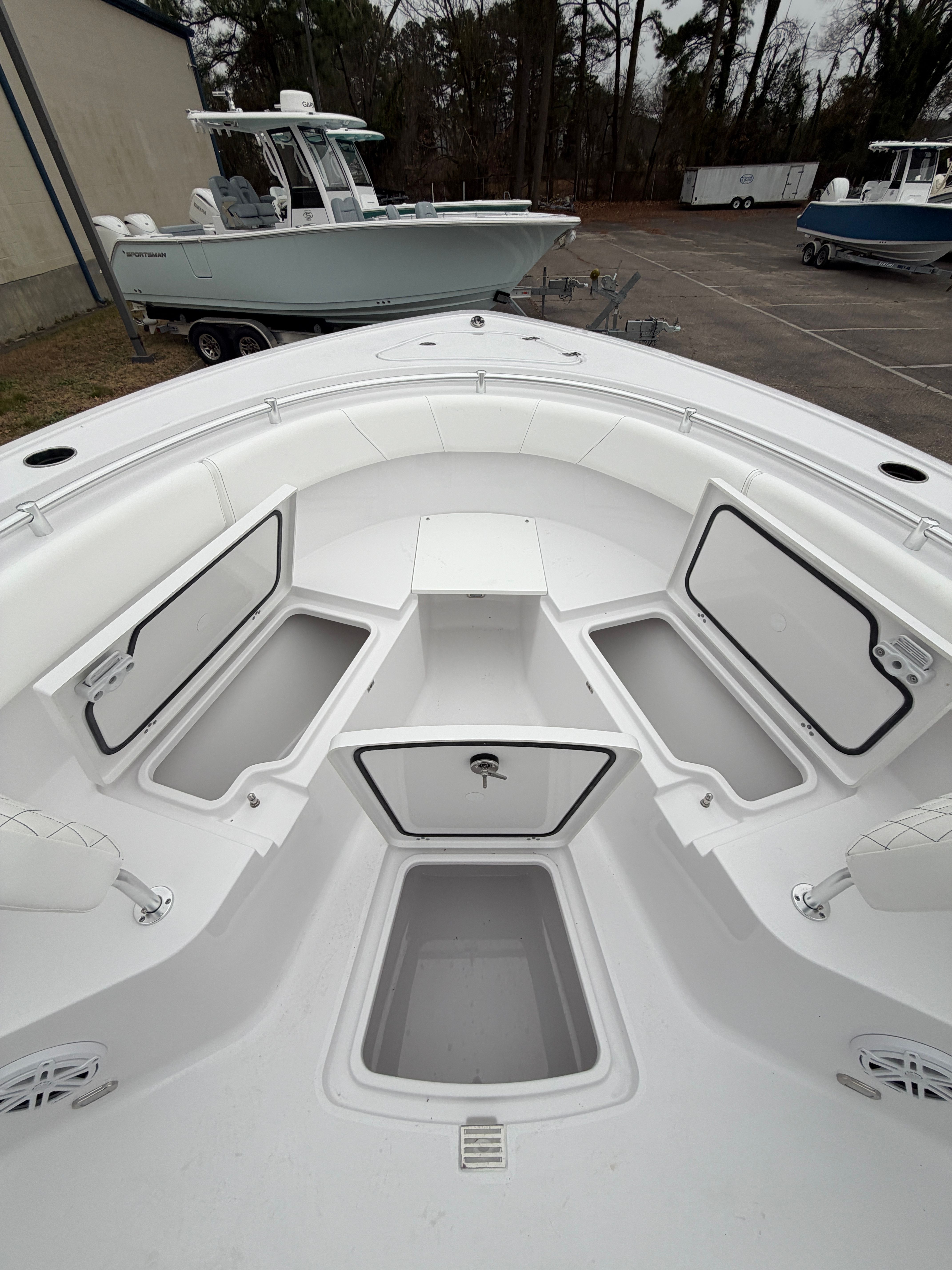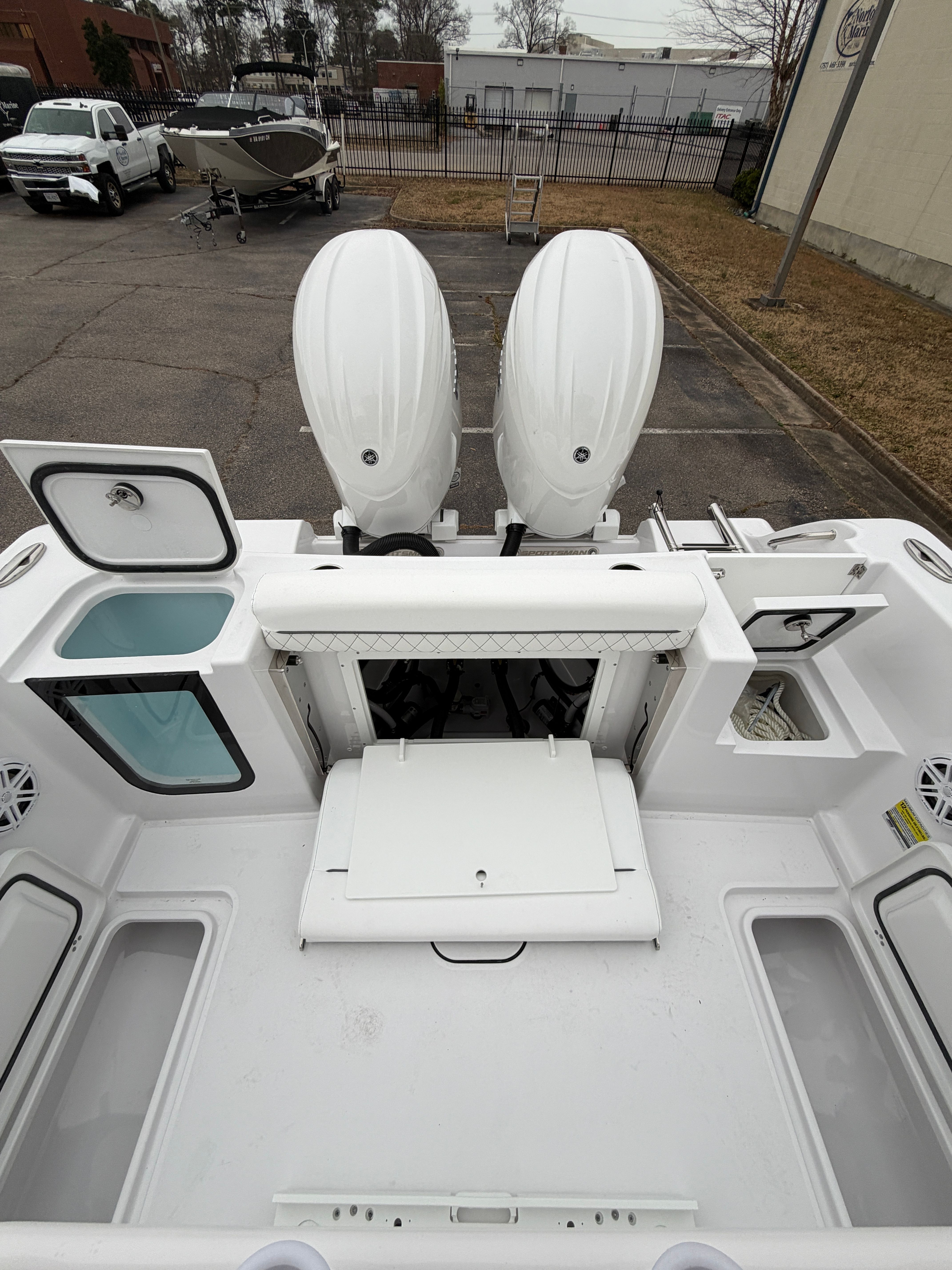 The Sportsman Open 252 is as practical as it is enjoyable. Its 25.25-foot length strikes the perfect balance between spaciousness and manageability, making docking and storage straightforward. The twin Yamaha engines deliver not only power but also fuel efficiency, ensuring you get the most out of every trip. The hard top with LED lighting extends your boating hours, providing visibility and ambiance after sunset.Storage solutions are thoughtfully integrated throughout the boat, with a console that features a fiberglass liner and a cooler seat for refreshments. The ProMariner battery charger keeps your electronics and systems powered up, reducing downtime and maintenance hassles. The porcelain head with pump out adds a level of convenience that is often missing in boats of this size, making the Open 252 ideal for longer journeys or overnight stays.
