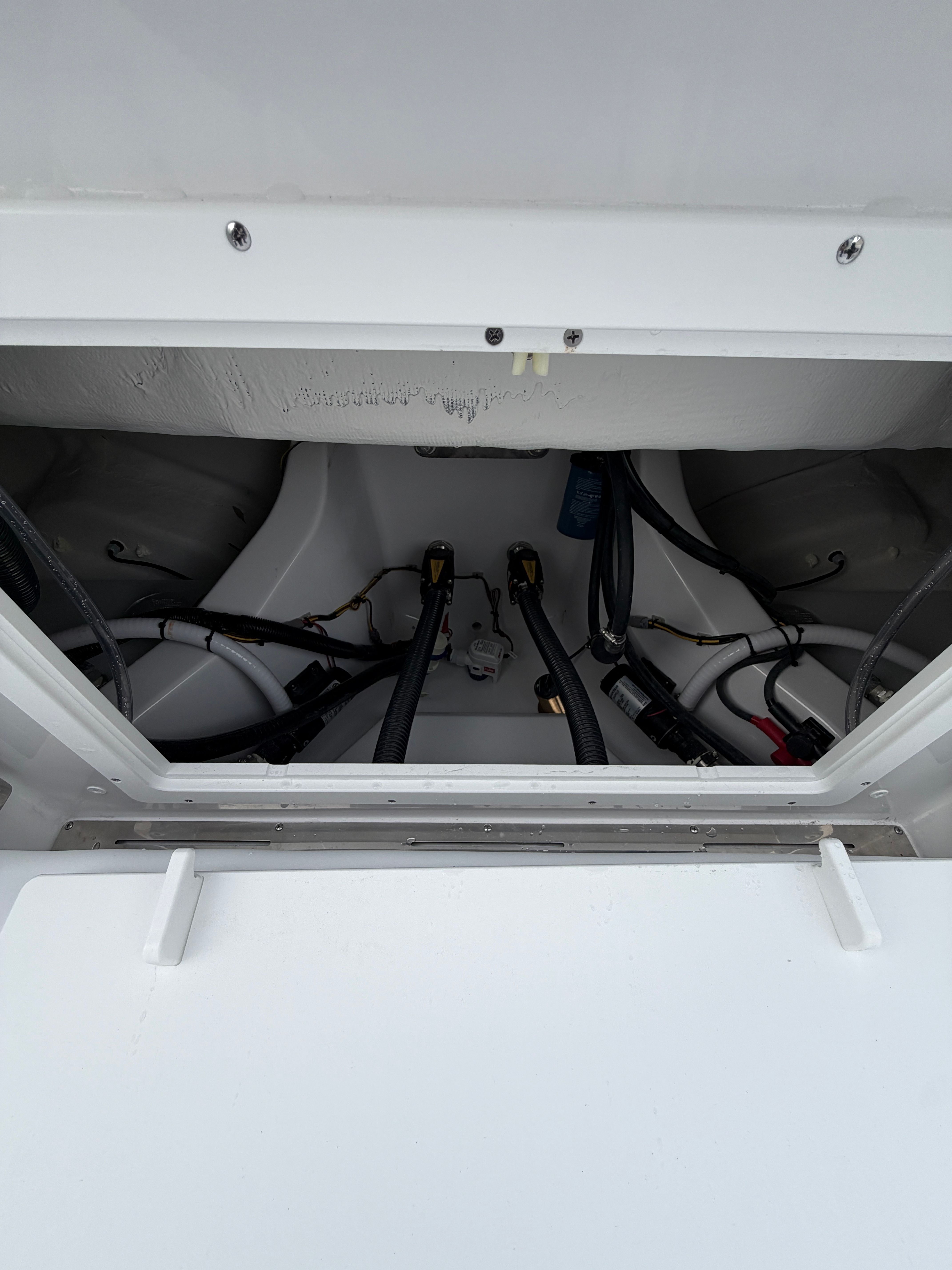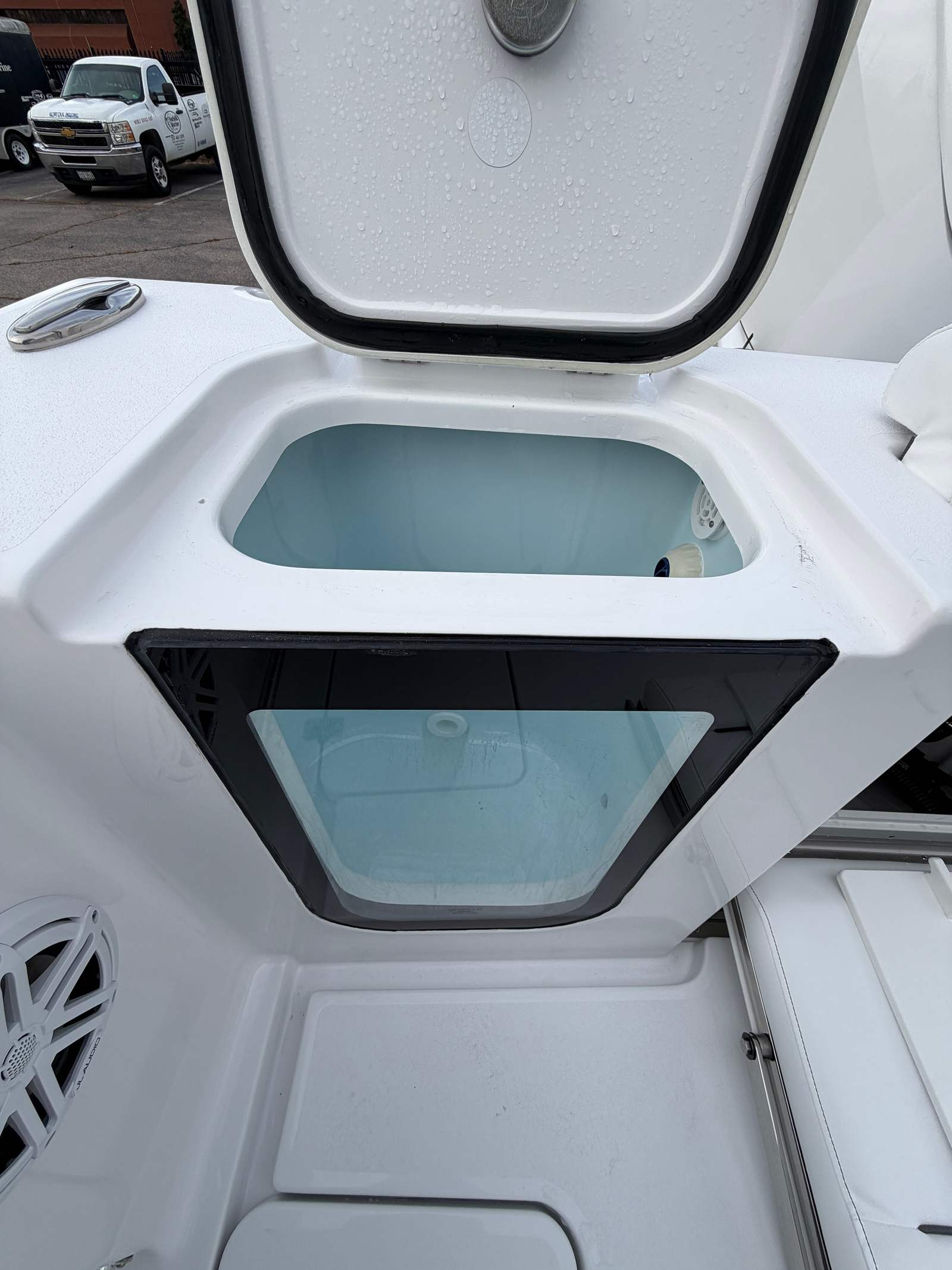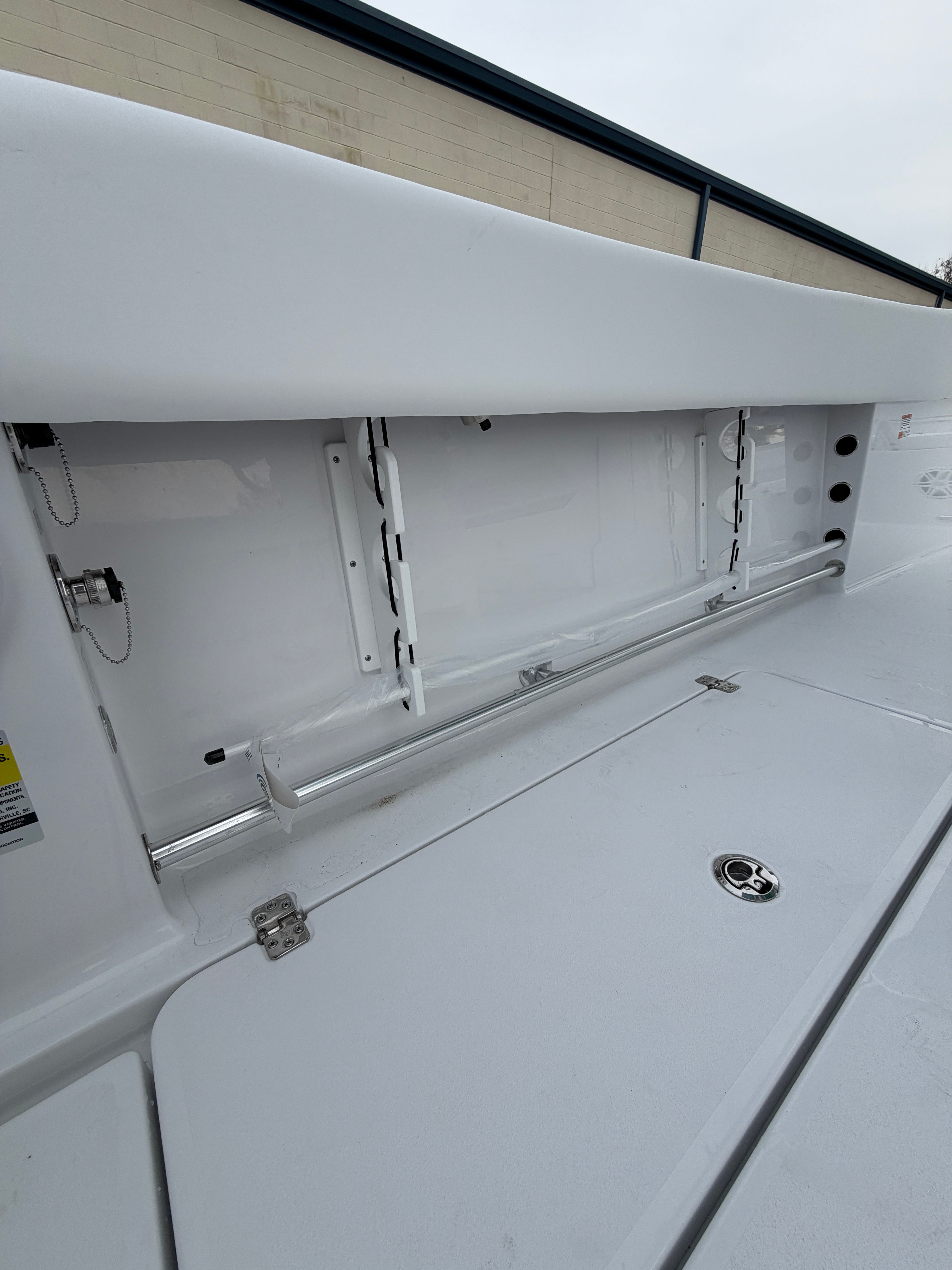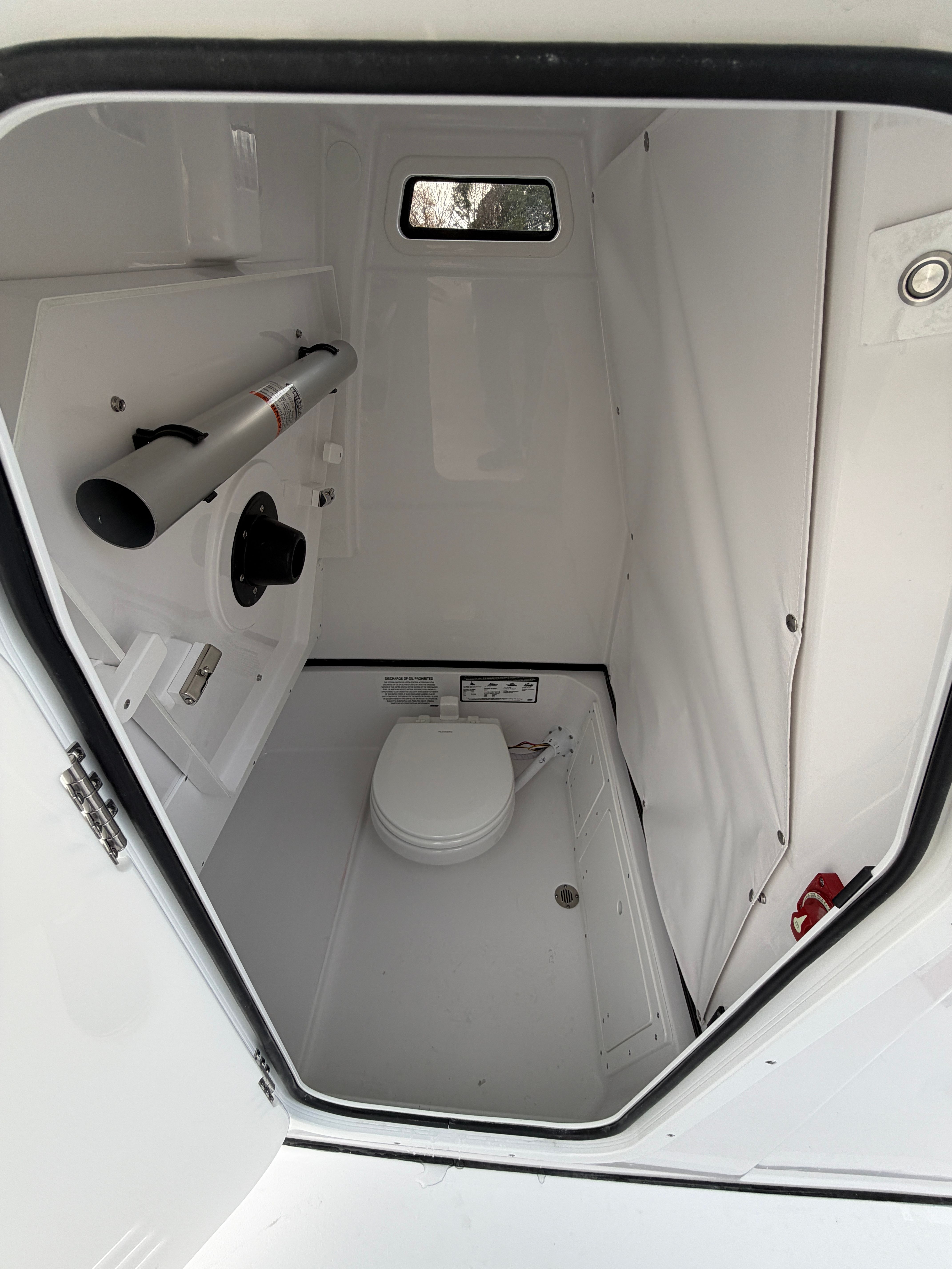 The Sportsman Open 252 is as practical as it is fun. Its 25.25-foot length offers ample storage for all your gear, from fishing equipment to water toys and picnic supplies. The efficient layout ensures that everything you need is within easy reach, while the hard top provides protection from the elements. Docking and maneuvering are made simple thanks to the intuitive steering system and powerful engine, allowing you to explore new destinations with ease.Fuel efficiency is a key consideration for any boater, and the Open 252’s modern design and single-engine setup help you make the most of every gallon. The windlass system streamlines the anchoring process, saving you time and effort so you can focus on enjoying your day. The porcelain head with overboard discharge and pump out adds a level of convenience that makes extended trips more comfortable, ensuring you and your guests have everything you need for a full day on the water.