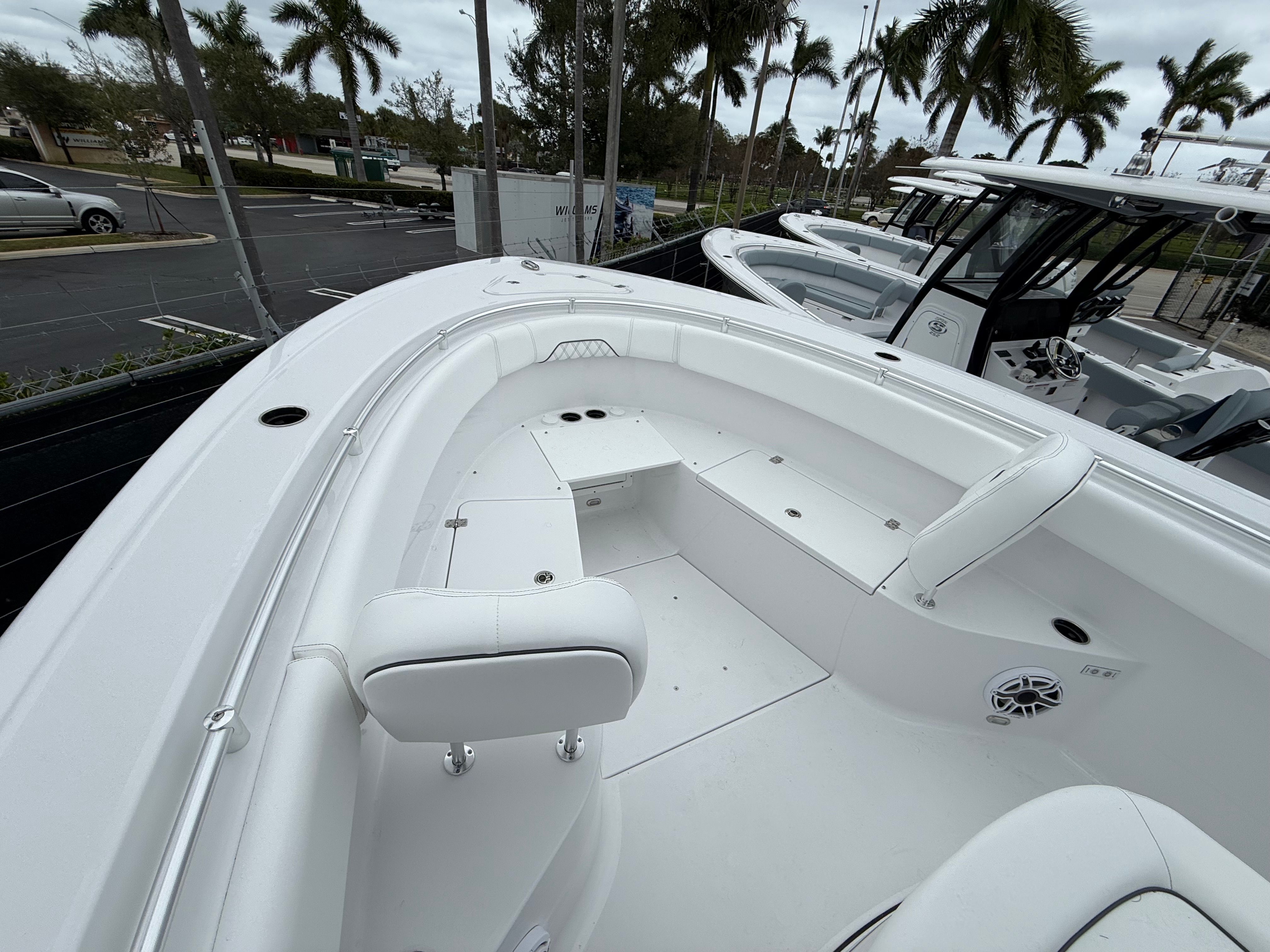 At the heart of the Sportsman Open 282 is a powerhouse setup: twin Mercury AMS 300 V8 engines in a stunning white finish, delivering a combined 600 horsepower. This robust engine configuration provides exhilarating acceleration, smooth cruising, and reliable performance, whether you are navigating coastal waters or venturing offshore. The advanced engineering behind the Mercury AMS 300 V8 engines ensures optimal fuel efficiency and responsive handling, giving you the confidence to tackle a variety of water conditions. The Open 282’s performance is further enhanced by its expertly designed hull, which offers stability and a dry, comfortable ride for all on board.