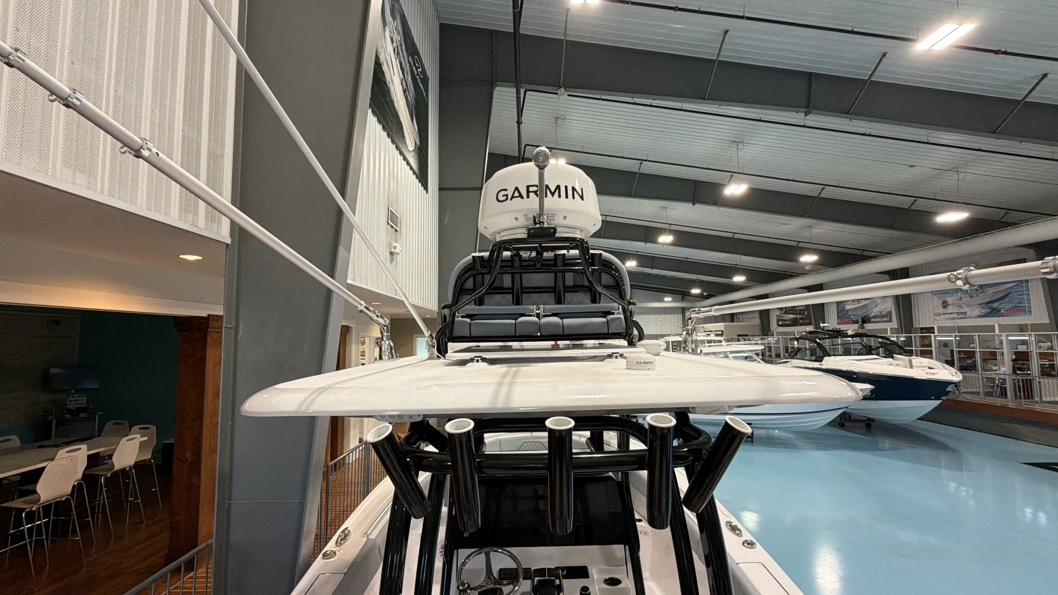 The Sportsman Open 282 is loaded with premium features designed to enhance every aspect of your boating experience. The half tower with a second station provides elevated visibility and control, perfect for spotting fish or enjoying panoramic views. Electric reel outlets cater to serious anglers, making deep-sea fishing more convenient and enjoyable. Stay ahead of the weather with the Garmin GXM™ 54 SiriusXM® Weather Antenna, offering real-time updates to keep your adventures safe and well-informed. The black powder coating adds a modern touch to the boat’s hardware, while the Icecap White upholstery ensures comfort and style throughout the deck. Every feature has been thoughtfully integrated to maximize convenience, safety, and enjoyment on the water.