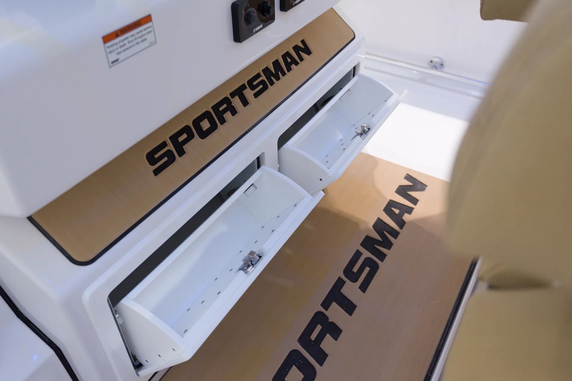 Powering the Sportsman 302 Open are two high-performance engines, delivering a combined 700 horsepower. This impressive setup ensures exhilarating acceleration, smooth cruising, and the ability to tackle a variety of water conditions with confidence. Whether you’re heading offshore for a day of fishing or cruising along the coast with friends, the dual-engine configuration offers reliability and the kind of responsive handling that seasoned boaters demand. The advanced steering system, featuring the Edson 13” SS Comfort Grip Steering Wheel with PowerKnob, provides precise control and effortless maneuverability, making every journey enjoyable and stress-free.