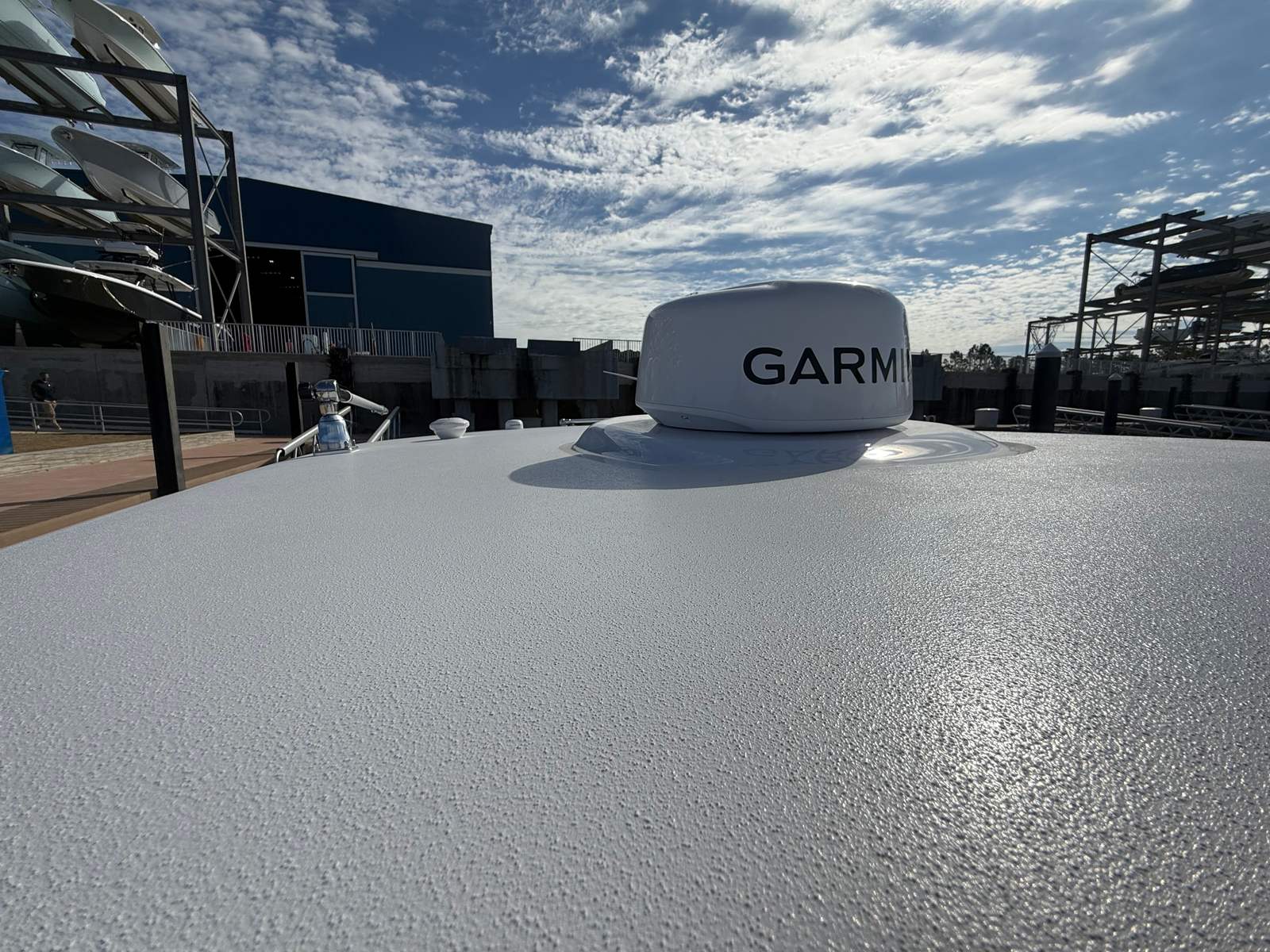 This Sportsman boat for sale is packed with premium features that enhance both functionality and enjoyment on the water. The Edson 13” stainless steel comfort grip steering wheel with PowerKnob provides precise control and effortless maneuvering, even in challenging conditions. For anglers, the inclusion of electric reel outlets makes deep-dropping and kite fishing more convenient than ever. The Garmin GMR Fantom 18x Radome offers advanced radar capabilities, ensuring safe navigation and situational awareness in all weather conditions. Additionally, the Garmin GXM 54 SiriusXM Weather Antenna keeps you informed with real-time weather updates, so you can plan your trips with confidence.The Open 302’s thoughtful design extends to its aesthetics, with the Ice Blue hull side and hardtop underside creating a cohesive and striking look. The Coastal Beige upholstery offers both comfort and durability, while the white powder coating adds a clean, modern finish to the boat’s hardware and rails.