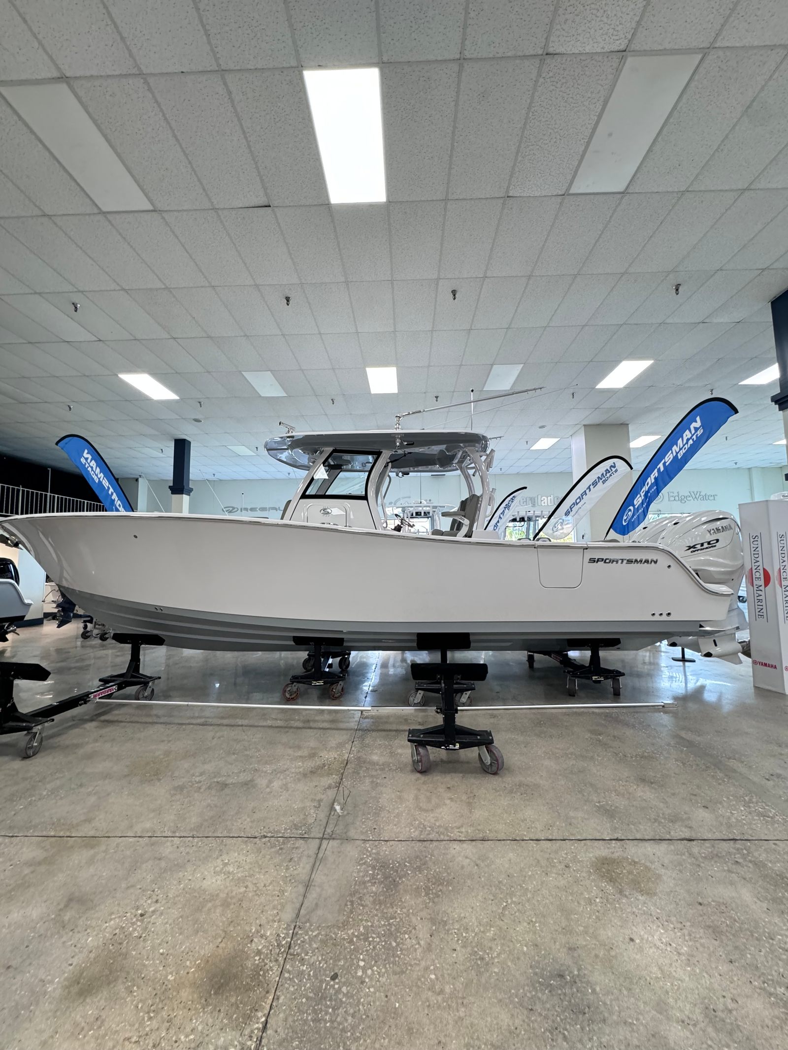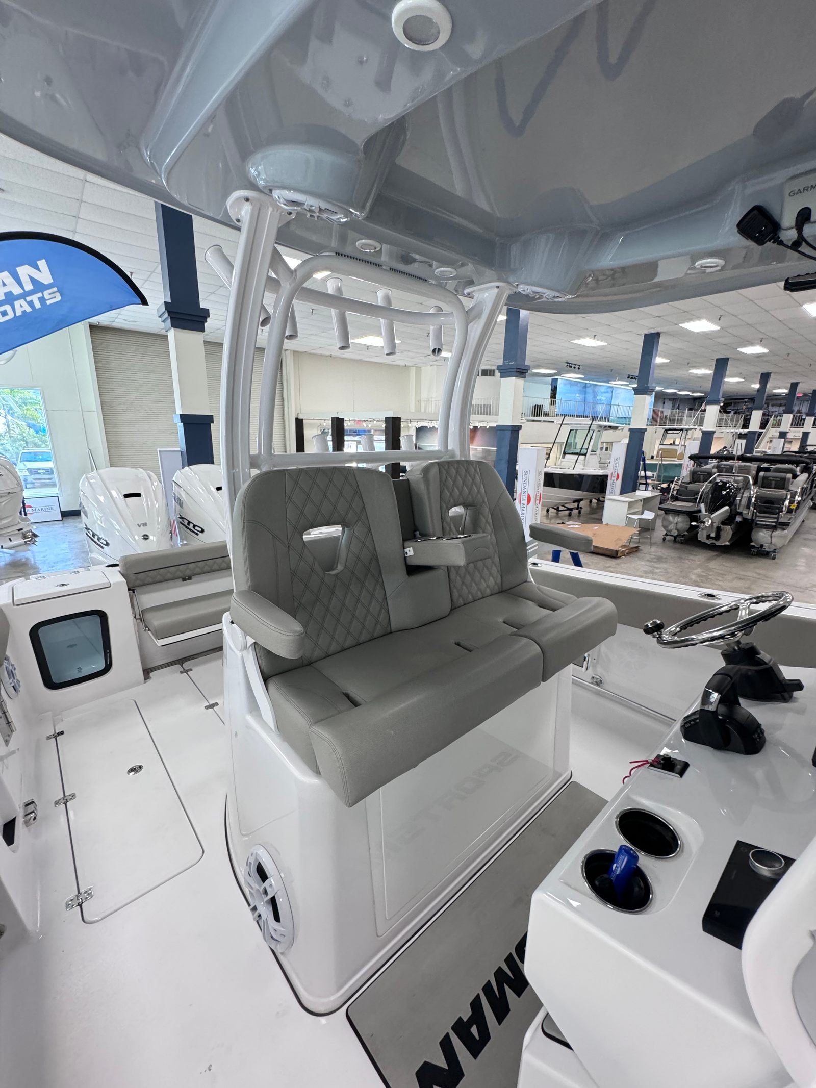 In summary, the 2025 Sportsman Open 322 is a remarkable center console boat for sale that combines power, innovation, and style in one impressive package. With its twin 800-horsepower engines, advanced Garmin navigation systems, and luxurious features like the fiberglass hard top with LED lighting and Sileather Ash Gray Upholstery, this Sportsman boat for sale is designed to deliver unforgettable experiences on the water.If you are ready to elevate your boating lifestyle and enjoy the perfect blend of performance, comfort, and versatility, the Sportsman Open 322 is the boat you have been waiting for. Contact your local dealer today to learn more about this exceptional vessel and take the first step toward your next great adventure.