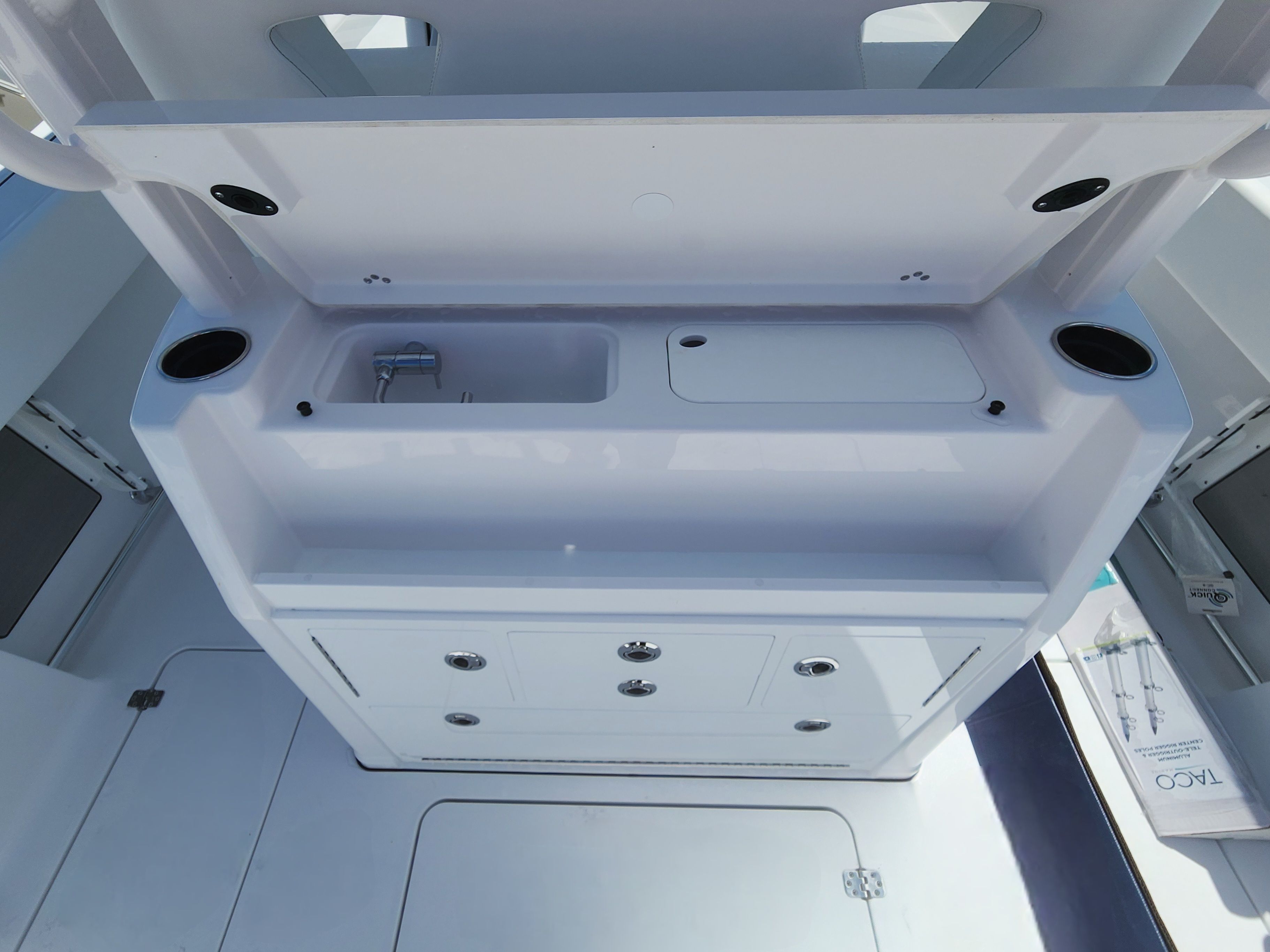 The Sportsman Open 322 is as practical as it is stylish. Its Center Console design maximizes deck space, providing ample room for movement, storage, and gear organization. The tackle center and sink make it a dream for anglers, while the hardtop with LED lighting ensures comfort and safety during evening excursions. Docking is straightforward thanks to the boat’s responsive handling and thoughtful layout, and the efficient twin Yamaha engines help keep fuel costs manageable. Whether you’re storing fishing equipment, water toys, or picnic supplies, the Sportsman Open 322 offers versatile solutions to meet your needs.