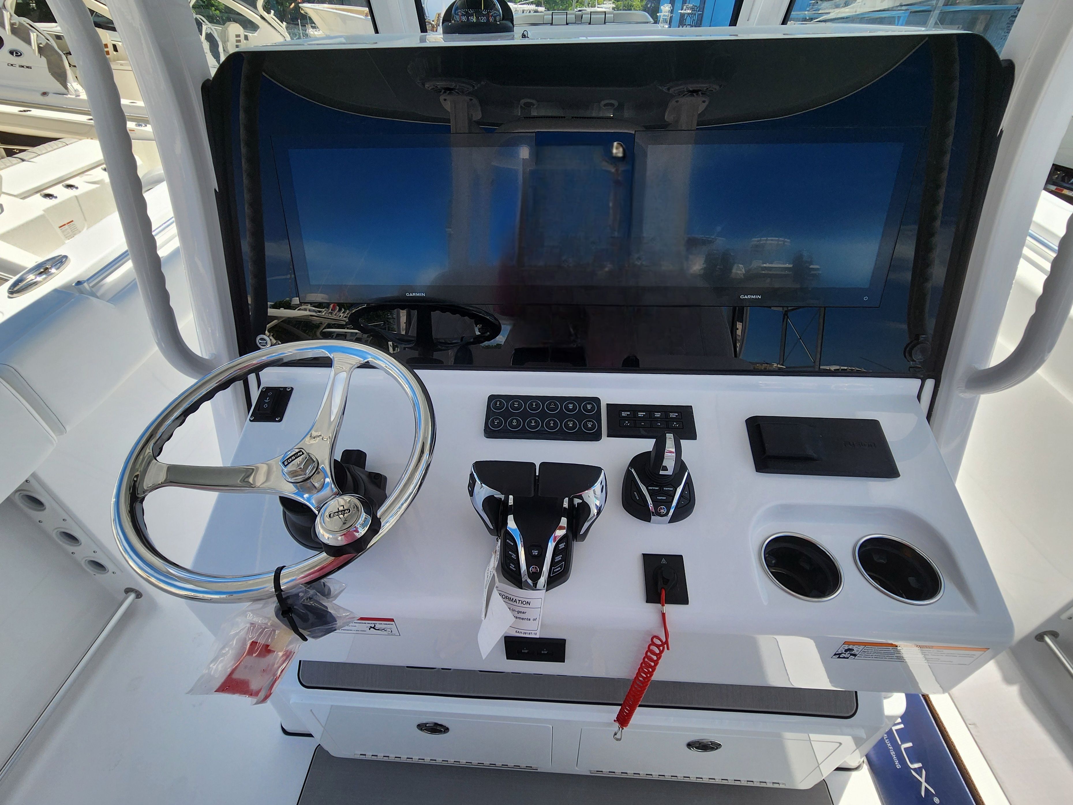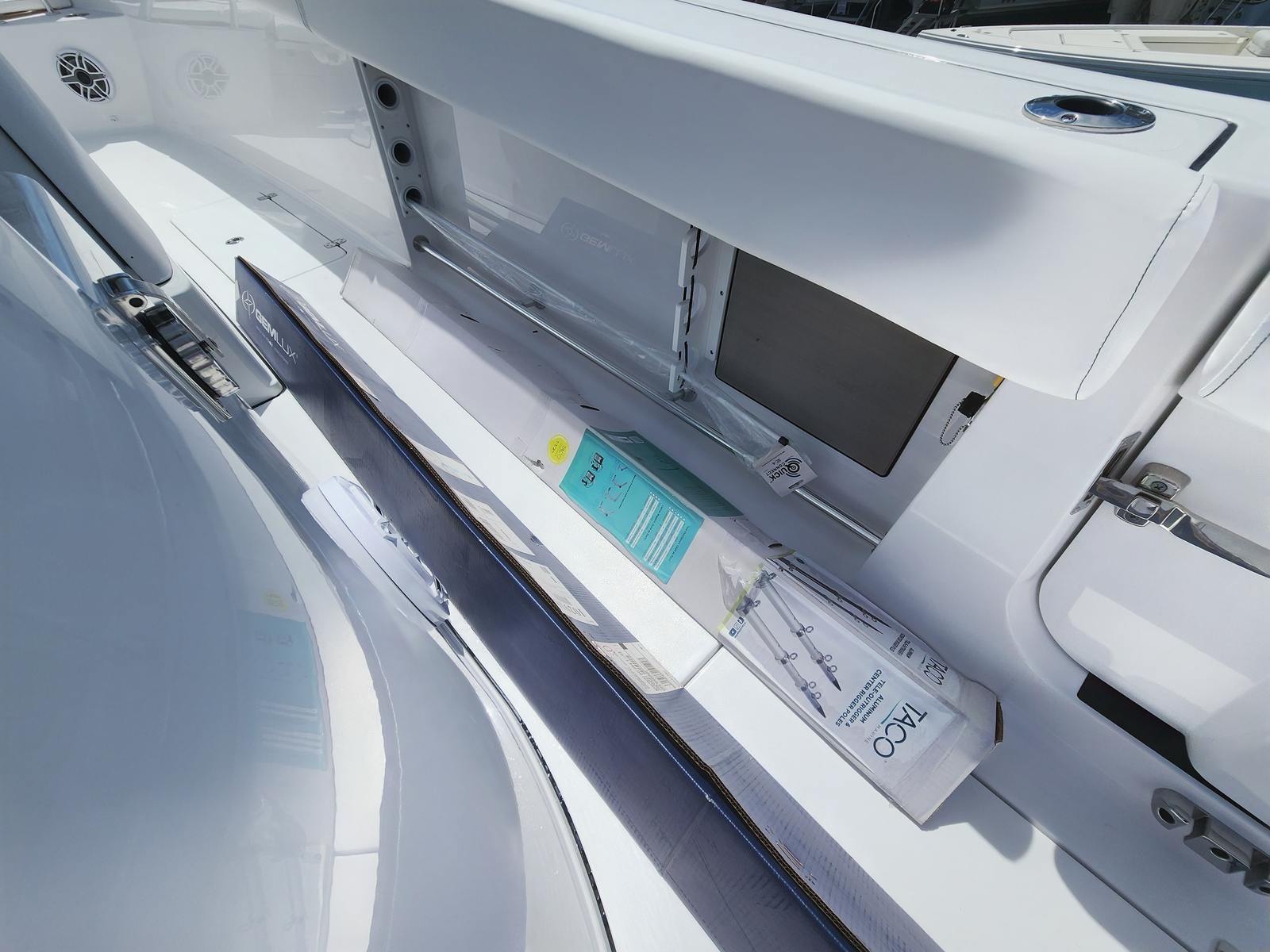 Step aboard the Sportsman Open 322 and discover a world of premium features designed to enhance your boating experience. The hardtop is equipped with LED lighting, providing brilliant illumination for evening cruises and nighttime adventures. The leaning post features a tackle center and sink, making it easy to prepare bait and manage your gear during fishing trips. The premium 60/40 bench with bolsters offers exceptional comfort and support, whether you’re relaxing with friends or keeping an eye on the action. Two Garmin 16" GPS screens with built-in Wi-Fi deliver state-of-the-art navigation and connectivity, ensuring you stay informed and entertained wherever you go. Every detail, from the powder-coated white accents to the plush Serenity Sileather upholstery, reflects Sportsman’s commitment to quality and innovation.