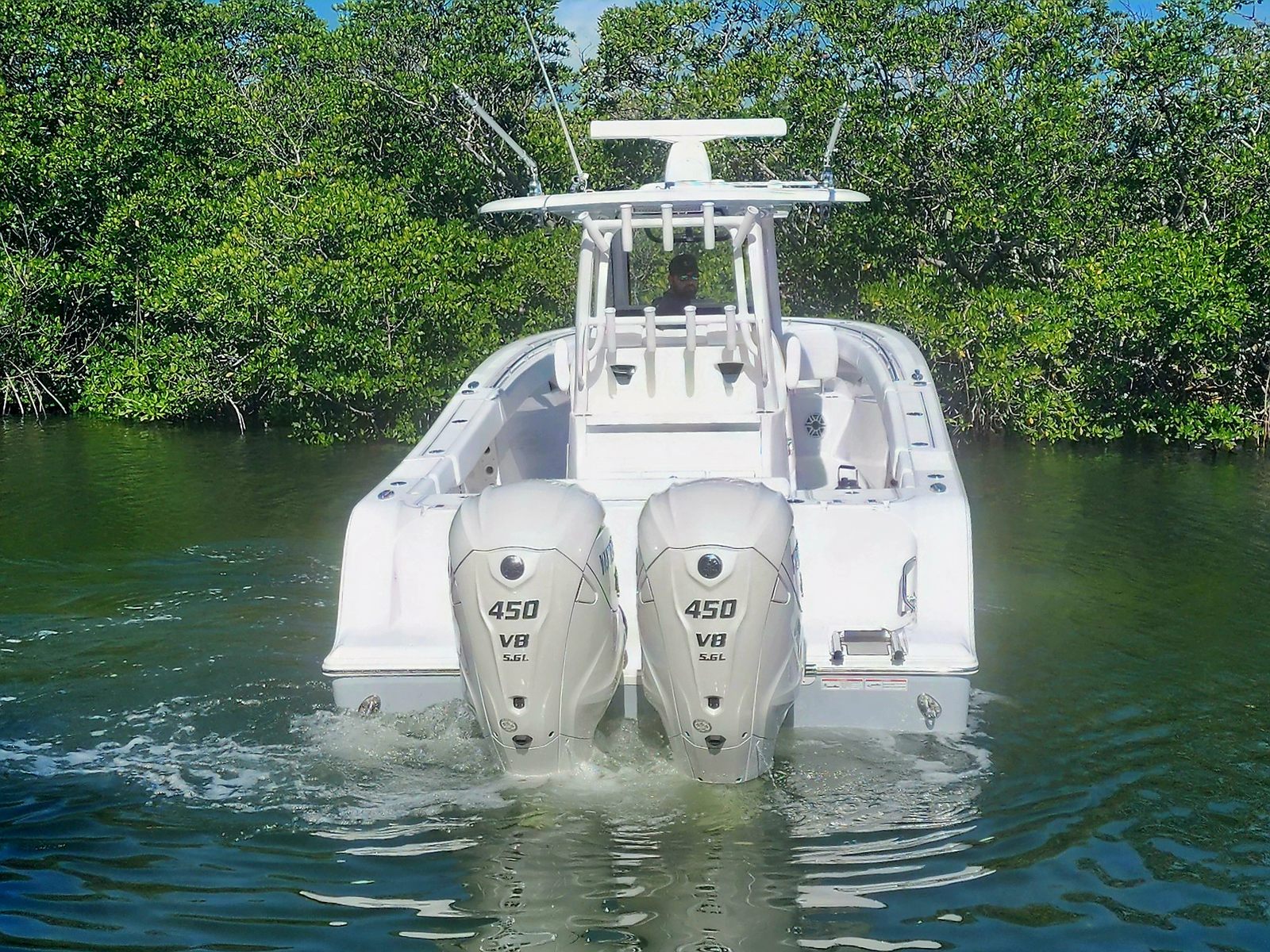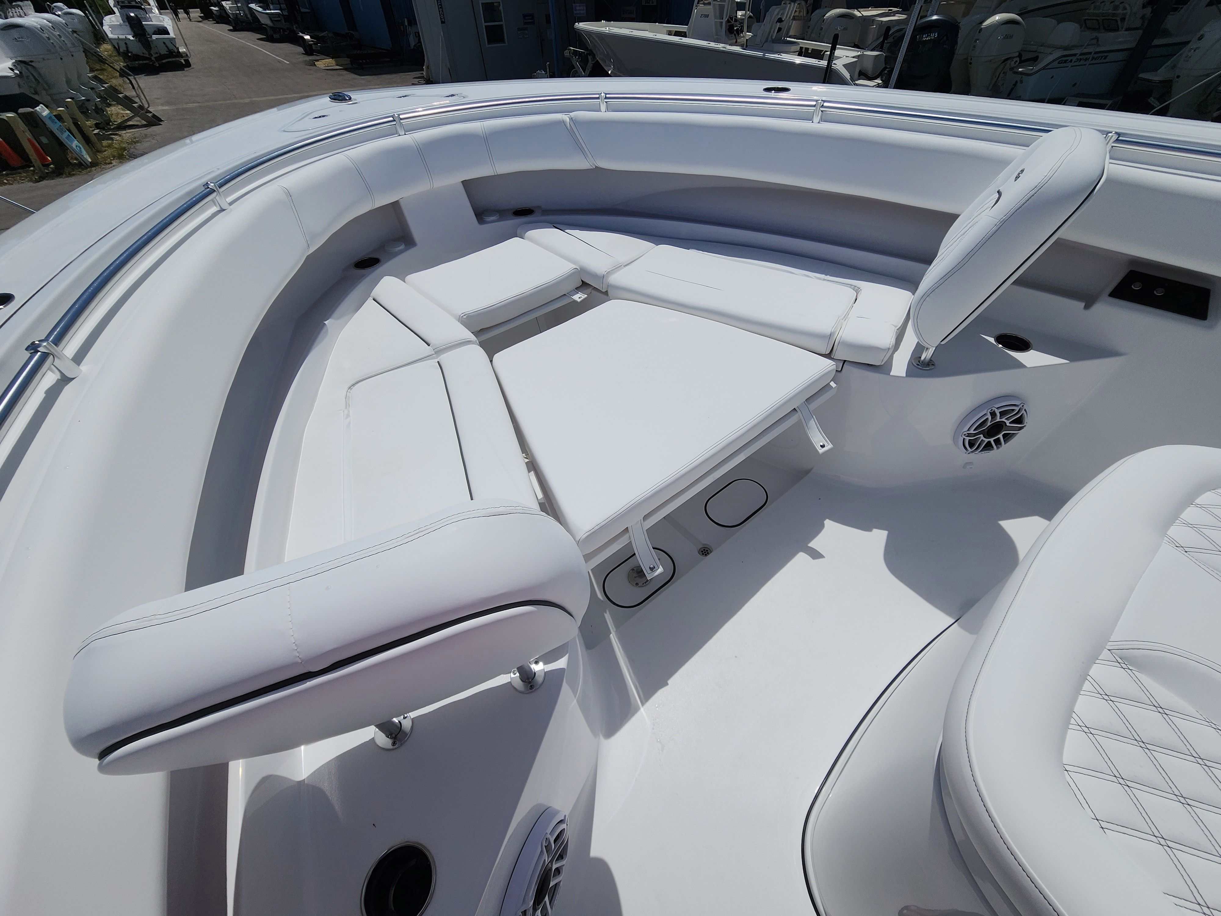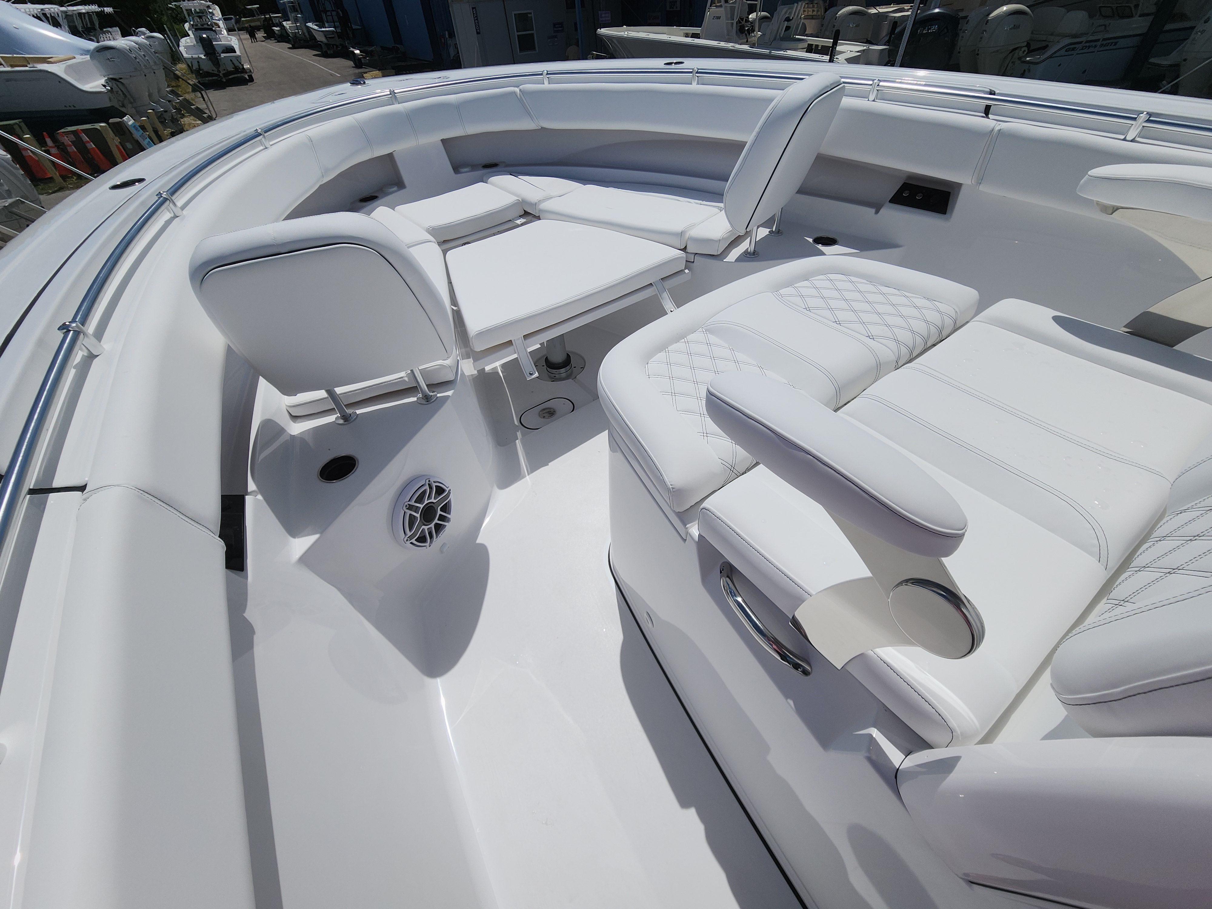 Power and precision are at the heart of the Sportsman Open 322’s design. Equipped with twin Yamaha XF450 engines—available exclusively in white—this Center Console boat boasts a combined 900 horsepower, offering thrilling acceleration and smooth handling in a variety of conditions. The advanced engineering of these Yamaha engines ensures reliable performance, fuel efficiency, and quiet operation, allowing you to enjoy every journey with confidence. Whether you’re navigating choppy waters or gliding across calm bays, the Sportsman Open 322 responds effortlessly to your commands, making it a joy to captain.