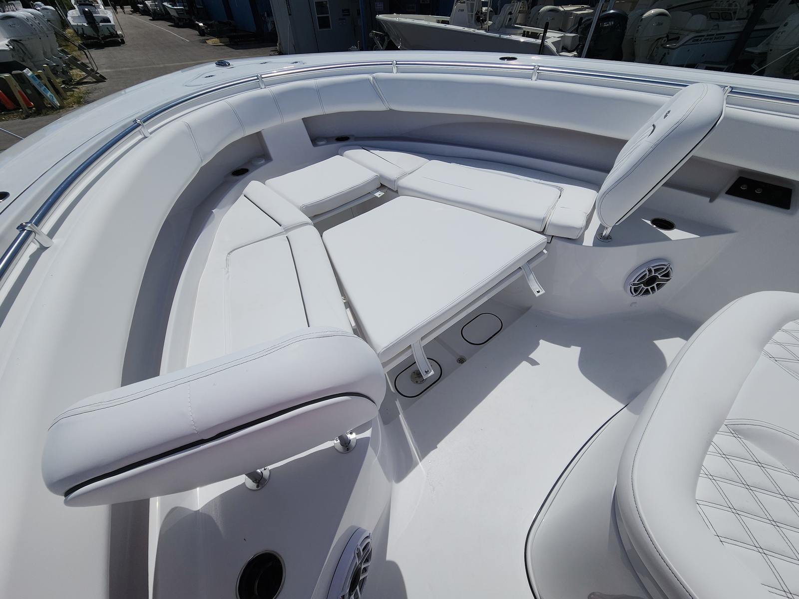 The Sportsman Open 322 is a 2026 model, measuring an impressive 32.17 feet in length. This new Center Console boat showcases the perfect blend of style and substance, making it an ideal vessel for both seasoned captains and newcomers alike. With its sleek Storm Cloud Gray hull color and matching hardtop underside, this boat commands attention at every marina and on every waterway. The white hull bottom and powder coating add a touch of elegance, while the Serenity Sileather Icecap White upholstery ensures a sophisticated and inviting atmosphere for all aboard. Whether you’re cruising along the coast or anchored at your favorite spot, the Sportsman Open 322 delivers a striking visual presence and a welcoming environment.