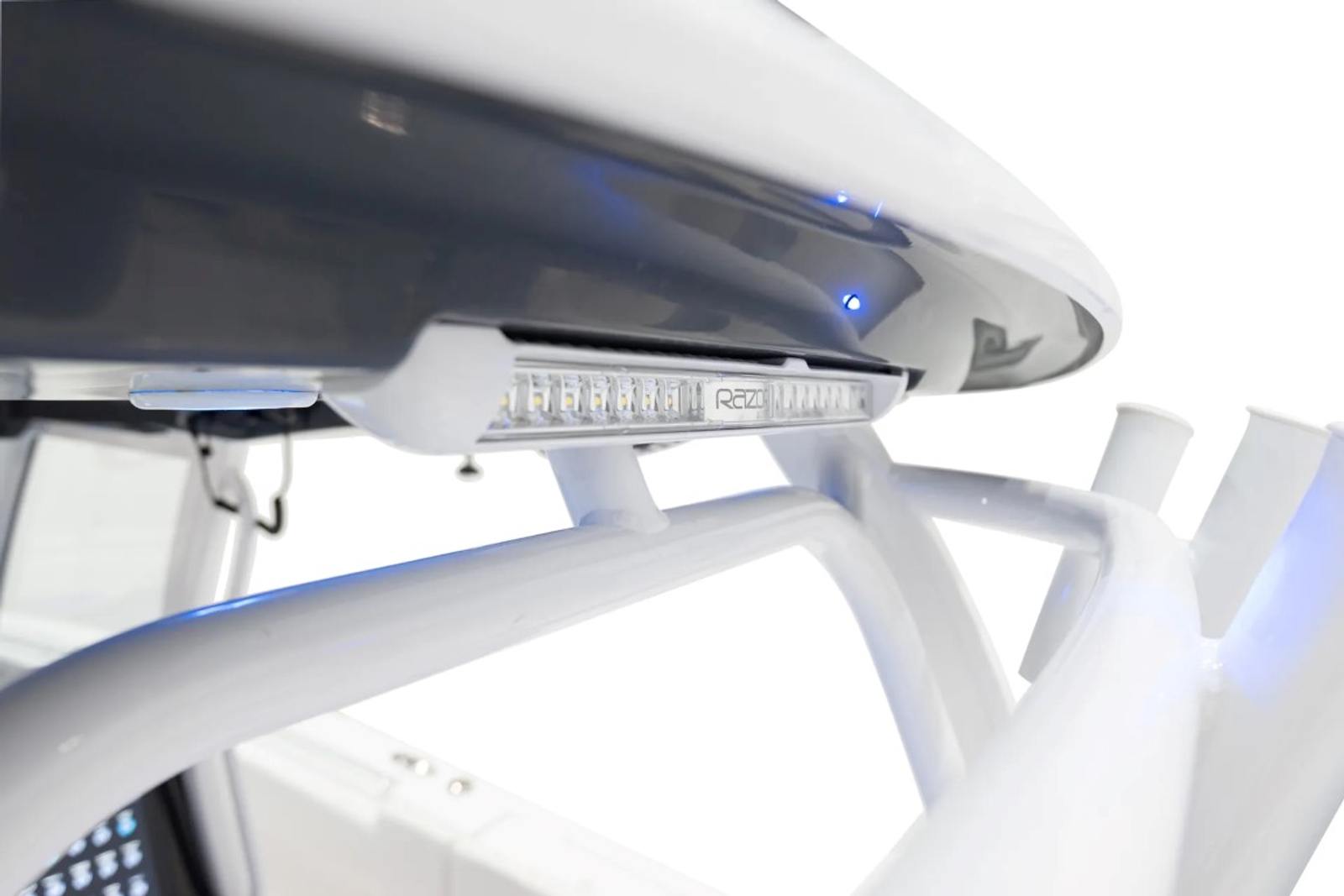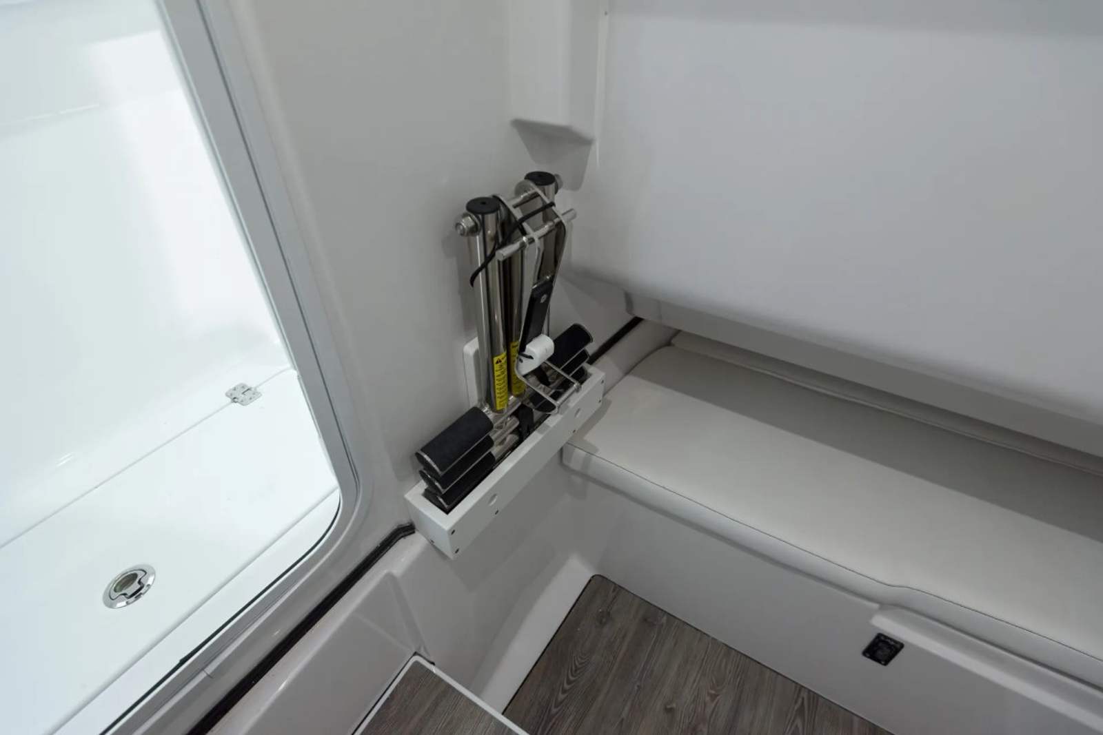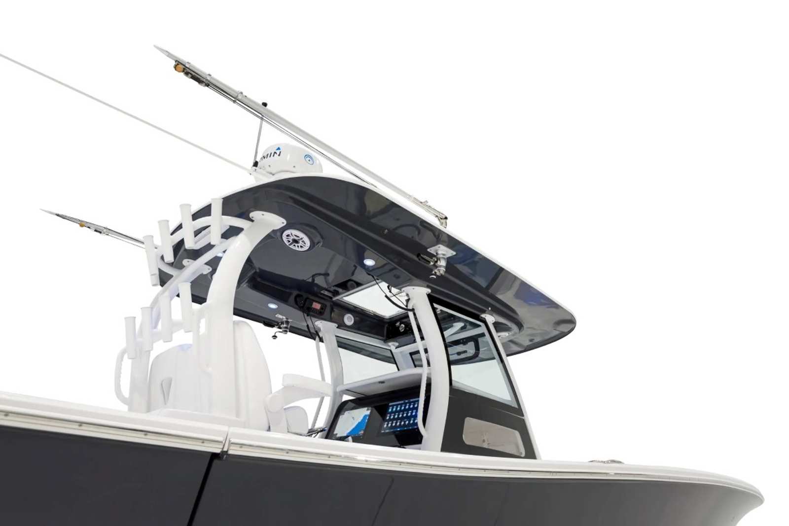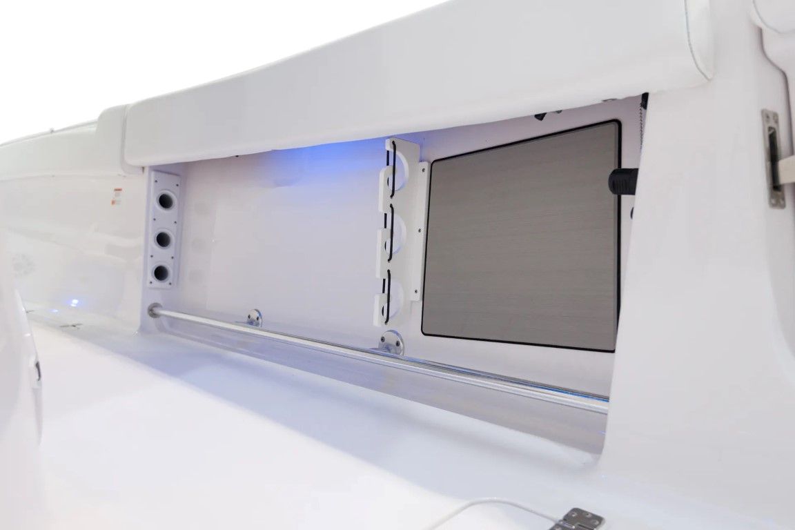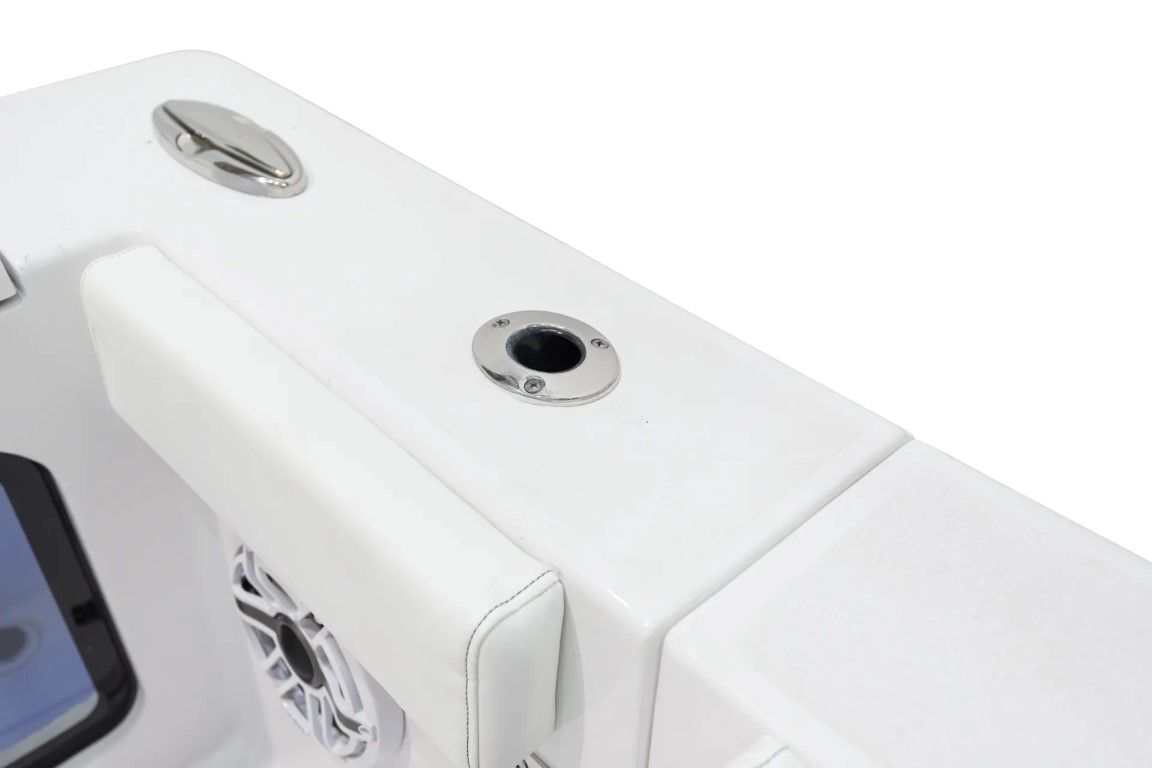 Step aboard the Sportsman Open 322 and discover a world of premium features designed for both comfort and convenience. The hull and bottom are finished in a striking white, complemented by a fiberglass console with an FG liner and a cooler seat for added functionality. The fiberglass hard top with integrated LED lighting not only provides shade and protection but also enhances the boat’s modern aesthetic. The hardtop underside is color-matched in white, creating a seamless and sophisticated look.Attention to detail is evident throughout, with black powder coating on metalwork for a bold, stylish contrast. The Serenity Sileather Smoky Gray upholstery offers a plush, durable seating experience that is both comfortable and easy to maintain. The fiberglass leaning post features a rear-facing seat and a convenient sink, perfect for preparing snacks or cleaning up after a day on the water. The premium 60/40 bench with bolsters ensures that everyone on board enjoys ergonomic support and relaxation, whether you are cruising or anchored at your favorite spot.For navigation and entertainment, the Sportsman Open 322 is equipped with two Garmin 16-inch GPS screens featuring built-in Wi-Fi. These state-of-the-art displays provide intuitive control, real-time navigation, and seamless connectivity, keeping you informed and in command wherever your adventures take you.