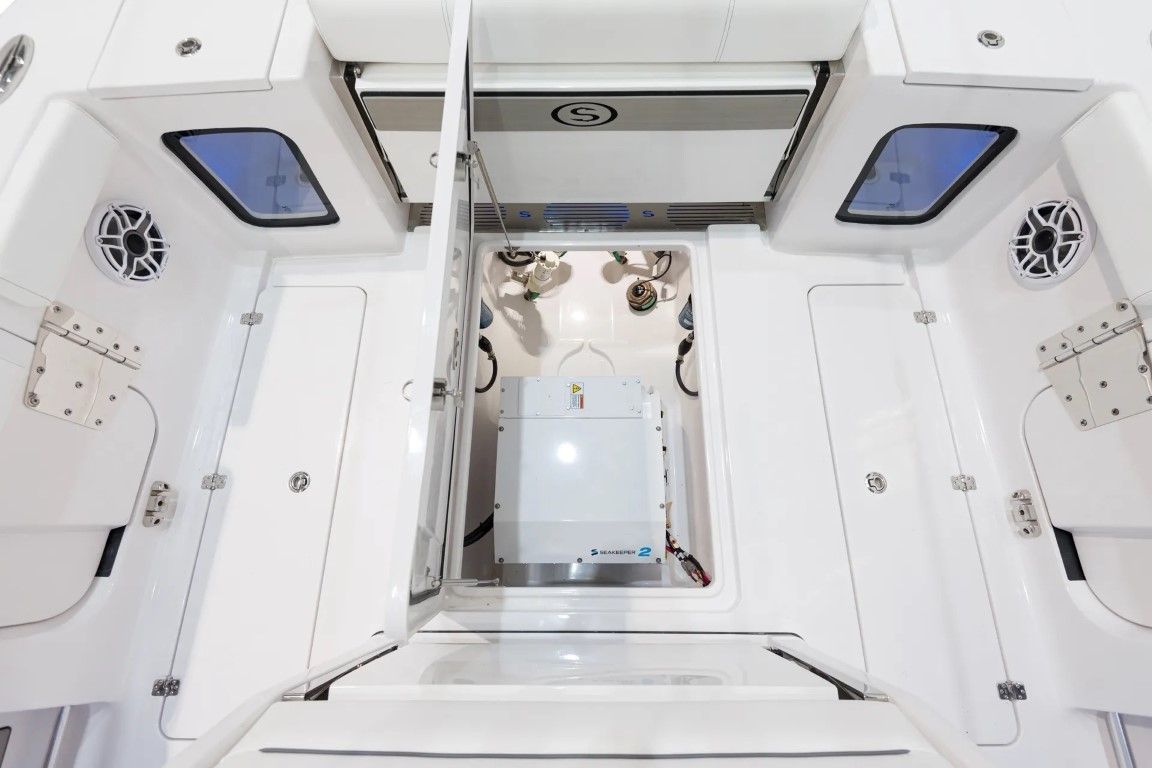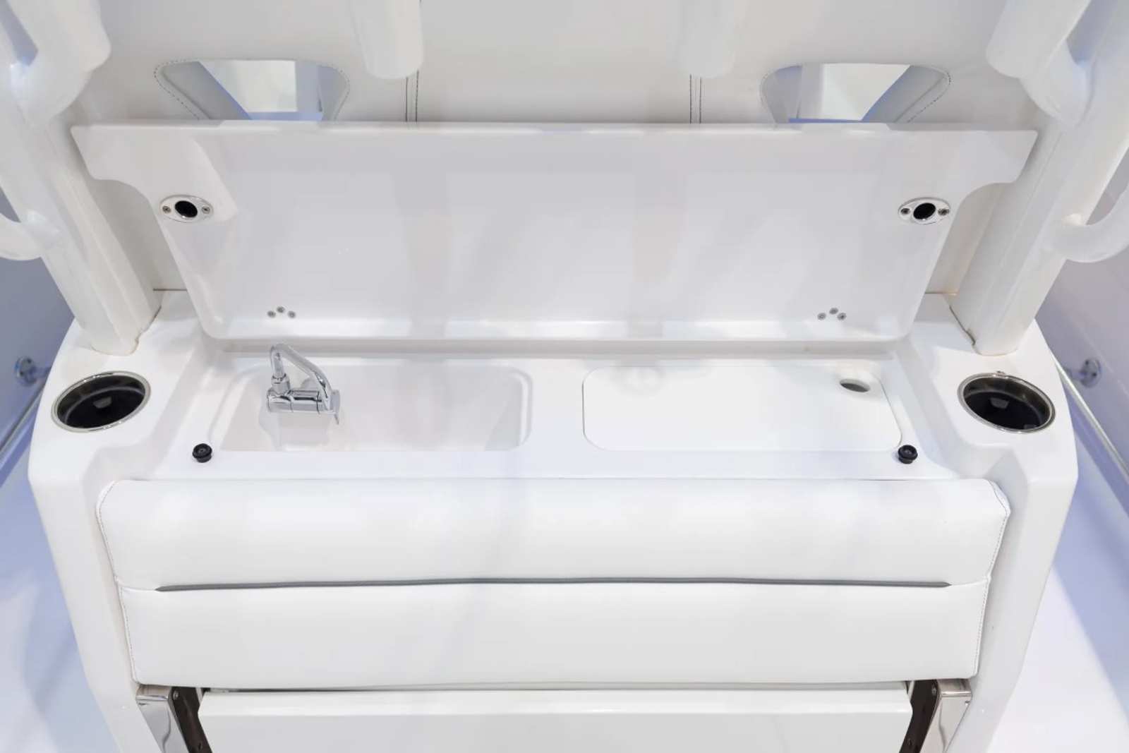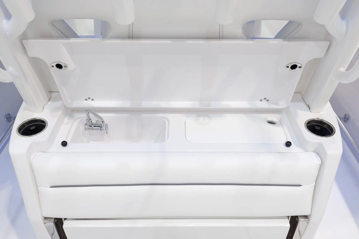 Beyond its impressive looks and performance, the Sportsman Open 322 is designed with practicality in mind. The center console layout maximizes deck space, providing plenty of room for gear, coolers, and water toys. The fiberglass console and hard top offer protection from the elements, while the integrated cooler seat and sink add convenience for long days on the water.Docking and maneuvering are made easier thanks to the responsive twin Mercury engines, and the durable construction ensures peace of mind in a variety of conditions. The boat’s efficient design helps optimize fuel usage, so you can spend more time enjoying the water and less time at the pump. Whether you are heading out for a quick afternoon cruise or planning a weekend getaway, the Open 322 adapts to your needs with ease.