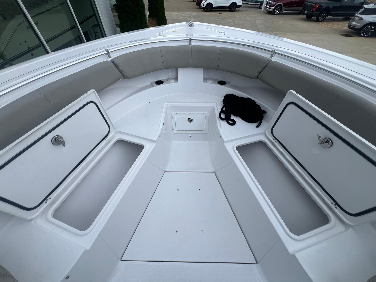 Step aboard the Sportsman Open 352 and discover a world of premium features designed to enhance your boating experience. The fiberglass console with FG liner and a 65-quart cooler seat provides both comfort and convenience, keeping refreshments close at hand during long days on the water. The fiberglass hard top is equipped with integrated LED lighting, illuminating your deck for evening outings and adding a modern touch to the boat’s profile. The hardtop underside, finished in Storm Cloud Gray, complements the hull’s color scheme for a cohesive and stylish look.Enjoy the luxury of Sileather Ash Gray upholstery, offering a soft, durable, and easy-to-clean surface for all your seating areas. The fiberglass leaning post features a tackle center and sink, making it easy to organize gear and clean up after a successful fishing trip. Stay cool and comfortable even on the hottest days with the 12V 3500 BTU air conditioning system, ensuring a pleasant environment for everyone onboard. Navigation is a breeze thanks to the dual Garmin GPSMAP® 9222 chartplotters, providing advanced mapping and real-time data to keep you on course and informed.