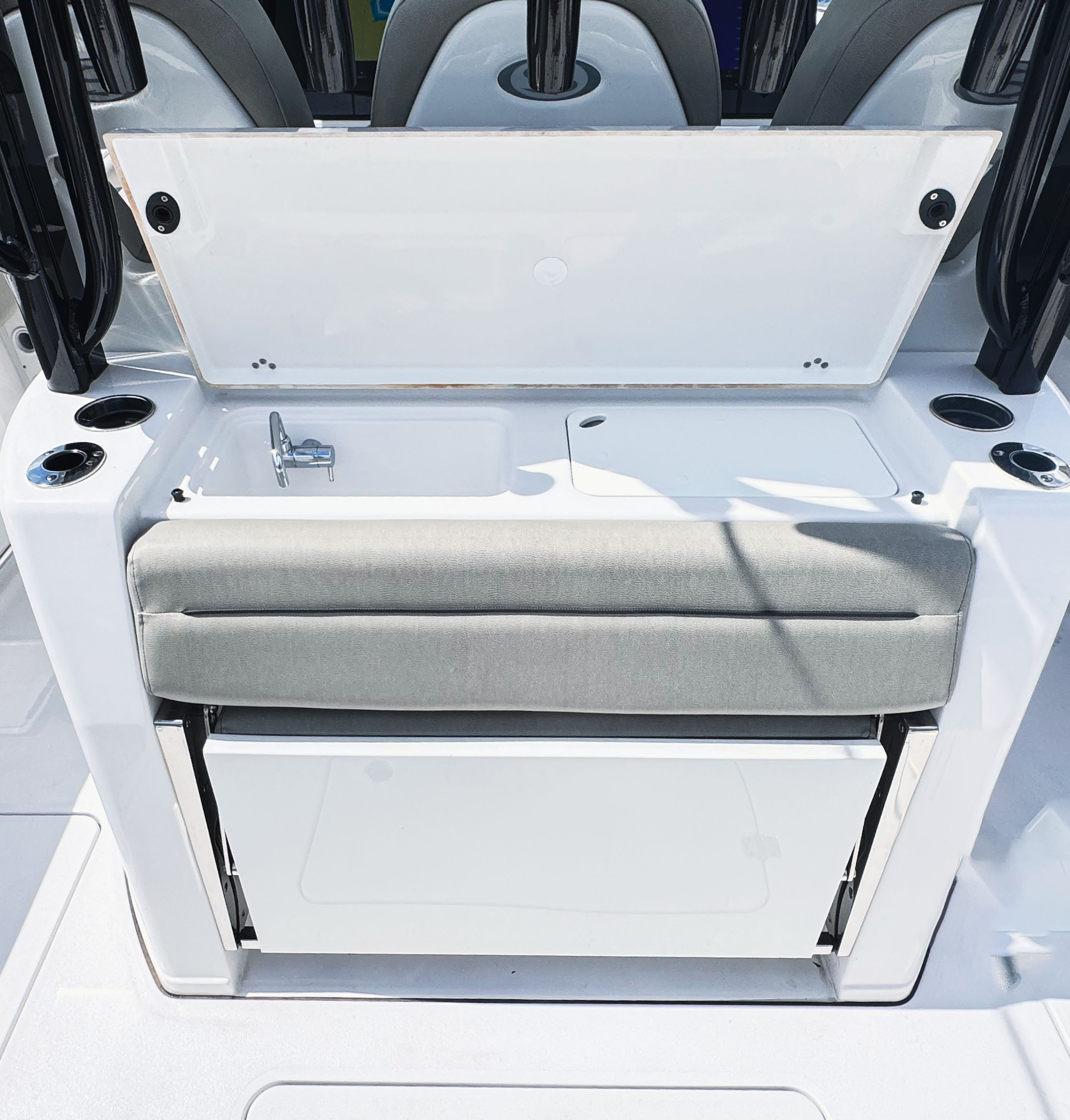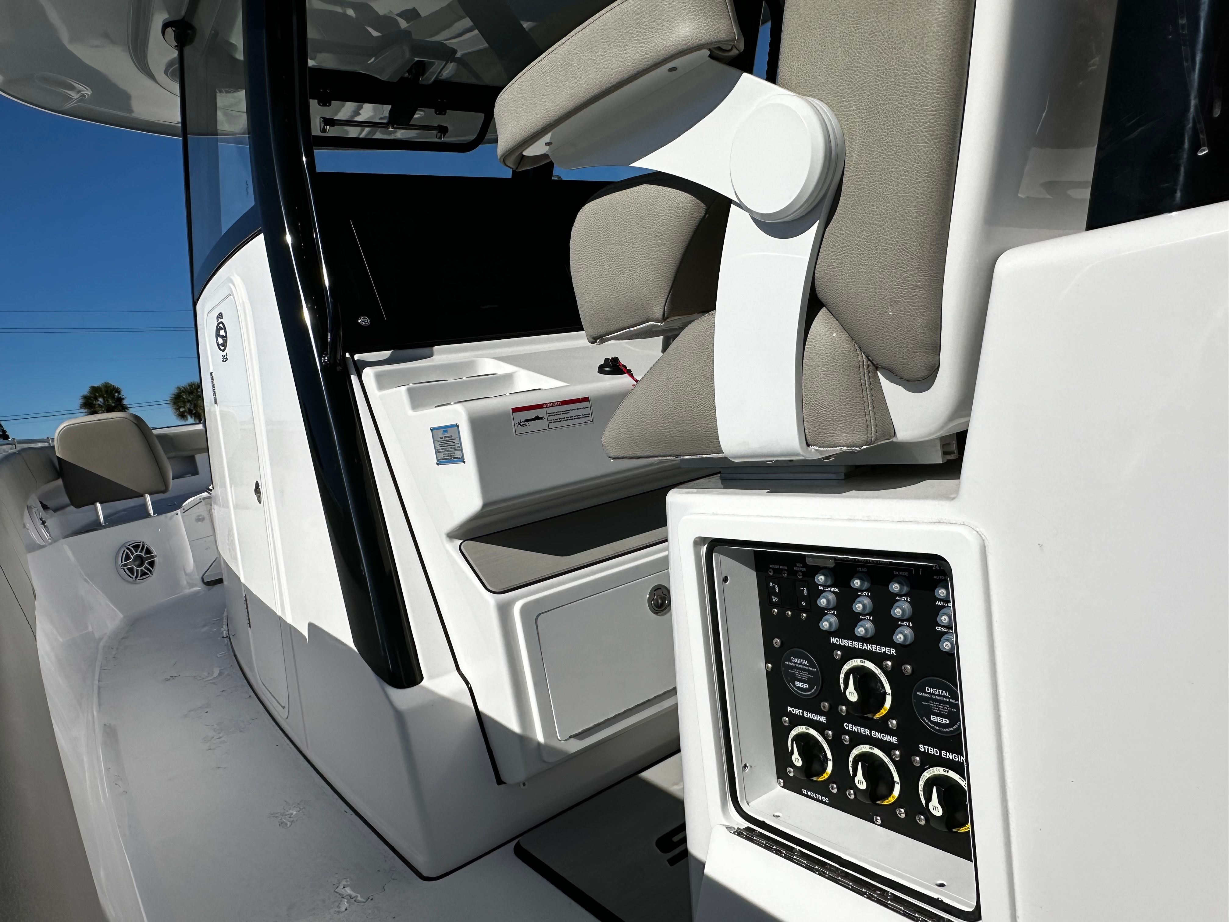 The Sportsman Open 352 is packed with advanced features designed to enhance your boating experience. The Storm Cloud Gray hull side and bottom not only provide a striking visual appeal but also contribute to the boat’s durability and resistance to the elements. Black powder coating adds a layer of protection and style to key components, while the Ash Gray upholstery ensures comfort and elegance throughout the vessel.Navigation and safety are elevated with the dual Garmin GPSMAP® 9222 Chartplotters, offering intuitive controls and real-time data for precise route planning. The Garmin GMR™ 434 xHD3 Open Array radar system provides enhanced situational awareness, making offshore excursions safer and more enjoyable. For anglers, the Taco Outriggers - GS390 are a game-changer, enabling efficient trolling and expanding your fishing capabilities.Comfort is paramount on the Open 352, thanks to the Seakeeper 3 Gyroscopic Stabilizer, which minimizes roll and keeps the boat steady even in choppy waters. Air conditioning ensures a pleasant environment on hot days, allowing you and your guests to relax in cool comfort no matter the weather.