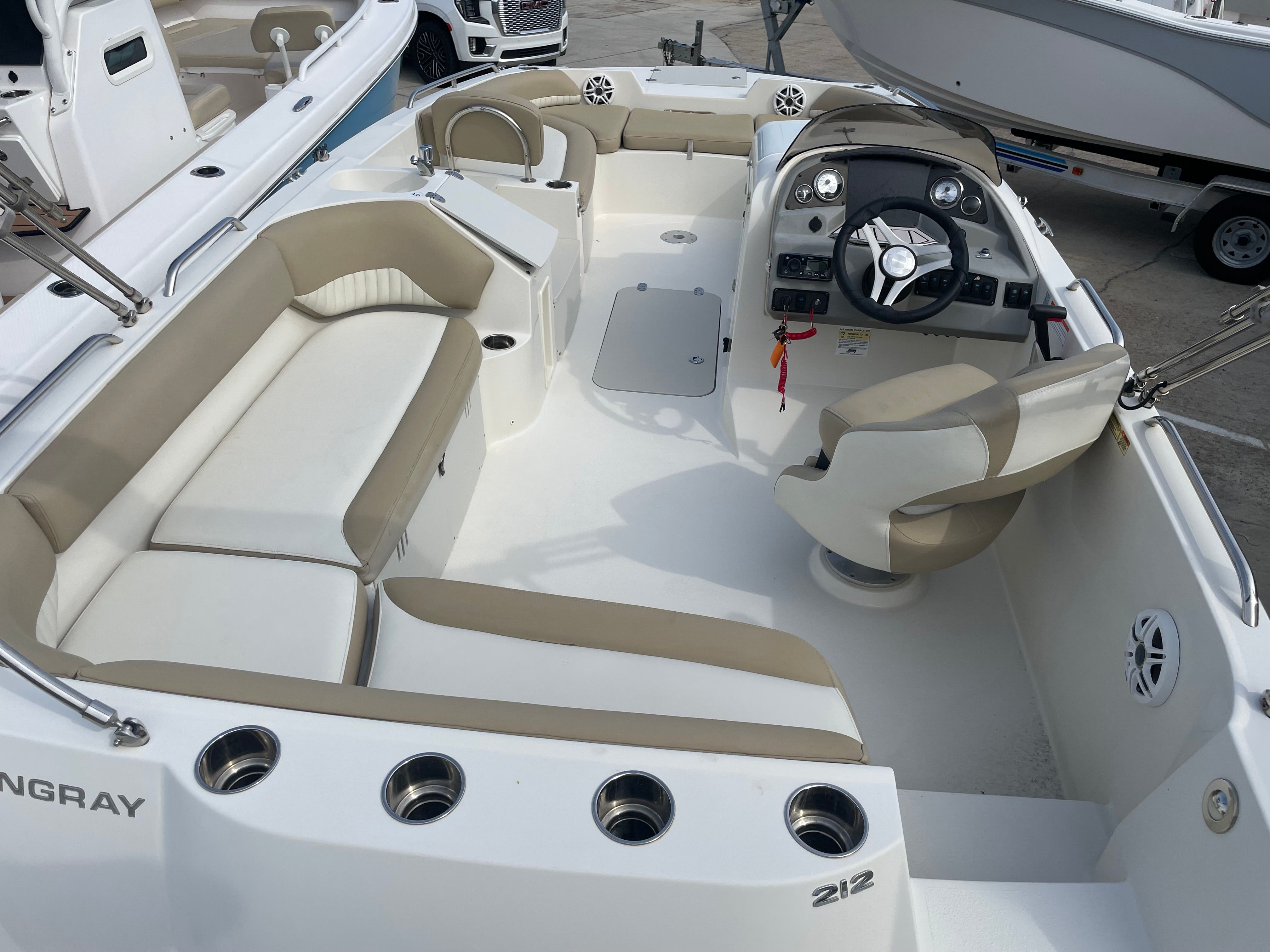 The Stingray 212 SC Deckboat is packed with features that elevate your boating experience. Its spacious deck layout provides plenty of room for relaxing, socializing, and soaking up the sun. The open design makes it easy to move around, whether you’re hosting a group of friends or enjoying a quiet day with family. The boat’s thoughtful configuration ensures everyone has a comfortable spot, with seating designed for both lounging and conversation.Storage is a breeze on the 212 SC, with dedicated compartments for gear, water toys, and personal items. The boat’s length of nearly 22 feet means you’ll have ample space for coolers, towels, and everything you need for a day on the water. The deckboat’s layout is ideal for entertaining, with areas for dining, sunbathing, and enjoying the scenery.