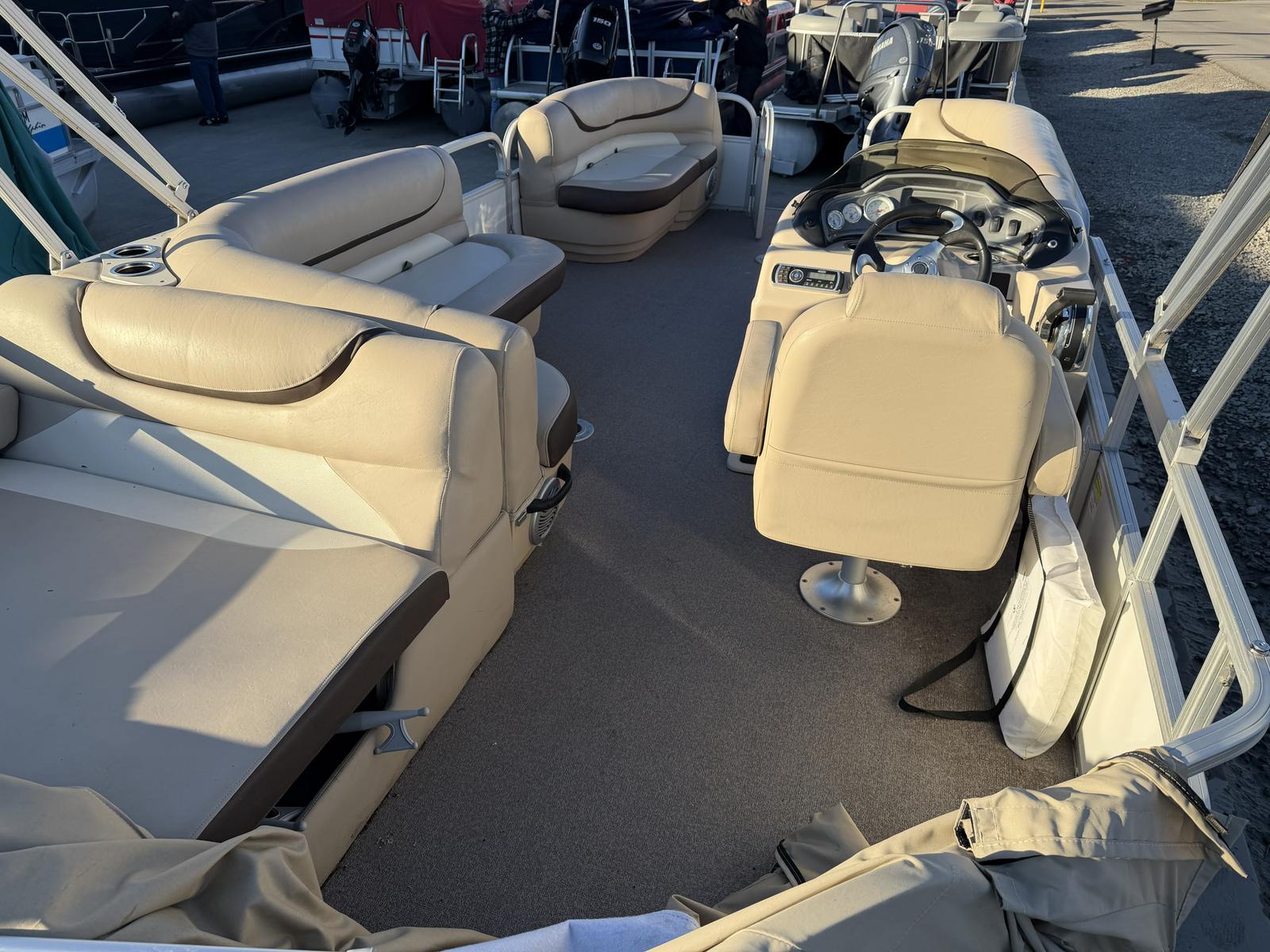 This Sun Tracker boat for sale is not just about leisure—it’s also incredibly practical. The generous storage options allow you to keep your gear organized and out of the way, while the easy-to-maneuver design makes docking and launching a breeze. The efficient 115 HP engine helps you make the most of your time on the water without worrying about excessive fuel costs. Whether you’re heading out for a quick afternoon cruise or planning a full day of exploration, this pontoon boat adapts to your needs with ease.The sturdy construction and reliable performance mean you can focus on enjoying your time on the water, knowing that your boat is up to the task. The Party Barge 22 DLX is also easy to maintain, making it a smart choice for both new and experienced boaters.