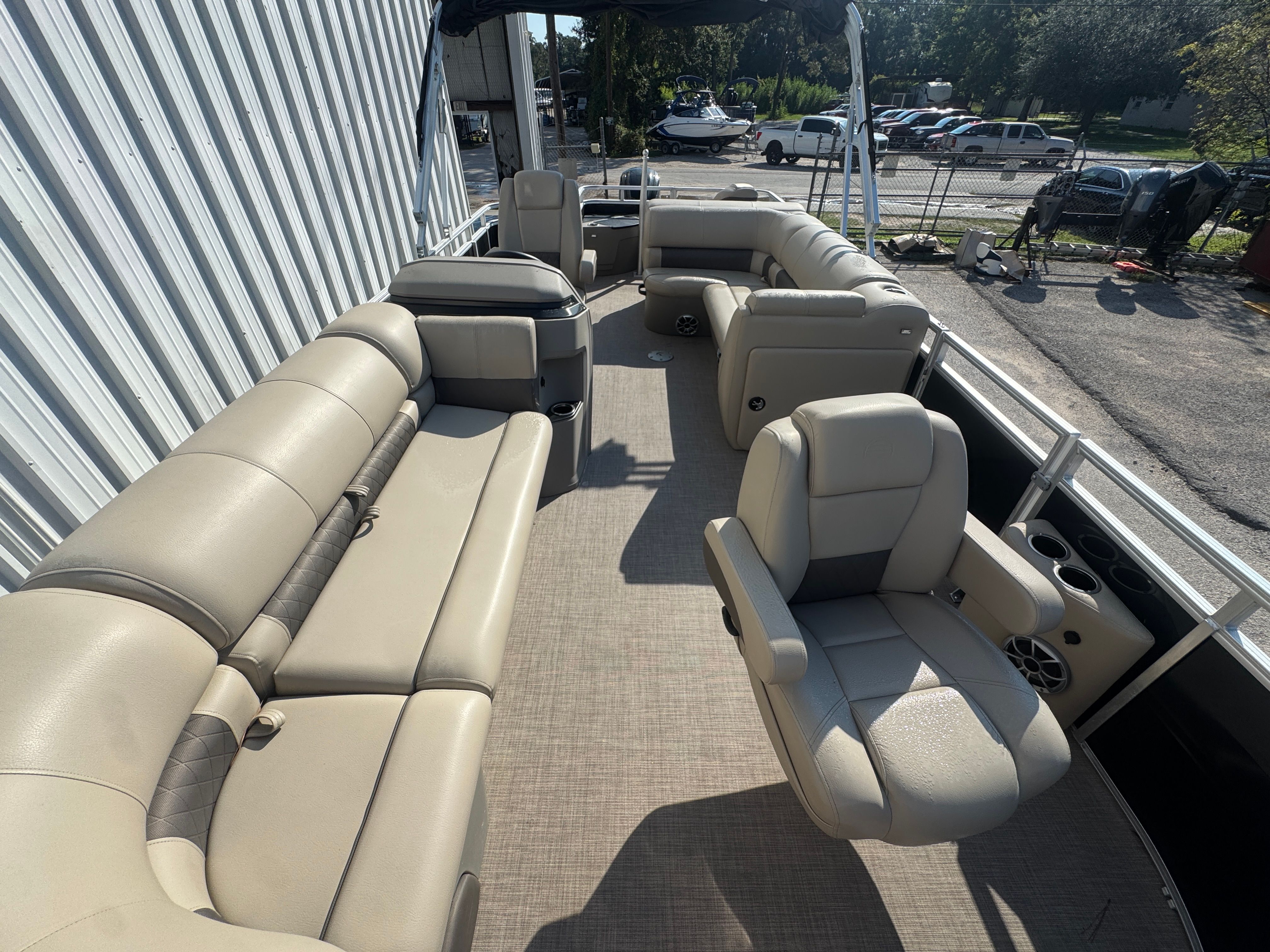 This pontoon boat for sale is designed with practicality in mind. Its manageable size makes docking and maneuvering a breeze, even for those new to boating. The efficient 90 HP engine helps keep operating costs down, while the sturdy construction ensures years of dependable use. Storage compartments throughout the boat provide convenient places to stow gear, life jackets, and personal items, keeping the deck clutter-free and organized. The easy-to-clean surfaces and low-maintenance materials mean you can spend more time enjoying your boat and less time on upkeep. Whether you’re planning a quick afternoon cruise or a full day on the water, the Sport Fish 20 is up to the task.