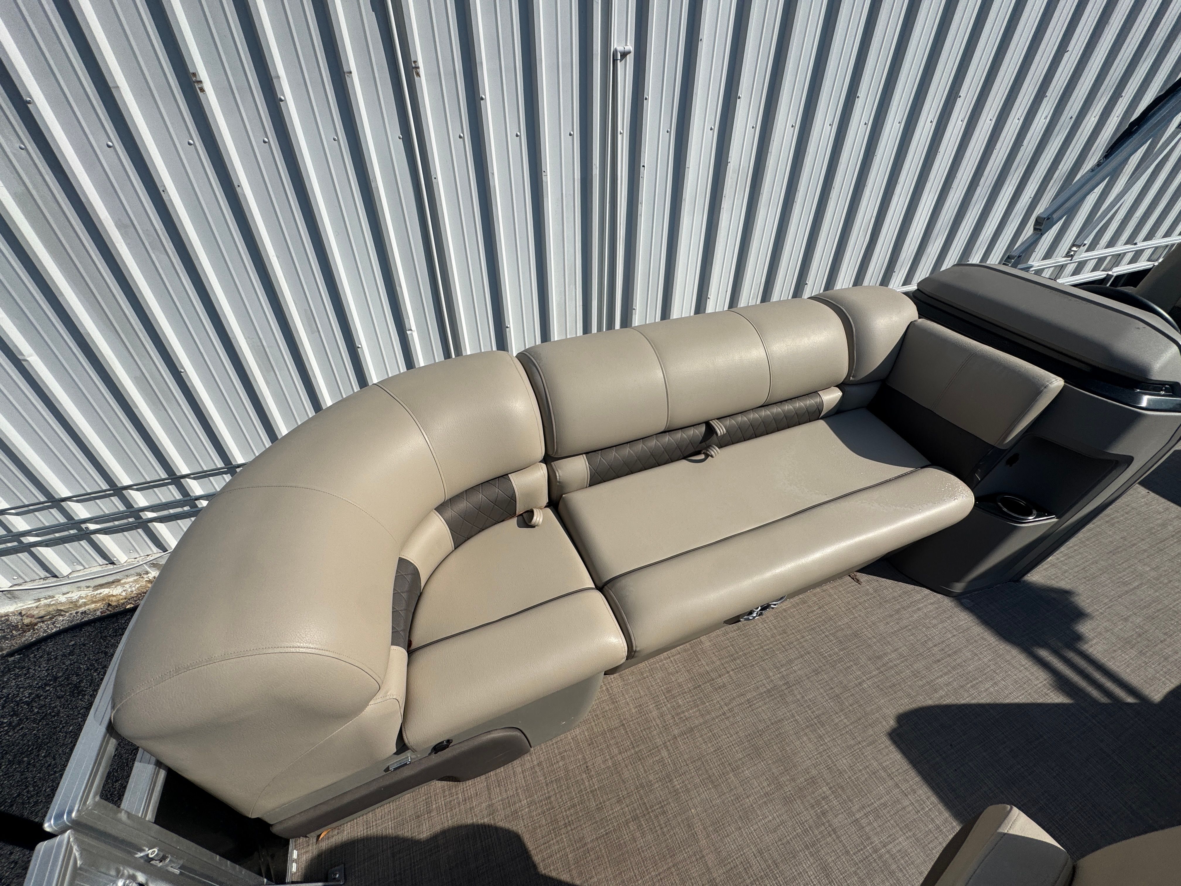 The Sun Tracker Sport Fish 20 is thoughtfully equipped to enhance your boating experience. Its spacious deck layout offers plenty of comfortable seating, allowing everyone on board to relax and socialize. The pontoon’s design provides easy access to all areas, making it simple to move around, cast a line, or set up for a picnic. The 22-foot length ensures there’s room for coolers, gear, and all the essentials for a day on the water. With a focus on both leisure and functionality, this pontoon boat is ready for any adventure you have in mind.