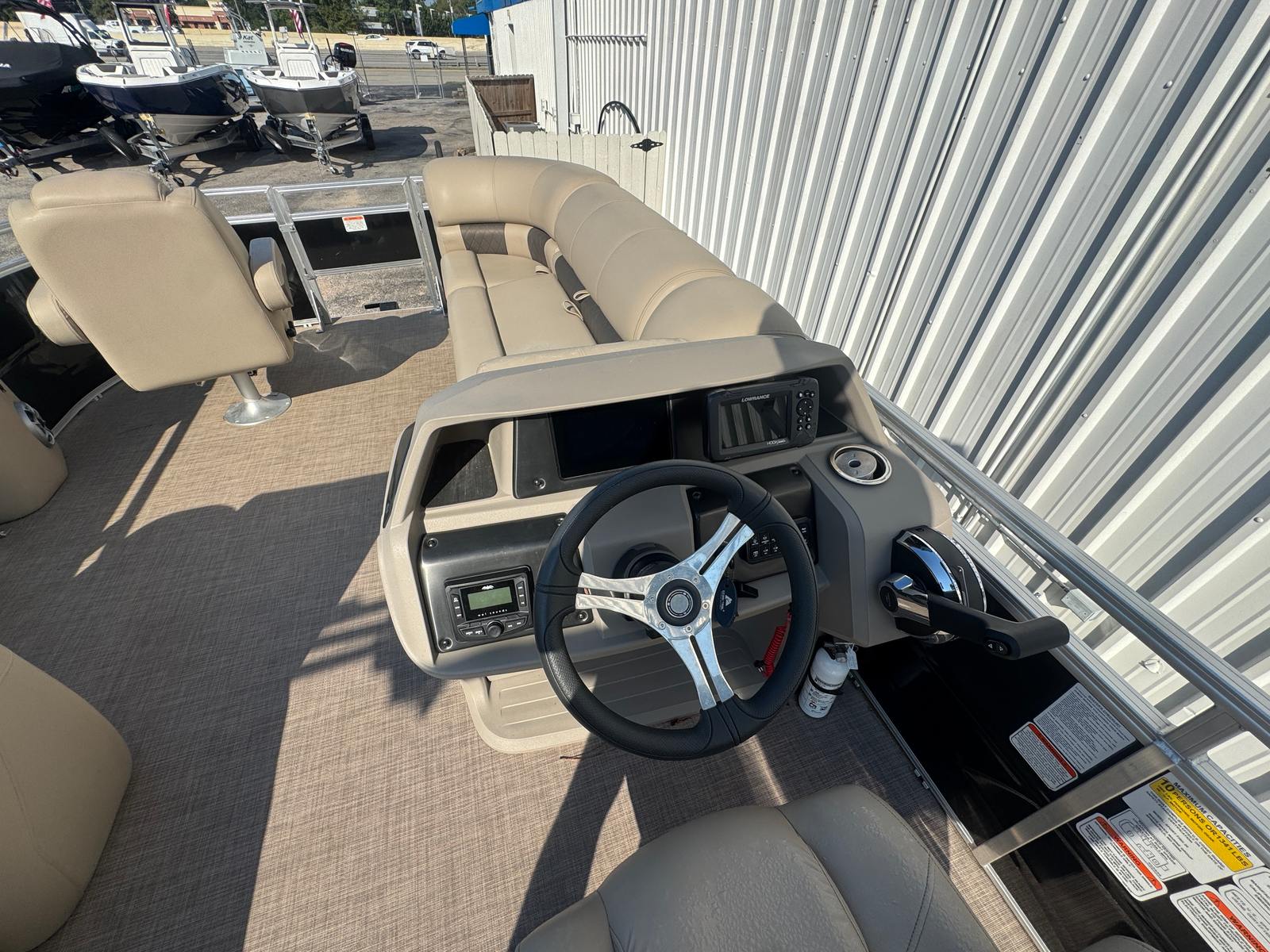 Powered by a single 90-horsepower engine, the 2024 Sun Tracker Sport Fish 20 delivers a satisfying blend of power and efficiency. With only 69 hours on the engine, you can be confident in its reliability and longevity. The 90 HP engine provides plenty of thrust for cruising, towing water toys, or reaching your favorite fishing spot with ease. This pontoon’s responsive handling and steady acceleration make it a joy to operate, whether you’re navigating calm lakes or exploring winding rivers. The efficient engine design also helps maximize fuel economy, so you can spend more time enjoying the water and less time refueling.