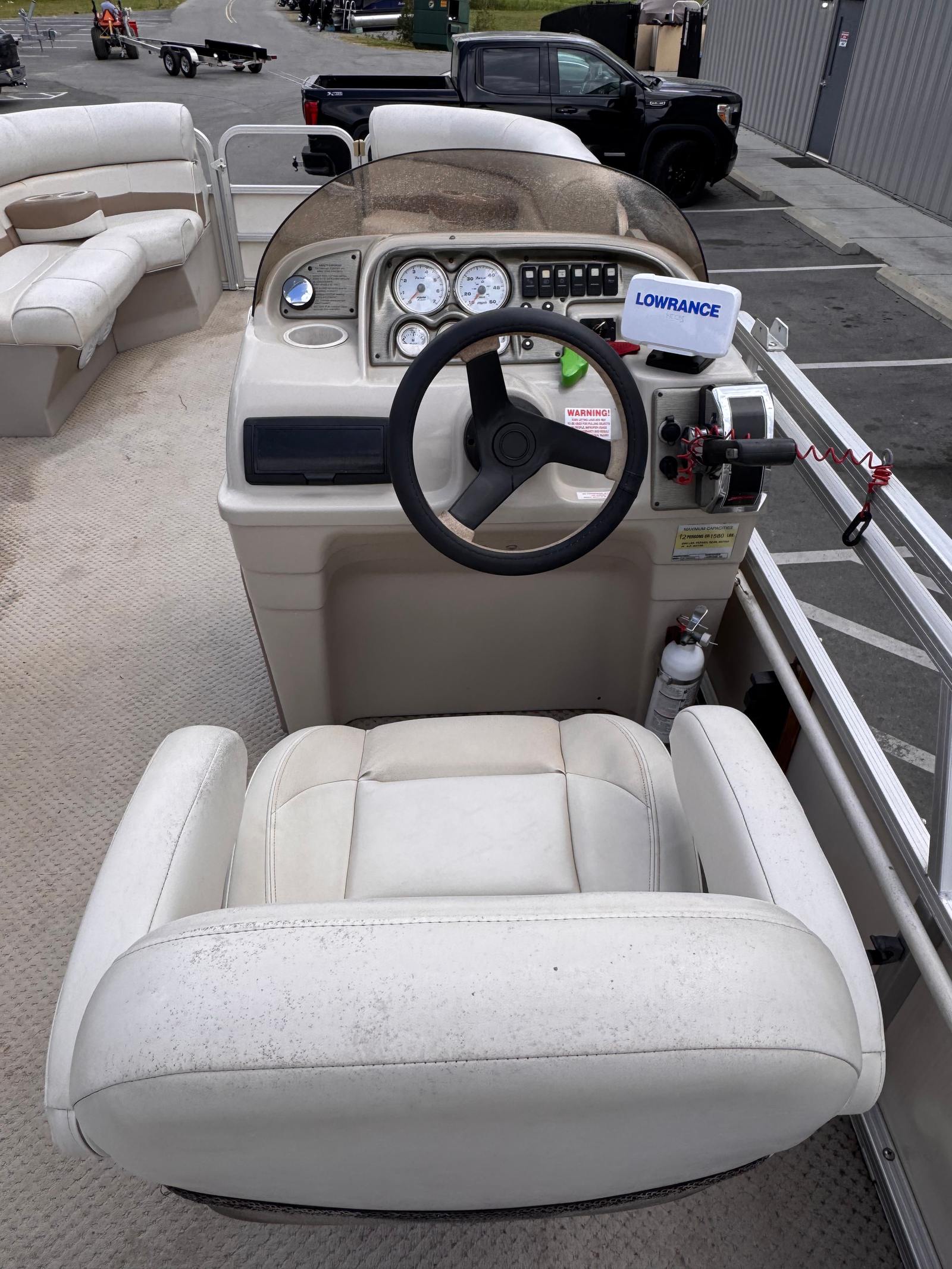 Powering this Sunchaser Cruise is a single engine with 50 horsepower, delivering a smooth and efficient ride across lakes, rivers, and calm coastal waters. The 50 HP engine strikes a perfect balance between fuel efficiency and reliable performance, making it easy to cruise at a leisurely pace or pick up speed when you want to feel the wind in your hair. The single-engine setup also simplifies maintenance and operation, ensuring that your time on the water is spent enjoying the journey rather than worrying about complex mechanics. Whether you’re towing a tube, heading out for a sunset cruise, or simply drifting with the current, this pontoon boat for sale offers the dependable power you need for a variety of on-water experiences.