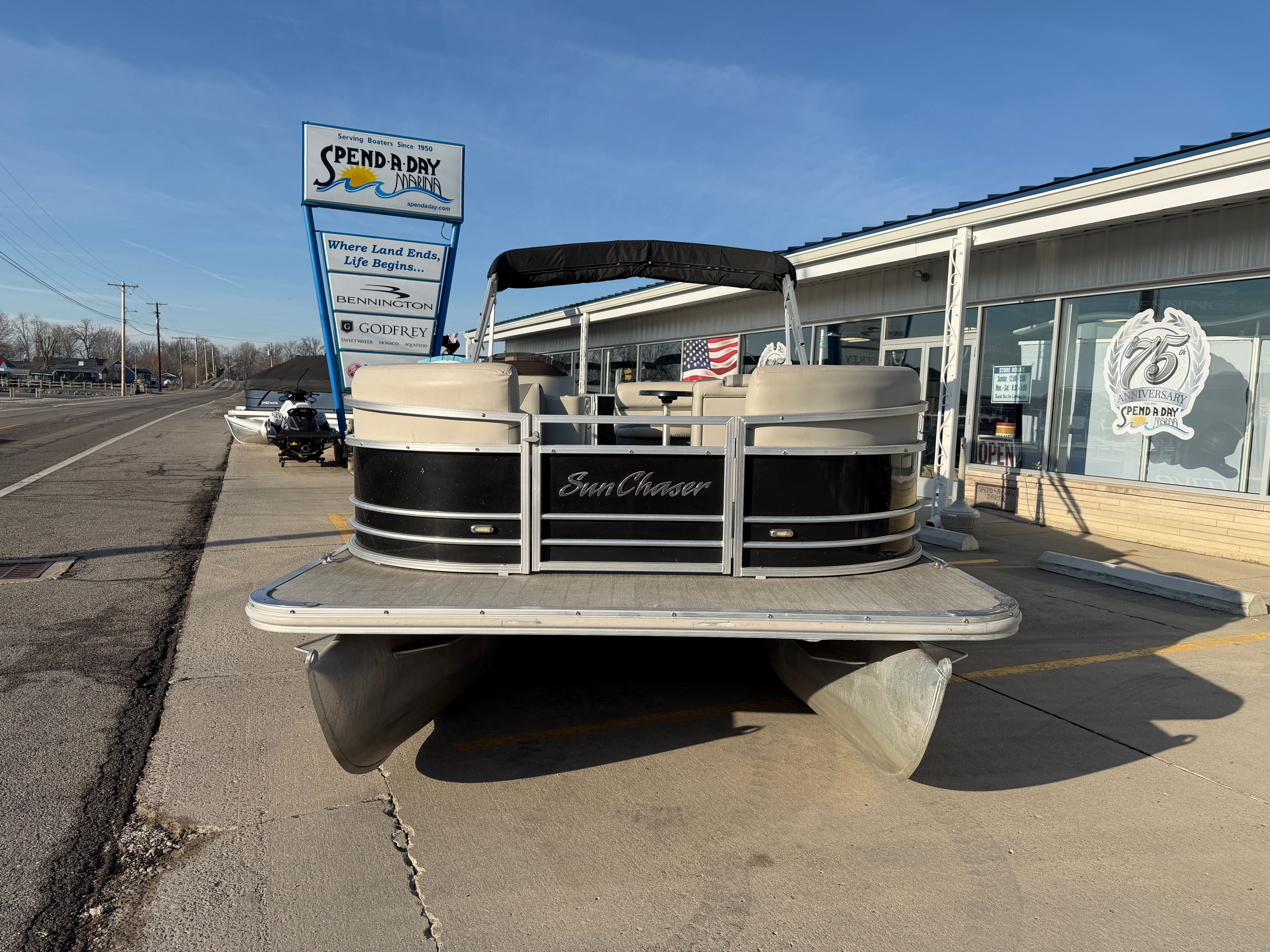In summary, the 2018 Sunchaser Geneva 22 is a standout pontoon boat for sale that offers a winning combination of comfort, performance, and versatility. With its spacious 22-foot layout, reliable 50 HP engine, and thoughtful design, this used Sunchaser boat for sale is ready to enhance your time on the water. Enjoy the benefits of ample storage, easy handling, and a welcoming atmosphere that makes every outing enjoyable.If you are ready to elevate your boating lifestyle with a dependable and stylish pontoon, the Sunchaser Geneva 22 is an excellent choice. Do not miss your chance to own this exceptional boat—contact the dealer today for more information and take the first step toward unforgettable adventures on the water.