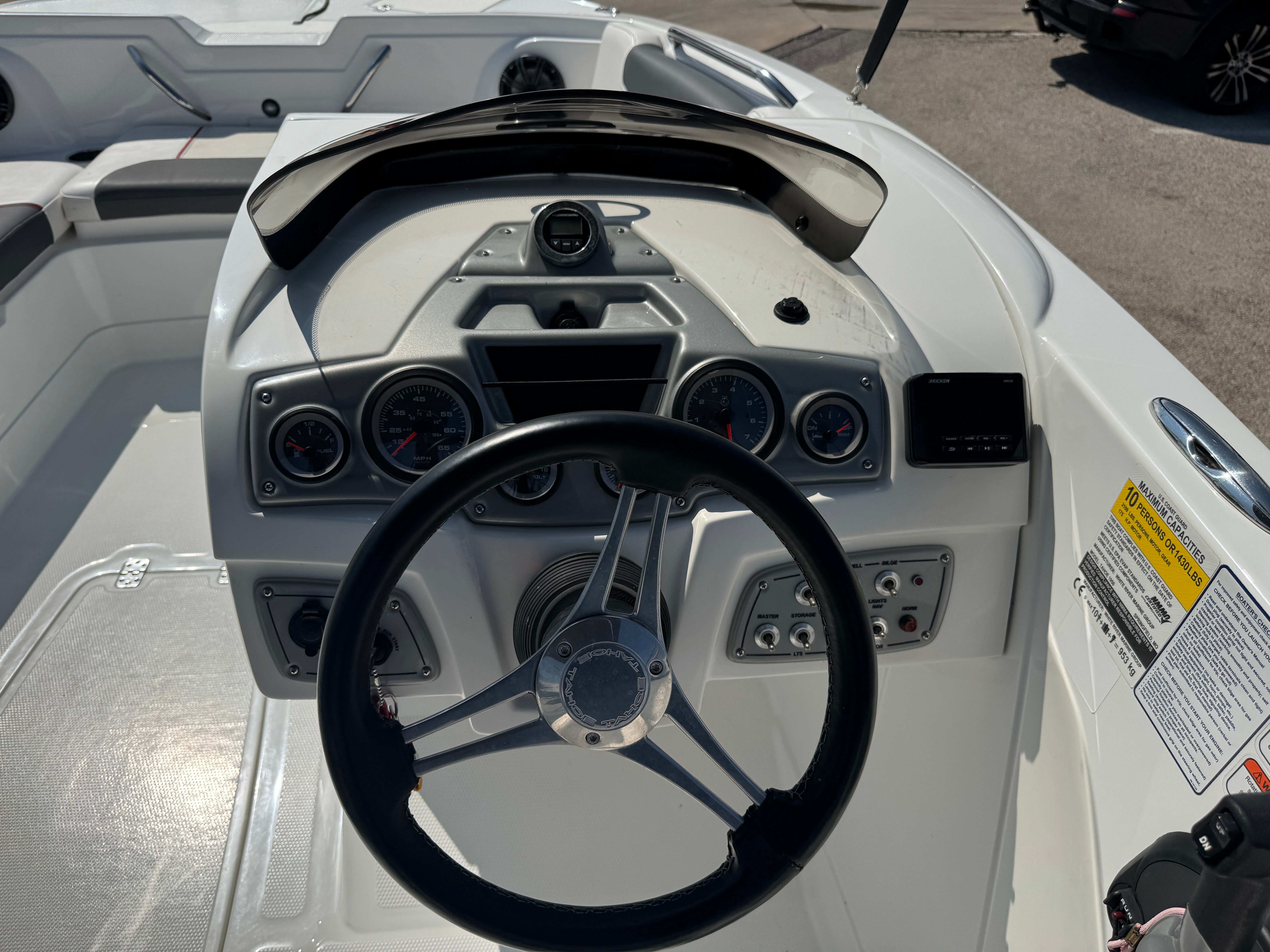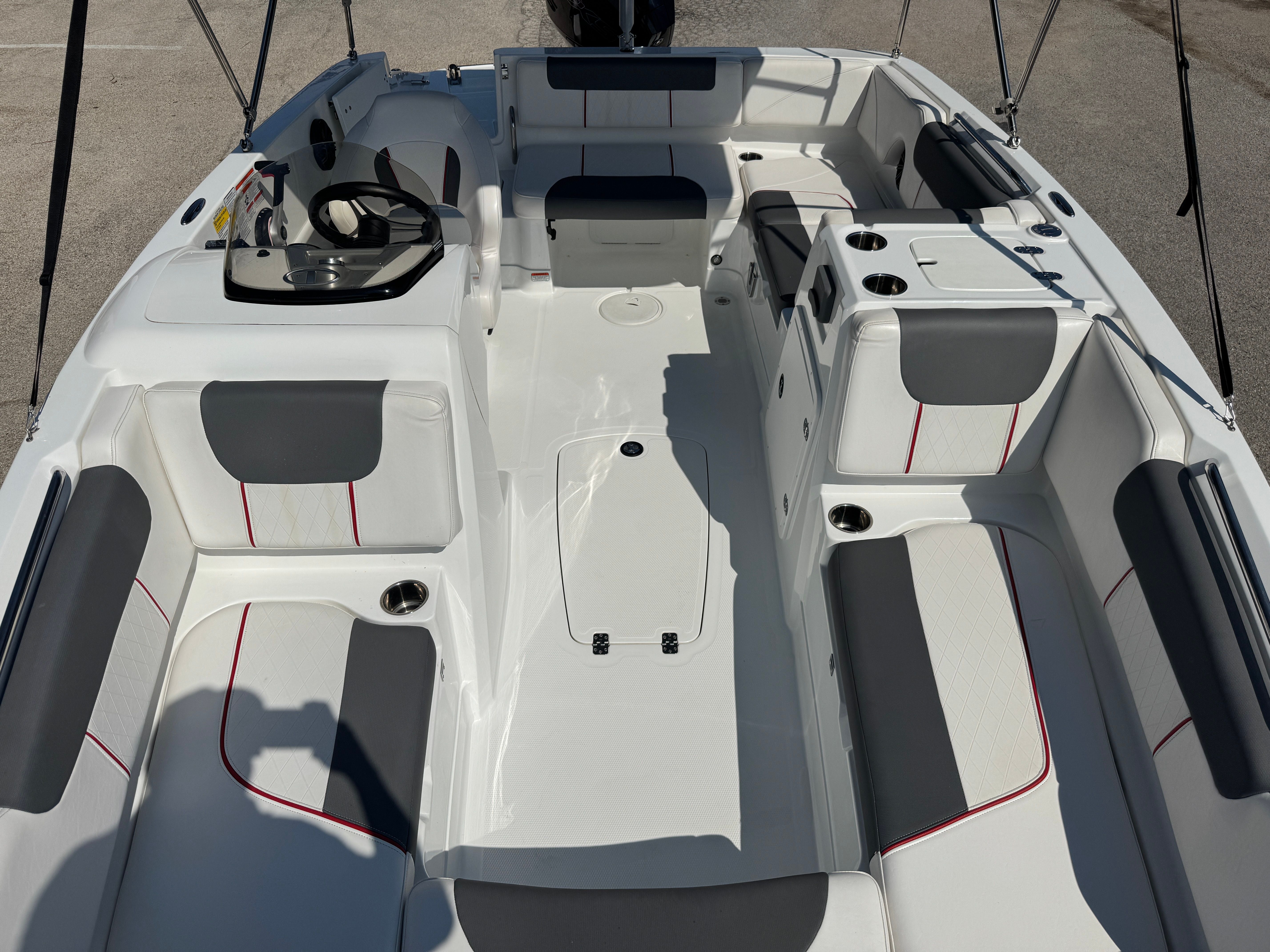 The 2021 Tahoe 1950 Deckboat is as practical as it is enjoyable. Its manageable 19-foot length makes it easy to store, trailer, and dock, so you can spend less time worrying about logistics and more time enjoying the water. The efficient engine provides a great balance of power and fuel economy, allowing you to maximize your time on the water without breaking the bank. Whether you are navigating busy marinas or exploring quiet lakes, the Tahoe 1950’s responsive handling and compact size make it a breeze to operate.This deckboat is also designed with convenience in mind, offering ample storage for all your boating essentials. From life jackets to fishing gear to water toys, you will have plenty of space to keep everything organized and within reach. The intuitive controls and easy-to-read gauges make piloting the Tahoe 1950 straightforward and stress-free, so you can focus on having fun and making memories.