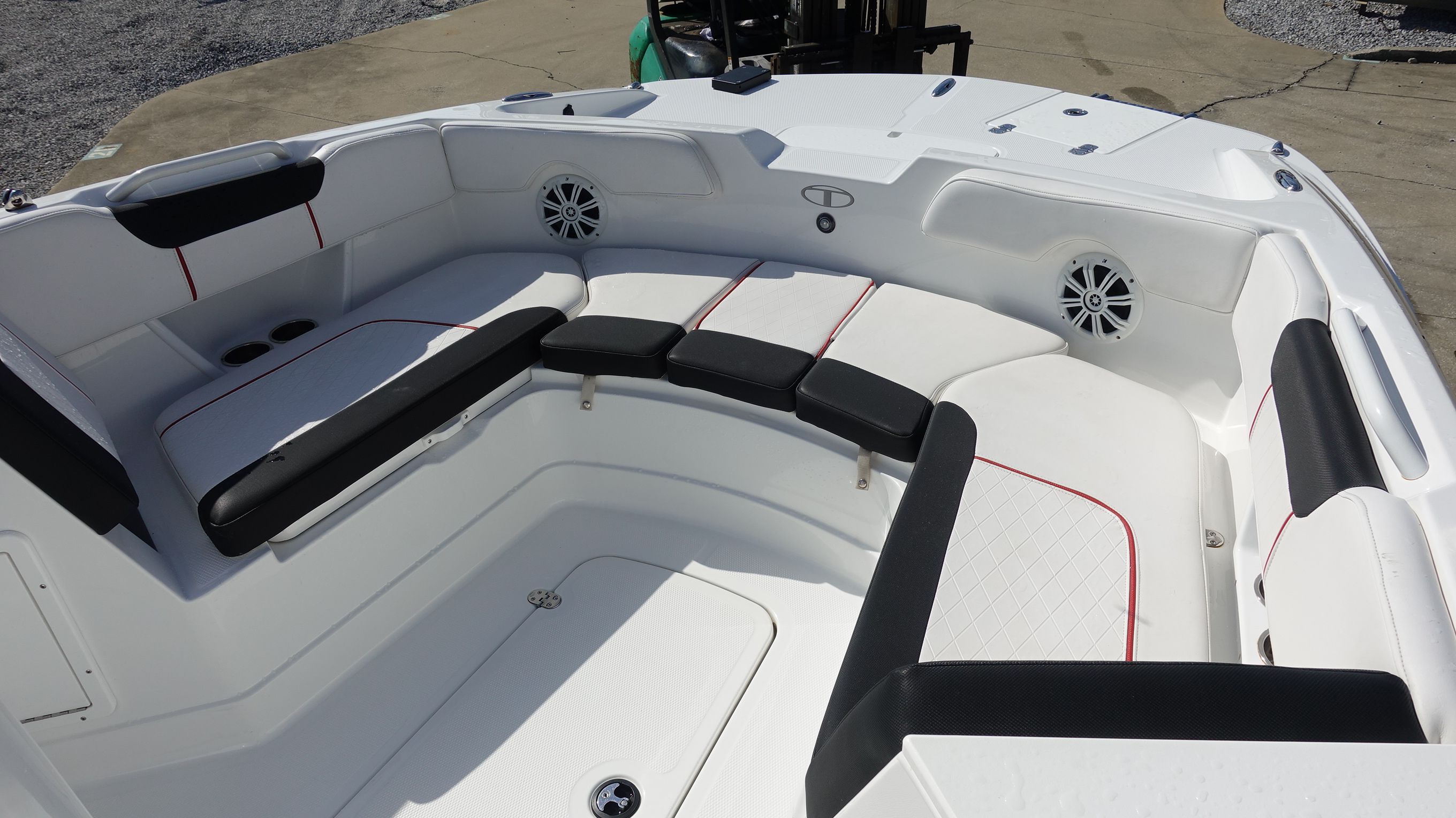 The Tahoe 2150 CC deckboat is packed with features that enhance your time on the water. Its spacious deck layout is designed for maximum comfort and versatility, offering plenty of seating for family and friends. The open floor plan makes it easy to move around, while the thoughtful placement of storage compartments ensures you have room for all your gear and essentials. The center console design provides excellent visibility and control, making navigation a breeze. With its modern styling and attention to detail, the Tahoe 2150 CC stands out as a top choice among deckboats.
