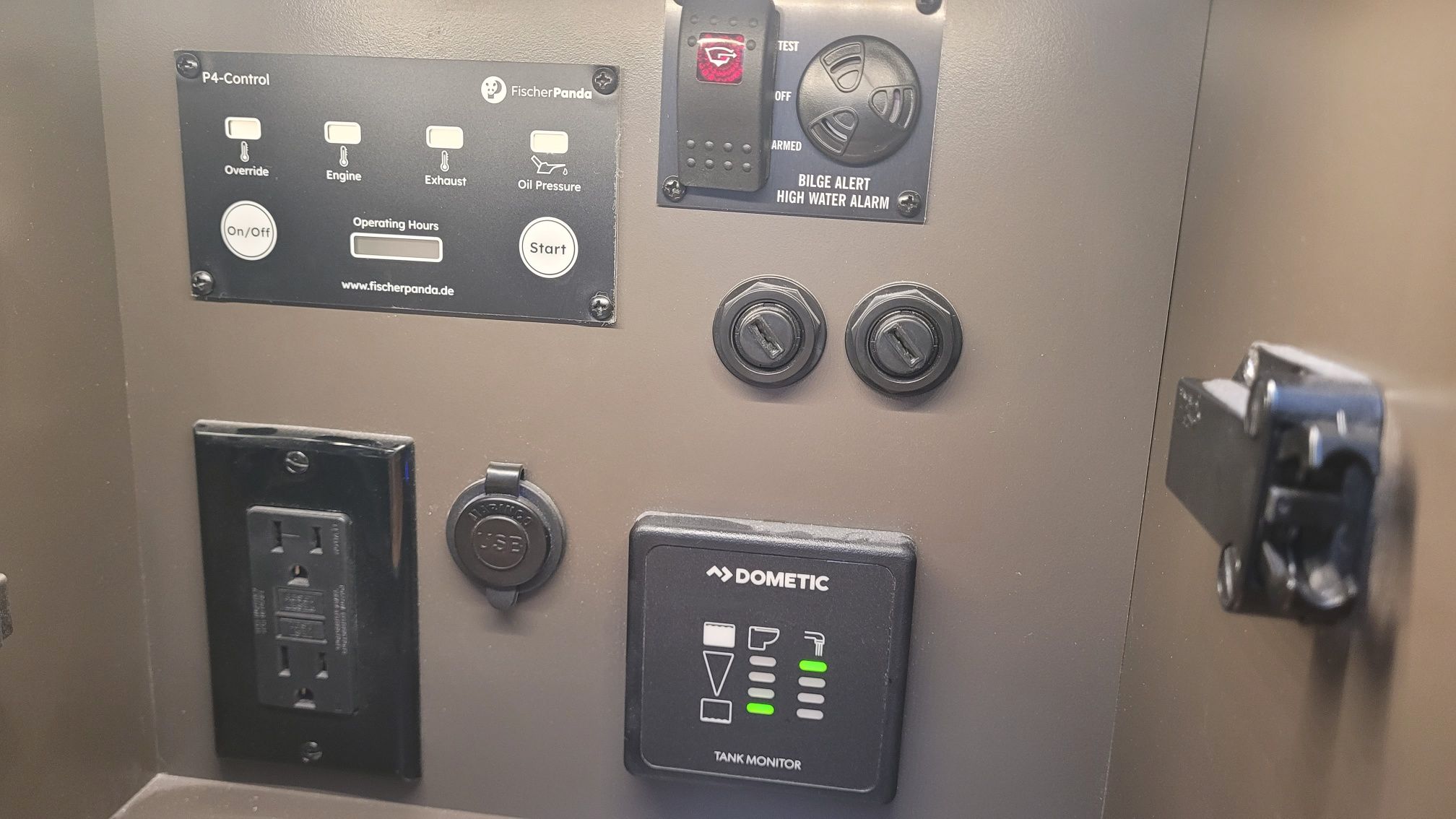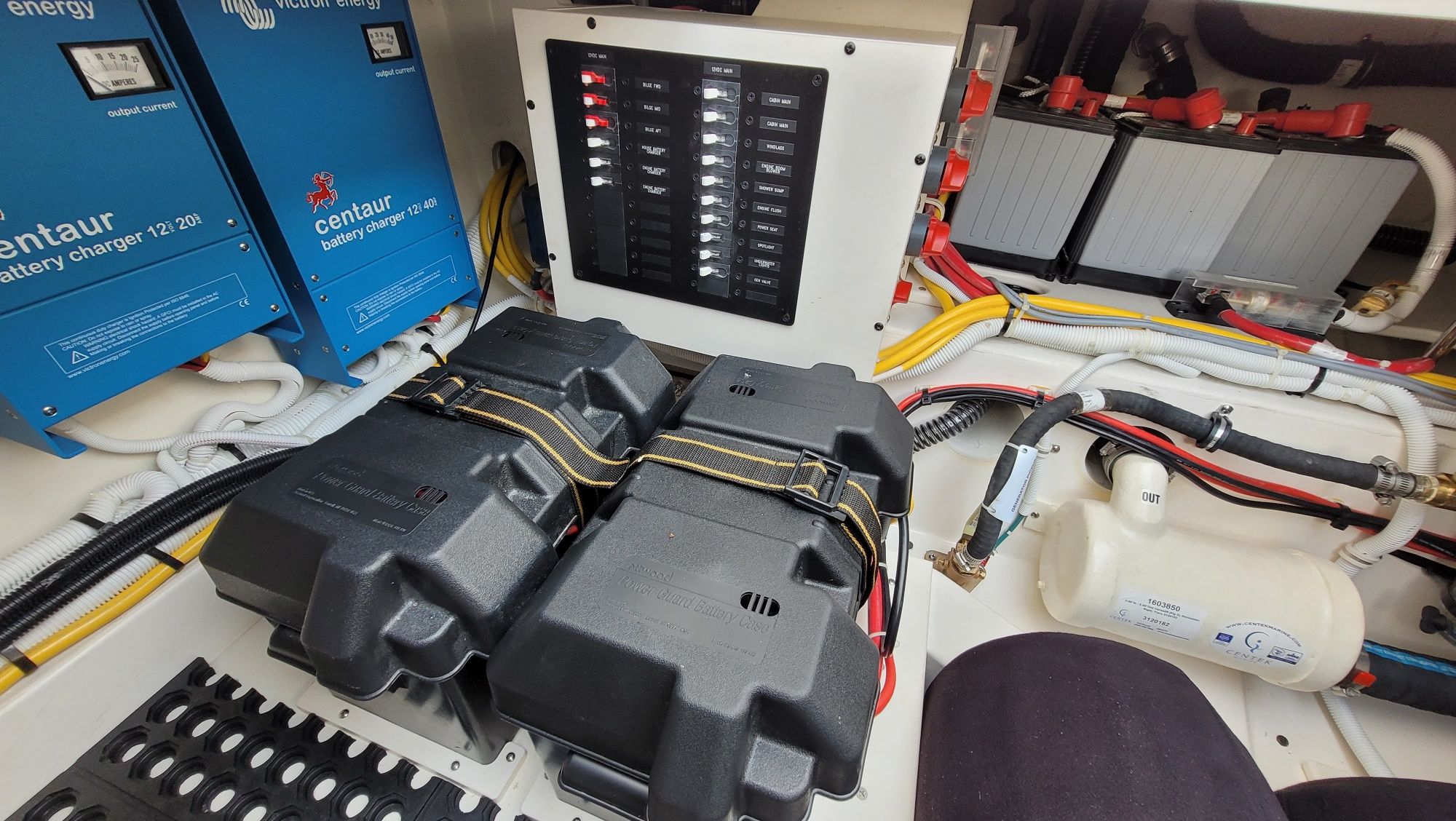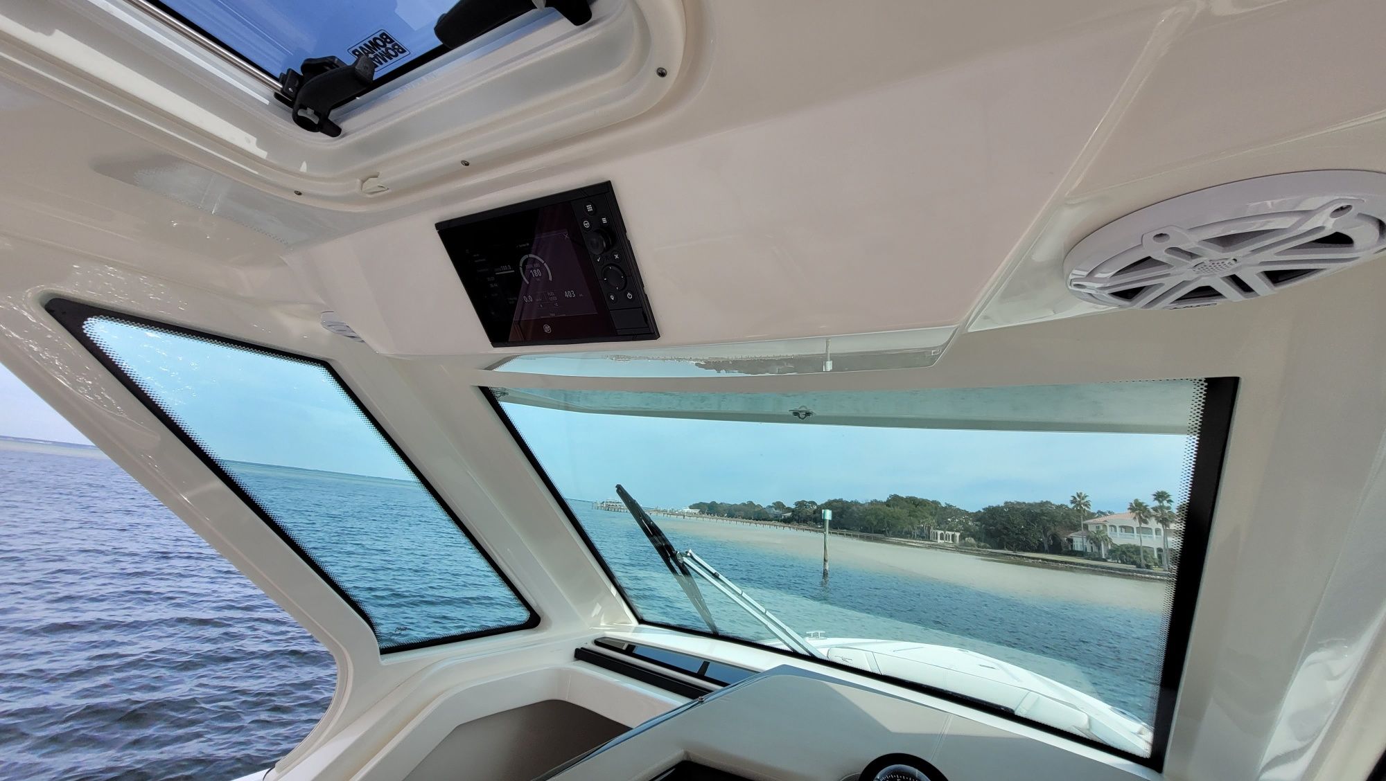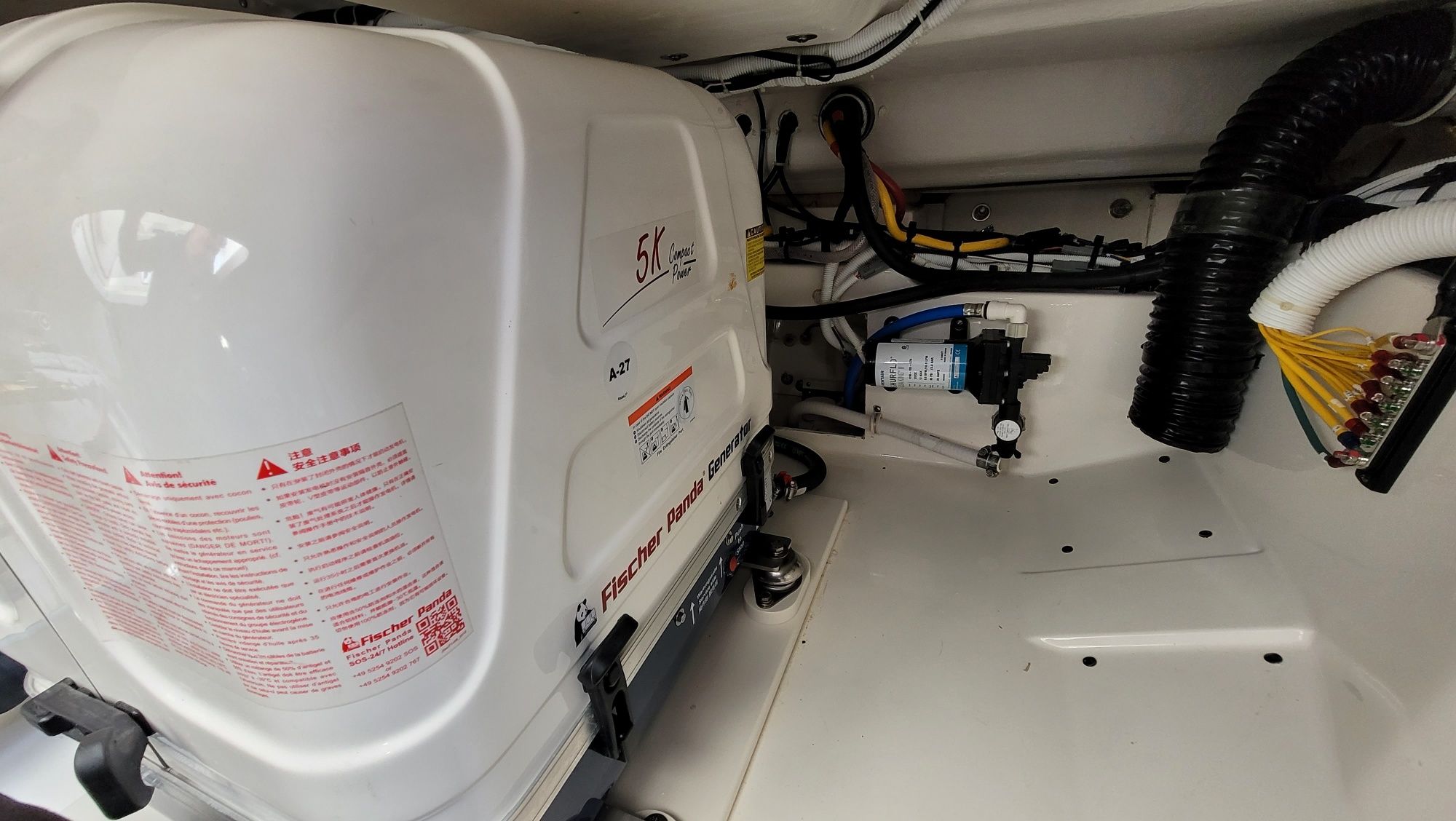 Other notable options include, Panda diesel generator 5KW, water heater, cockpit grill, cockpit TV, Drop curtain enclosure, dramatic lighting package, cool helm air and heat 6k, head macerator system, custom freshwater flush system for the generator and AC unit and custom Yeti cooler storage.