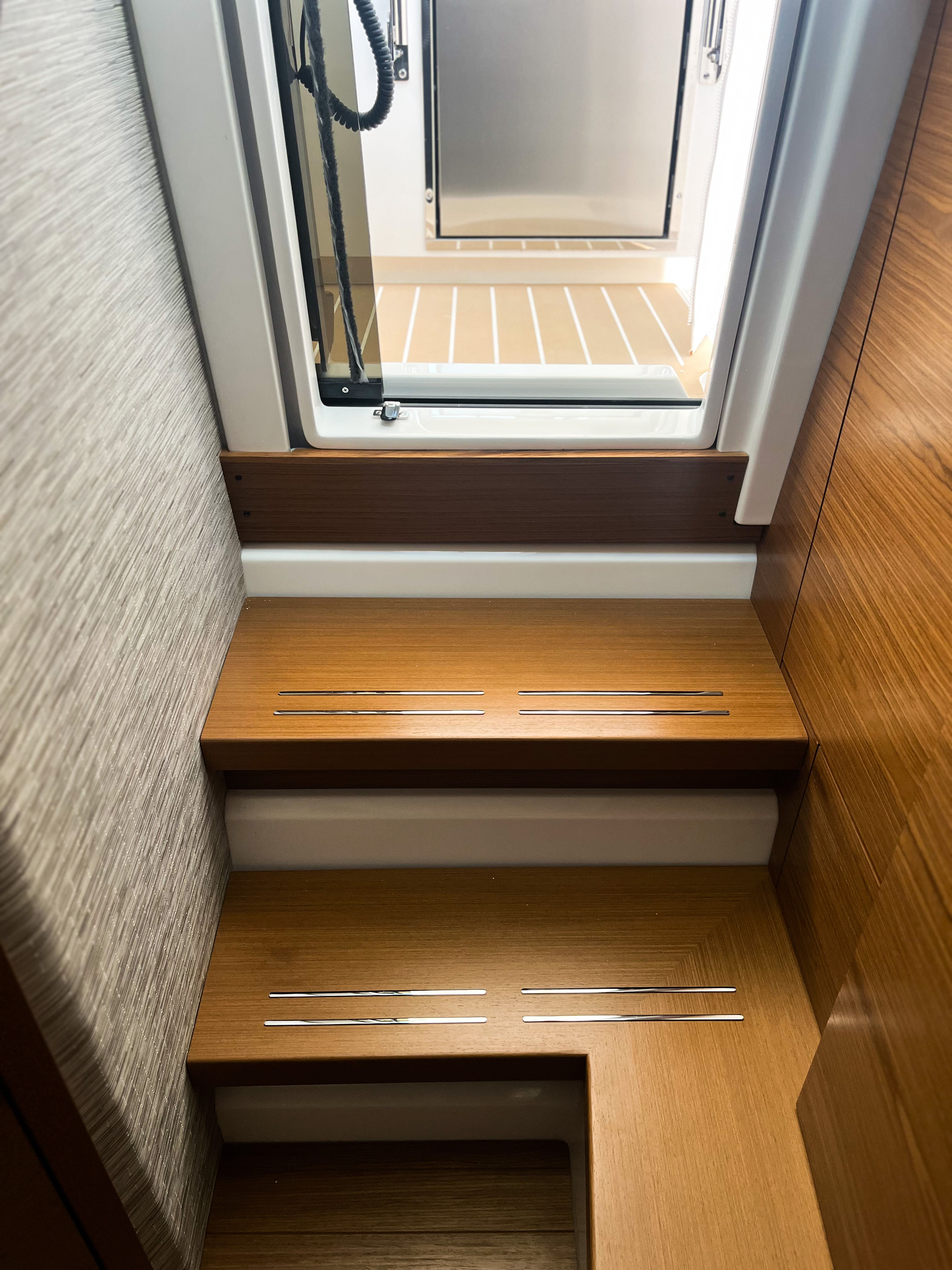 - Synthetic Teak Decking on Swim Platform, Port Boarding Step and Helm Area - Natural