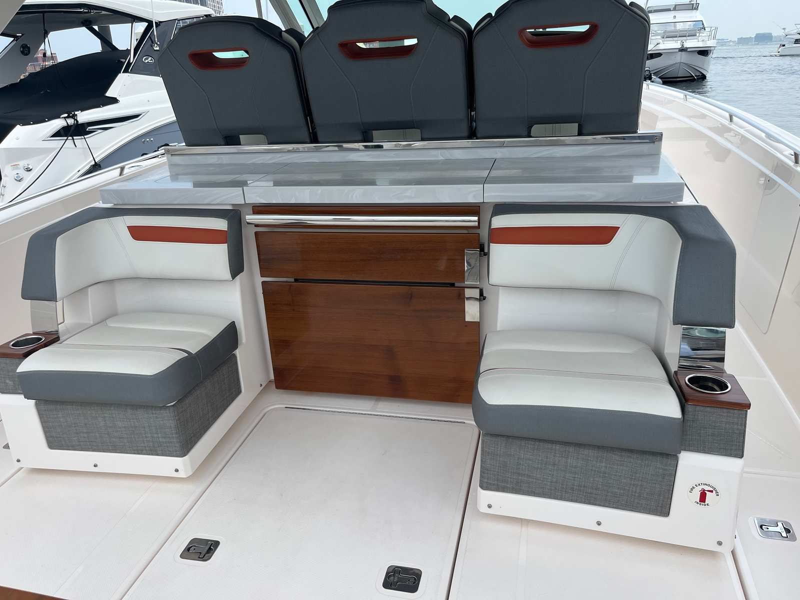 The Tiara Yachts 38 LS is packed with features that enhance both its functionality and its appeal as a luxury yacht. The spacious deck layout is designed for socializing, with plenty of seating and lounging areas for guests to relax and enjoy the scenery. The helm station is equipped with advanced controls and displays, providing the captain with all the information needed for confident navigation. The yacht’s design maximizes both indoor and outdoor living spaces, creating a seamless flow between the cockpit, salon, and bow areas. The 38 LS also offers thoughtful storage solutions throughout, making it easy to stow gear, water toys, and personal items. The attention to detail in the craftsmanship is evident in every aspect of the yacht, from the high-quality materials used in the finishes to the ergonomic design of the seating and controls. Whether you are hosting a sunset cocktail party or embarking on a weekend getaway, the Tiara Yachts 38 LS provides the perfect setting for making memories on the water.