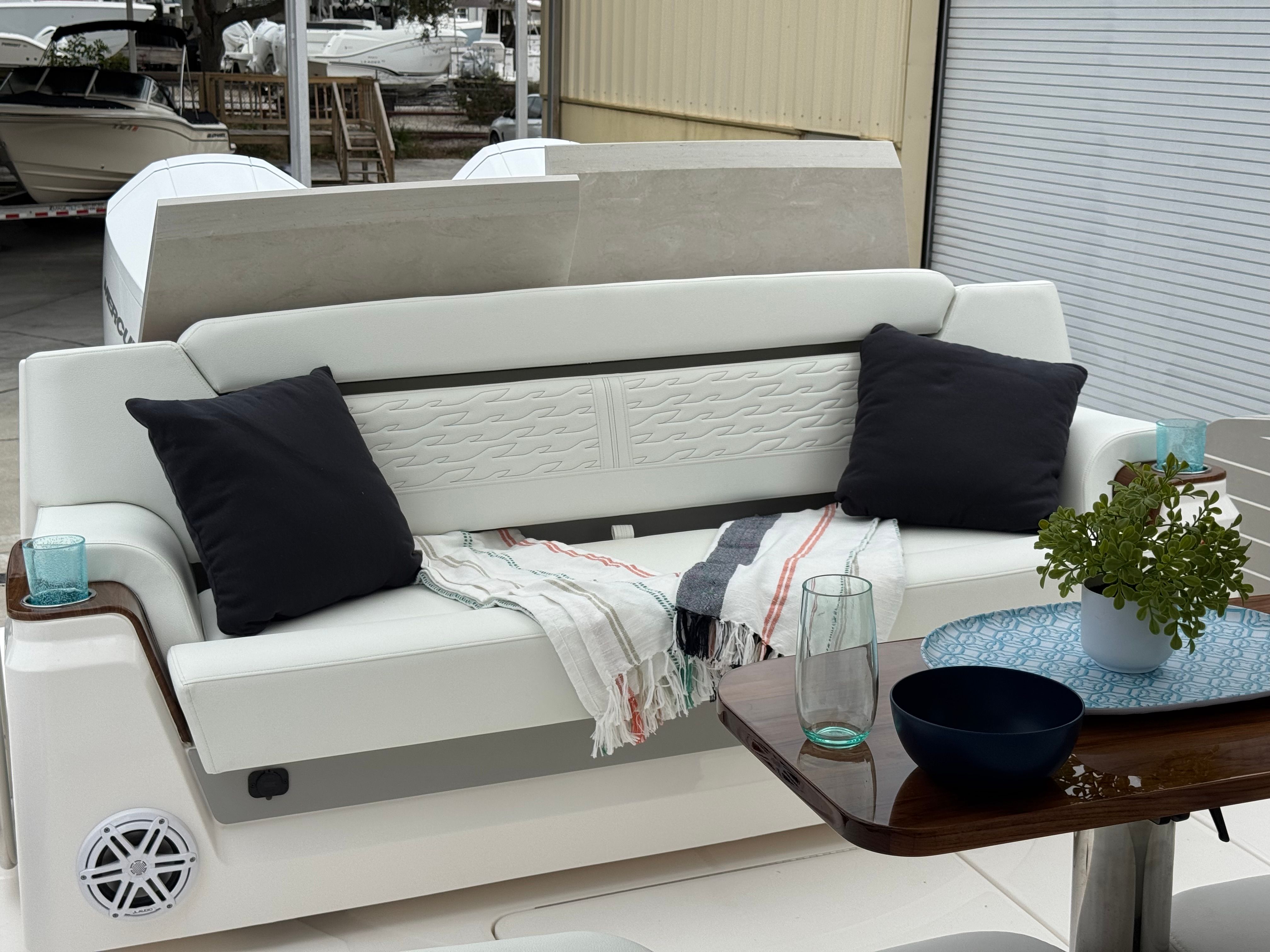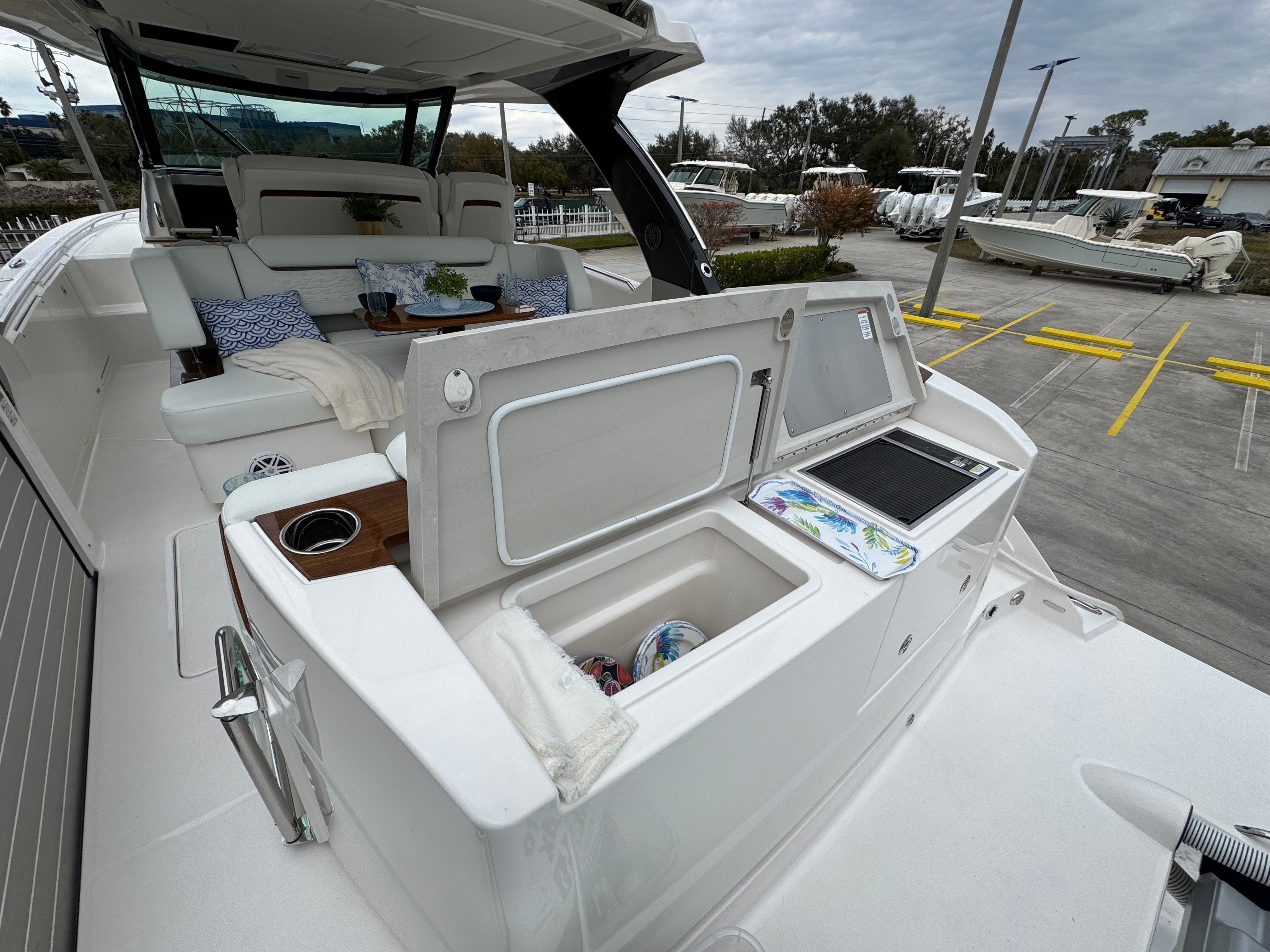 The Tiara Yachts 39 LS comes equipped with a suite of premium features designed to enhance your boating lifestyle. The Seakeeper SK4 GYRO stabilizer ensures a smooth and comfortable ride by minimizing roll, even in choppy conditions. The head macerator system offers convenience and efficiency, while the cool helm AC with heat keeps the captain and guests comfortable in any weather. Maintenance is made easy with the oil changer for the generator, and the all-chain windlass provides reliable and effortless anchoring.For those who love to entertain, the buffet lounge module creates a perfect space for socializing and dining. The forward manual Mediterranean-style sunshade offers protection from the sun, allowing you to relax in comfort during long days on the water. The starboard fridge ensures that refreshments are always within reach, adding to the overall enjoyment of your time aboard.