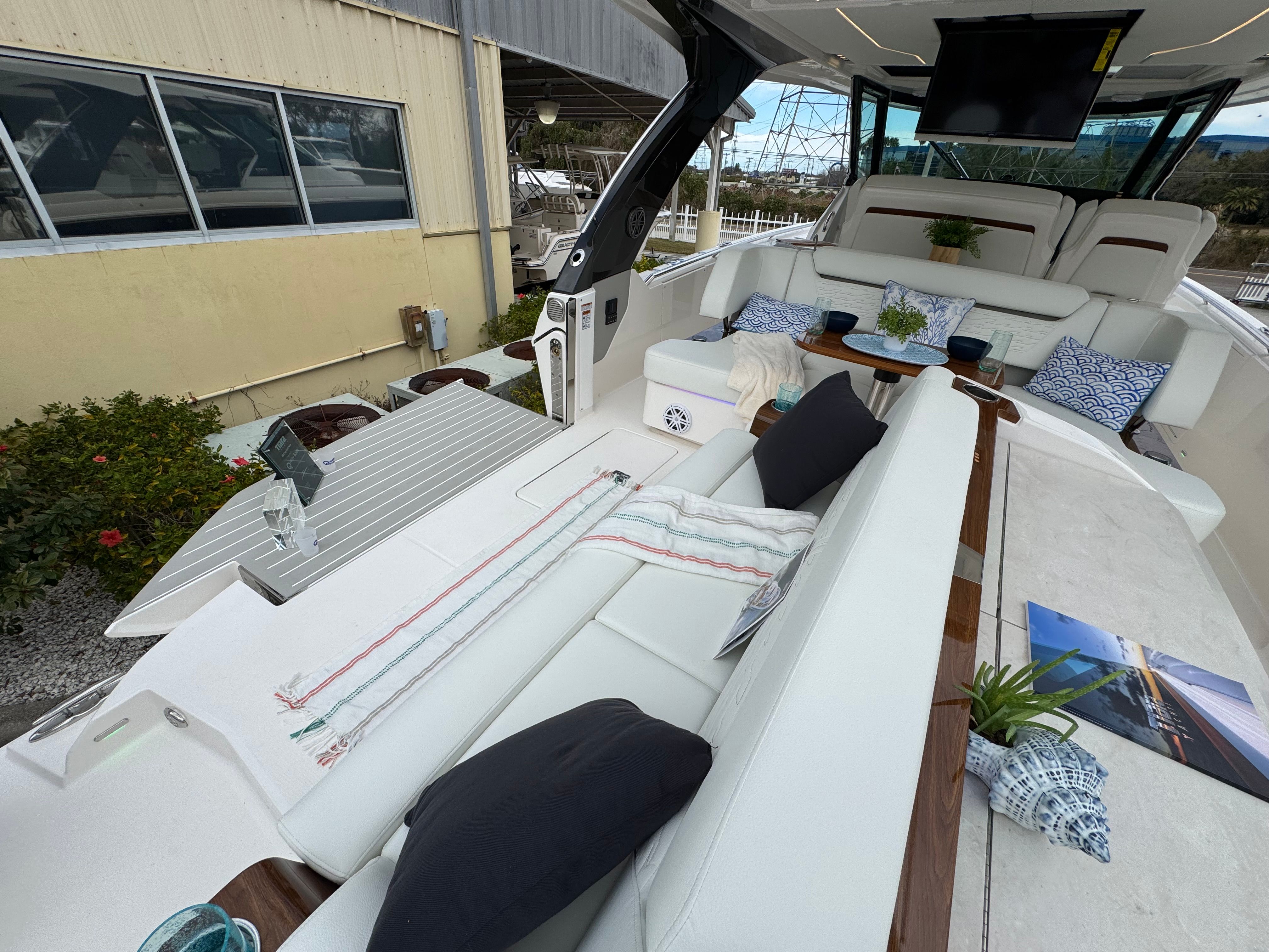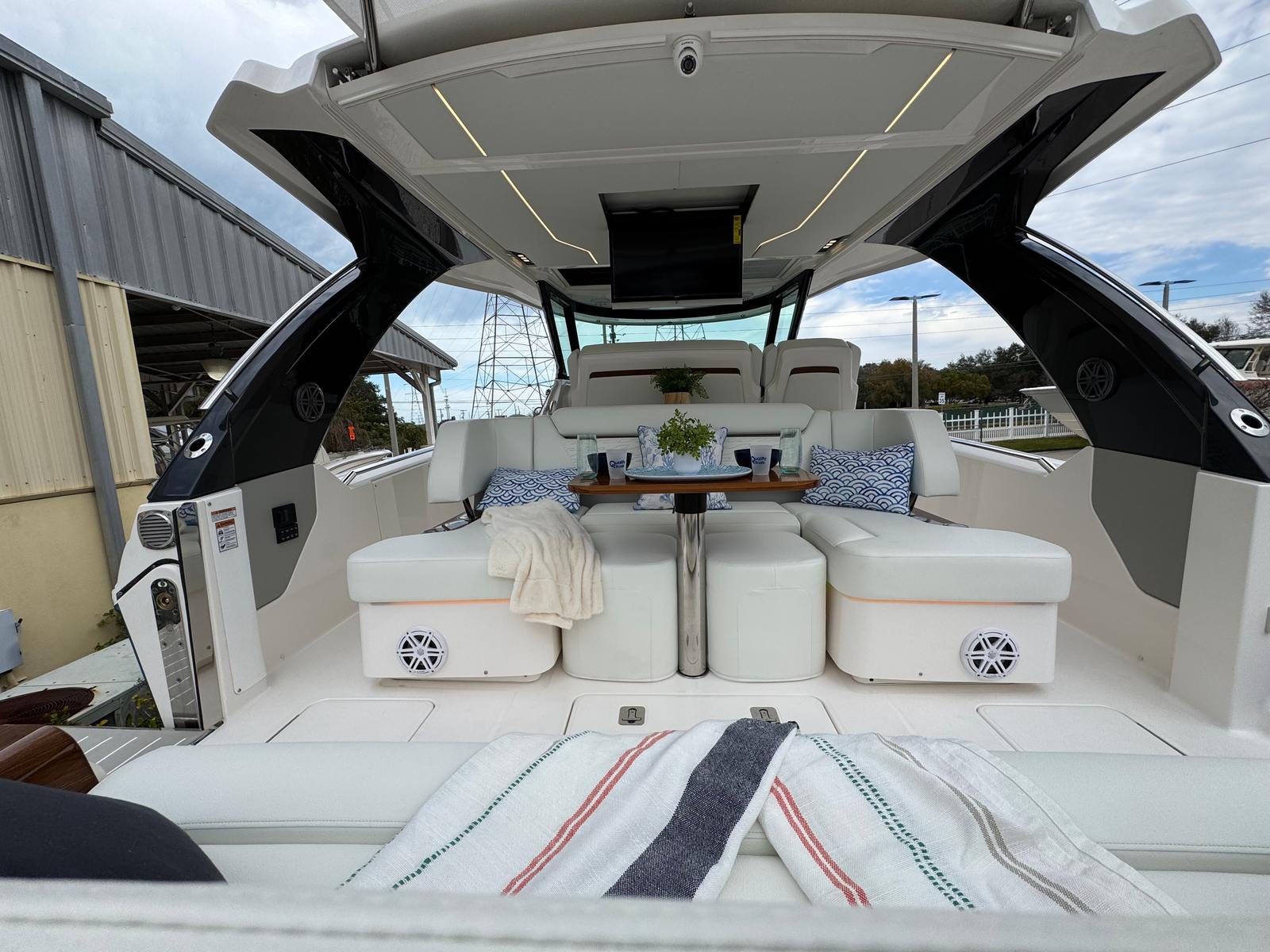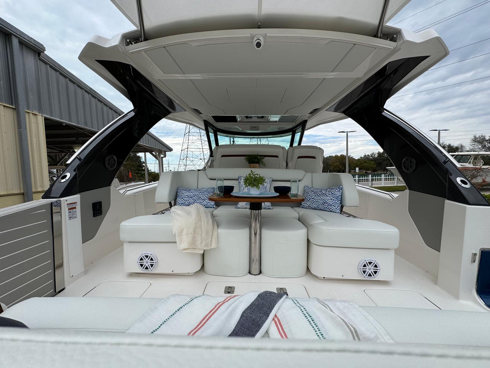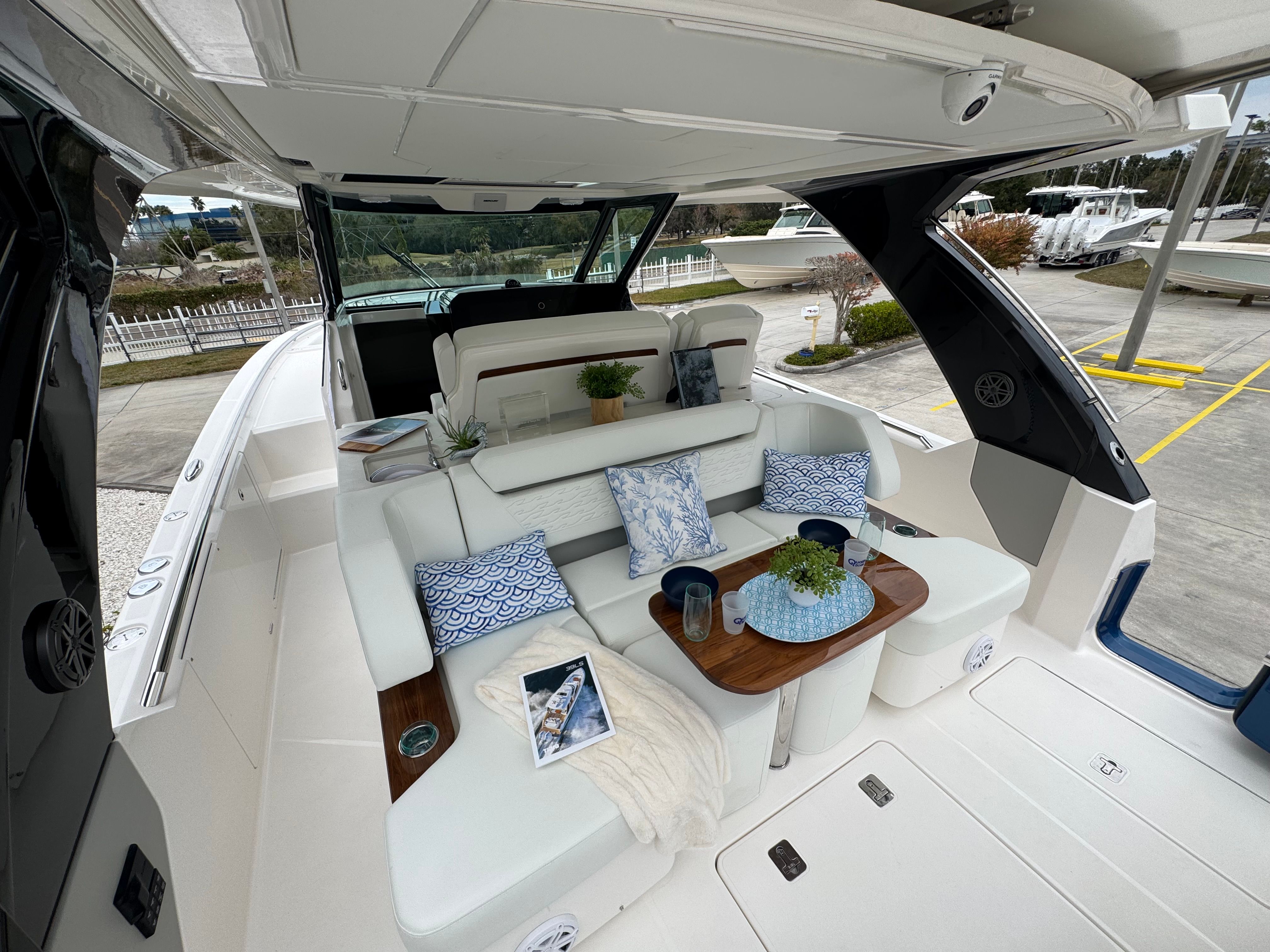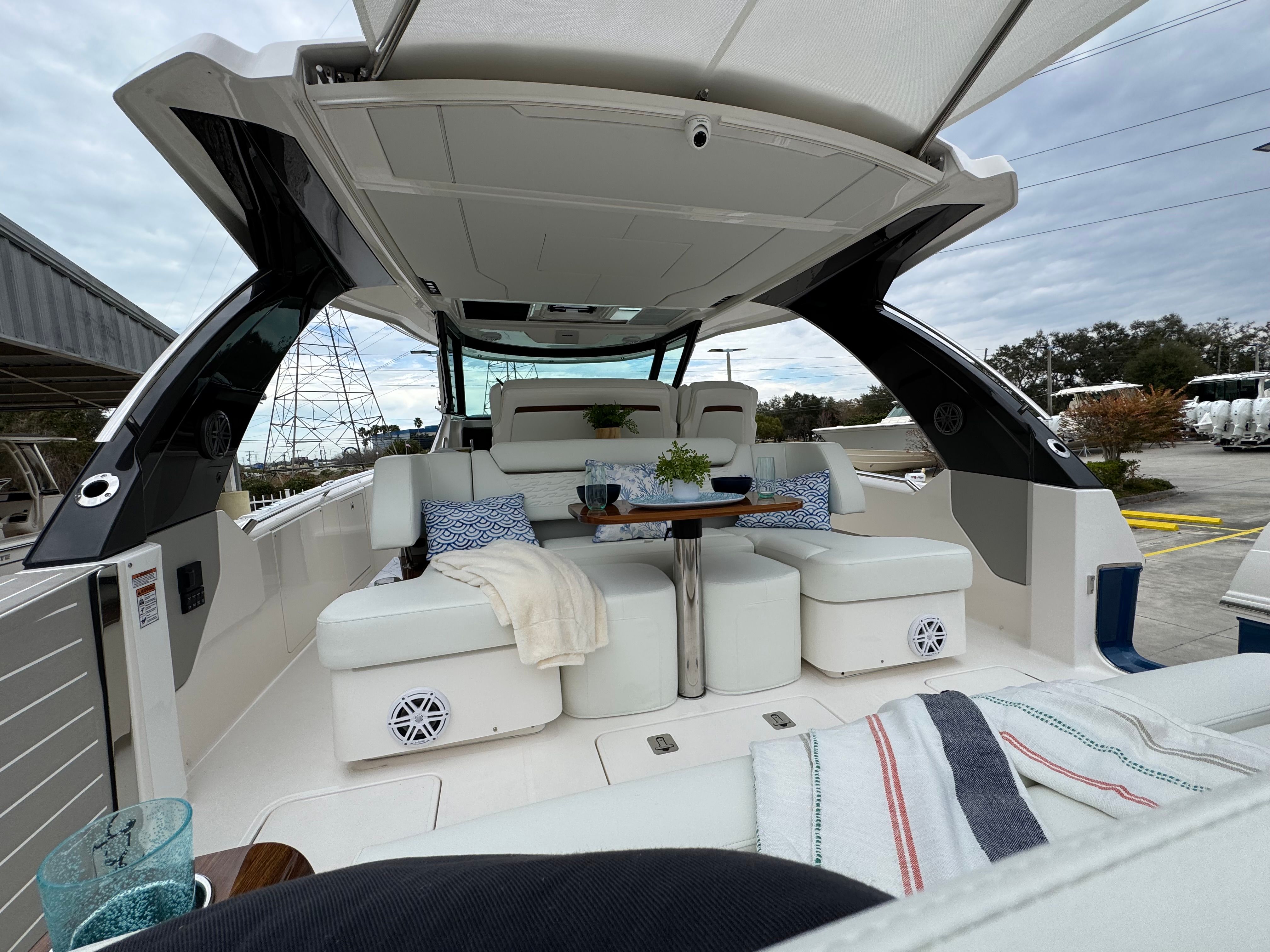 The versatility of the Tiara Yachts 39 LS makes it the perfect choice for a wide range of boating activities. For family outings, the spacious deck and comfortable seating create an inviting environment for relaxation, sunbathing, and shared meals. The yacht’s stability and performance make it ideal for exploring new destinations, whether you are embarking on a weekend getaway or a longer coastal adventure.For those who enjoy entertaining, the buffet lounge module and ample seating provide the perfect setting for social gatherings, cocktail parties, or sunset cruises. The Mediterranean-style sunshade offers a cool retreat from the sun, allowing guests to enjoy the outdoors in comfort. Whether you are hosting friends, spending quality time with family, or seeking a private escape, the Tiara Yachts 39 LS adapts to your needs and exceeds your expectations.