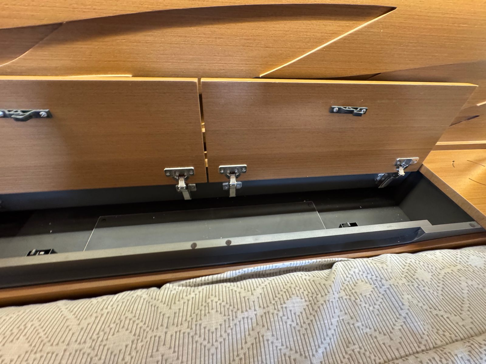 The Tiara Yachts 39 LS is designed with practicality in mind, making ownership as enjoyable as it is luxurious. The intuitive joystick piloting and bow thruster integration simplify docking and maneuvering, reducing stress and allowing you to focus on enjoying your time on the water. The all-chain windlass ensures secure and hassle-free anchoring, while the oil changer for the generator streamlines maintenance tasks.Storage solutions are thoughtfully integrated throughout the yacht, providing ample space for gear, provisions, and personal items. The starboard fridge keeps food and beverages chilled and easily accessible, perfect for long days at sea or impromptu gatherings. The head macerator system adds convenience for extended trips, ensuring that every journey is comfortable and worry-free.