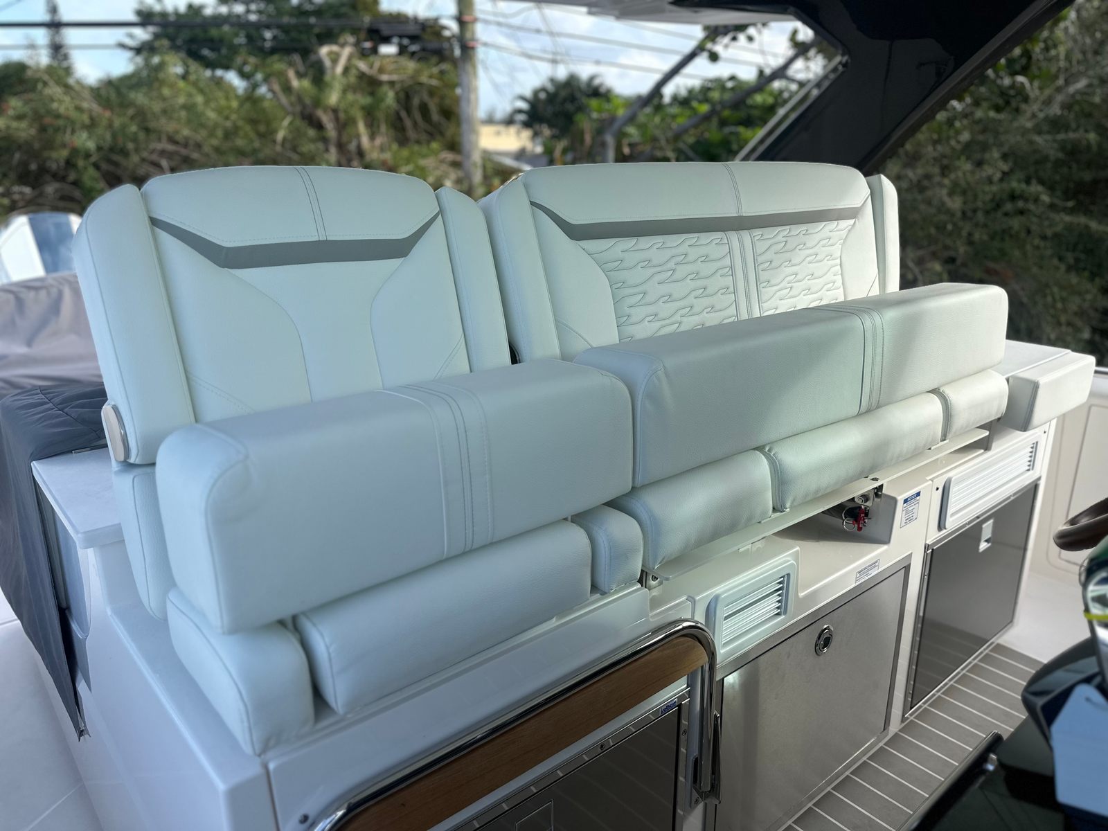 The Tiara Yachts 39 LS is as practical as it is luxurious. The integrated bow thruster and Mercury JPO system make docking and maneuvering simple, even for those new to yachting. The raw water washdown and oil changer for the generator streamline maintenance, allowing you to spend more time enjoying your yacht and less time on upkeep. The Electrosea strainer helps protect vital systems, ensuring reliable performance and peace of mind.Storage solutions are thoughtfully integrated throughout the yacht, providing ample space for gear, supplies, and personal items. The buffet lounge module adds versatility, serving as both a social hub and a convenient area for meals and refreshments. The forward sunshade offers flexible comfort, allowing you to adjust your environment to suit your preferences. These practical features make the 39 LS an excellent choice for anyone seeking a Tiara Yachts boat for sale that combines luxury with everyday usability.