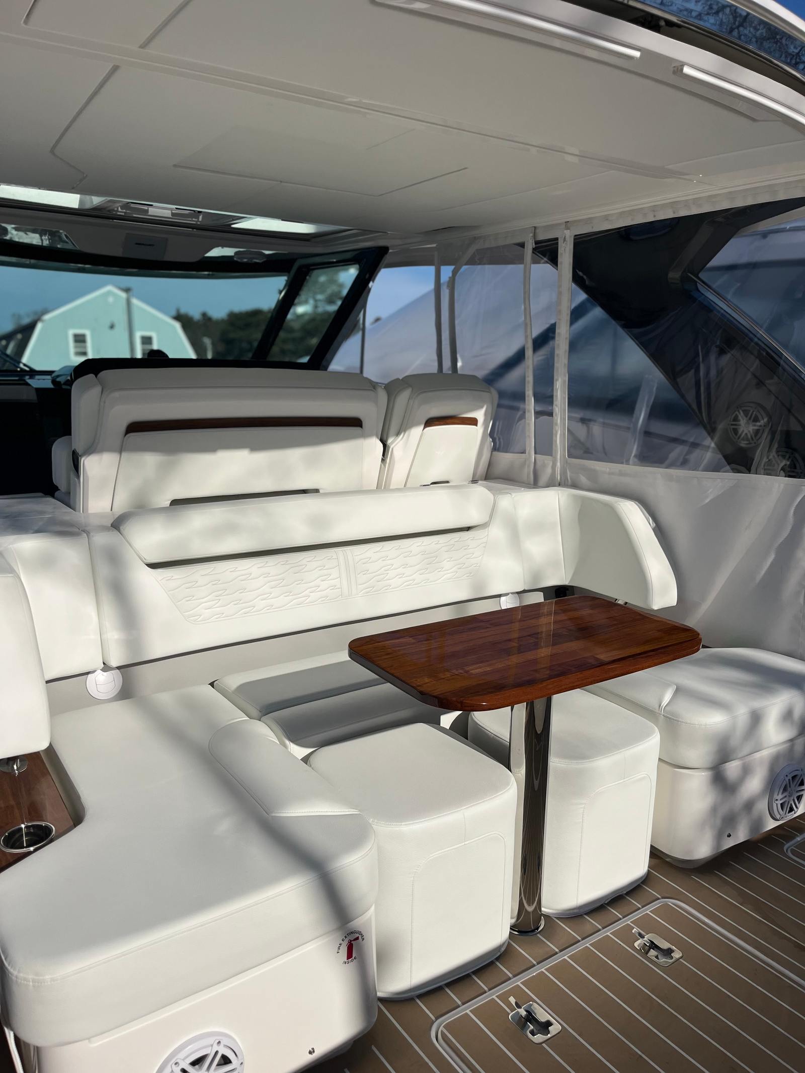 - High Gloss Teak Table for Aft-Facing U-Lounge with Dedicated Storage