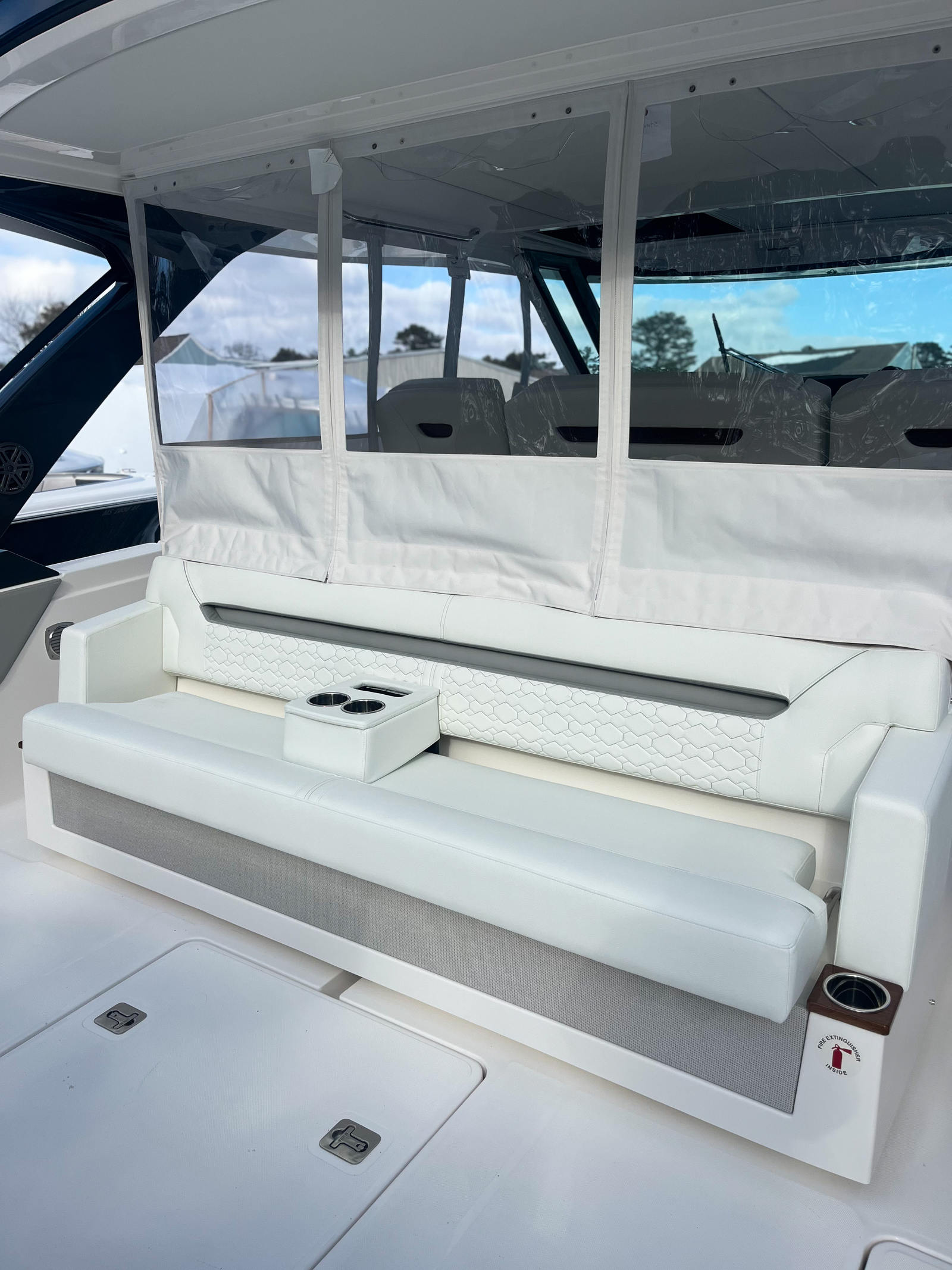 The Tiara Yachts 43 LS is designed with practicality in mind, offering features that make ownership and operation a breeze. The inverter provides reliable power for all your onboard needs, while the oil changer for the generator simplifies routine maintenance, saving you time and effort. The head macerator system adds a layer of convenience, making extended trips more comfortable and hassle-free.Docking and maneuvering are made easier thanks to the yacht’s responsive handling and advanced propulsion system, allowing you to navigate tight spaces with confidence. The ample storage throughout the yacht ensures that all your gear and essentials are neatly organized and easily accessible, whether you are planning a day trip or a longer voyage.