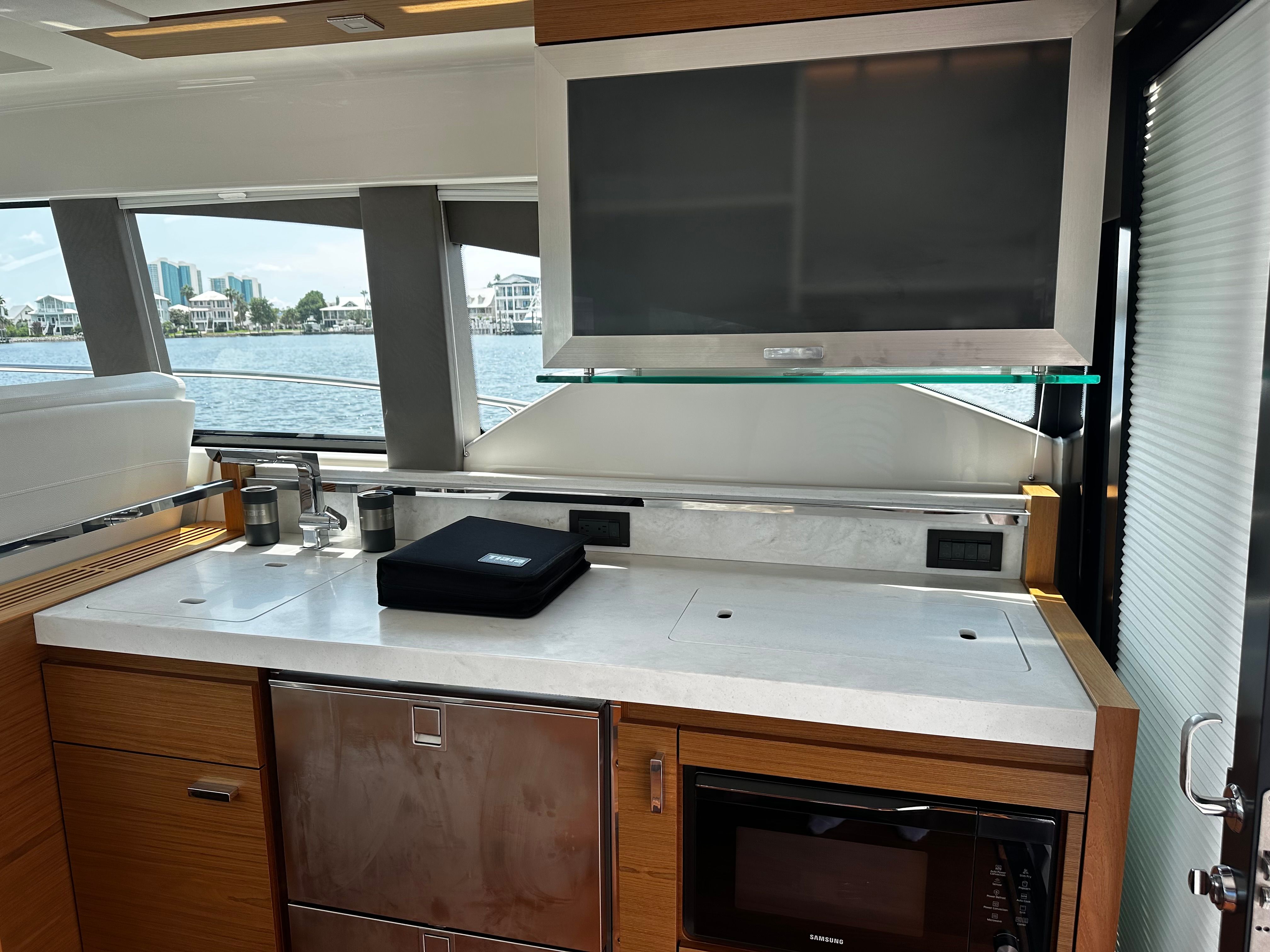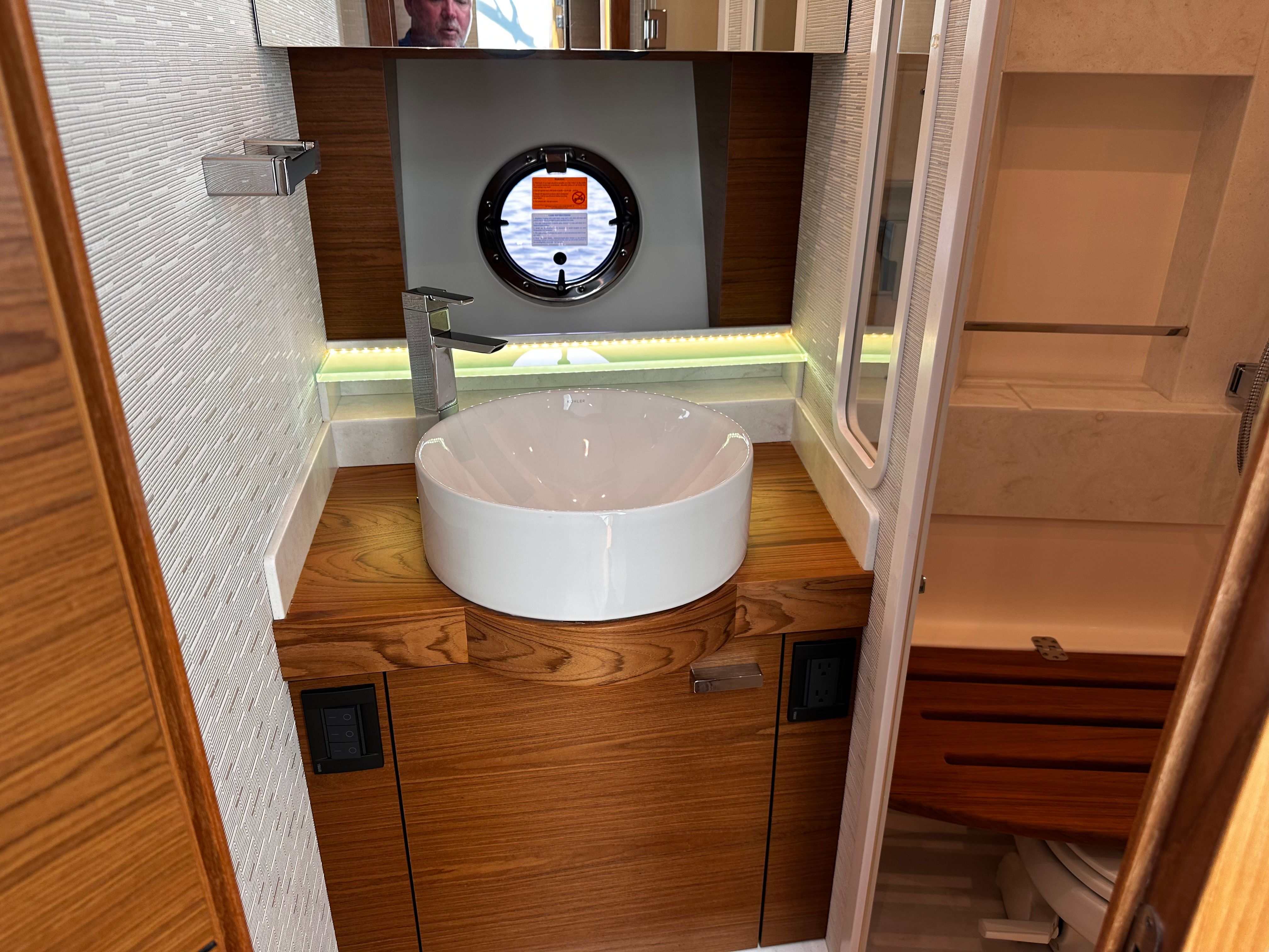 Beyond its luxurious amenities, the Tiara Yachts 44 Coupe is also designed with practicality in mind. The yacht’s layout maximizes storage options, ensuring that all your gear and essentials are easily accessible and neatly stowed. The efficient use of space makes it simple to keep the yacht organized, whether you’re preparing for a weekend getaway or an extended voyage. Docking is made easier thanks to the responsive twin engines, allowing for greater control and peace of mind when maneuvering in and out of slips. The yacht’s design also promotes fuel efficiency, helping you make the most of every journey while keeping operating costs in check.