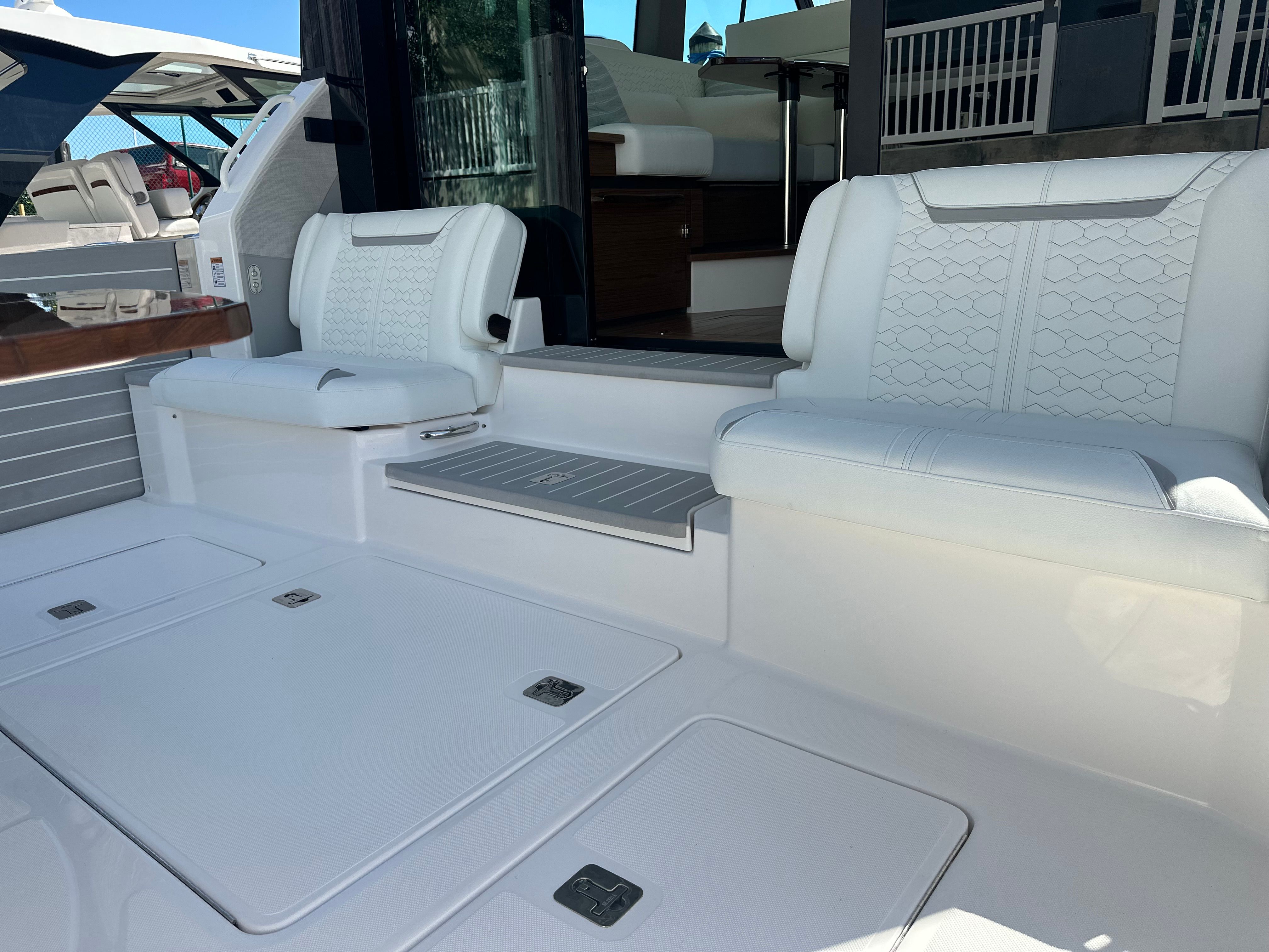 The Tiara Yachts 48 LE shines in a variety of scenarios, making it a versatile choice for any boating enthusiast. It’s perfect for family outings, offering plenty of space for everyone to relax and have fun. The lounge module creates an inviting atmosphere for social gatherings, while the gunwale rod holders cater to fishing enthusiasts looking to reel in the catch of the day. Luxury getaways are elevated by the yacht’s elegant design and premium features, providing a private oasis on the water. Whether you’re hosting a sunset cruise, embarking on a weekend adventure, or enjoying a quiet day at anchor, the 48 LE adapts to your needs and exceeds your expectations.