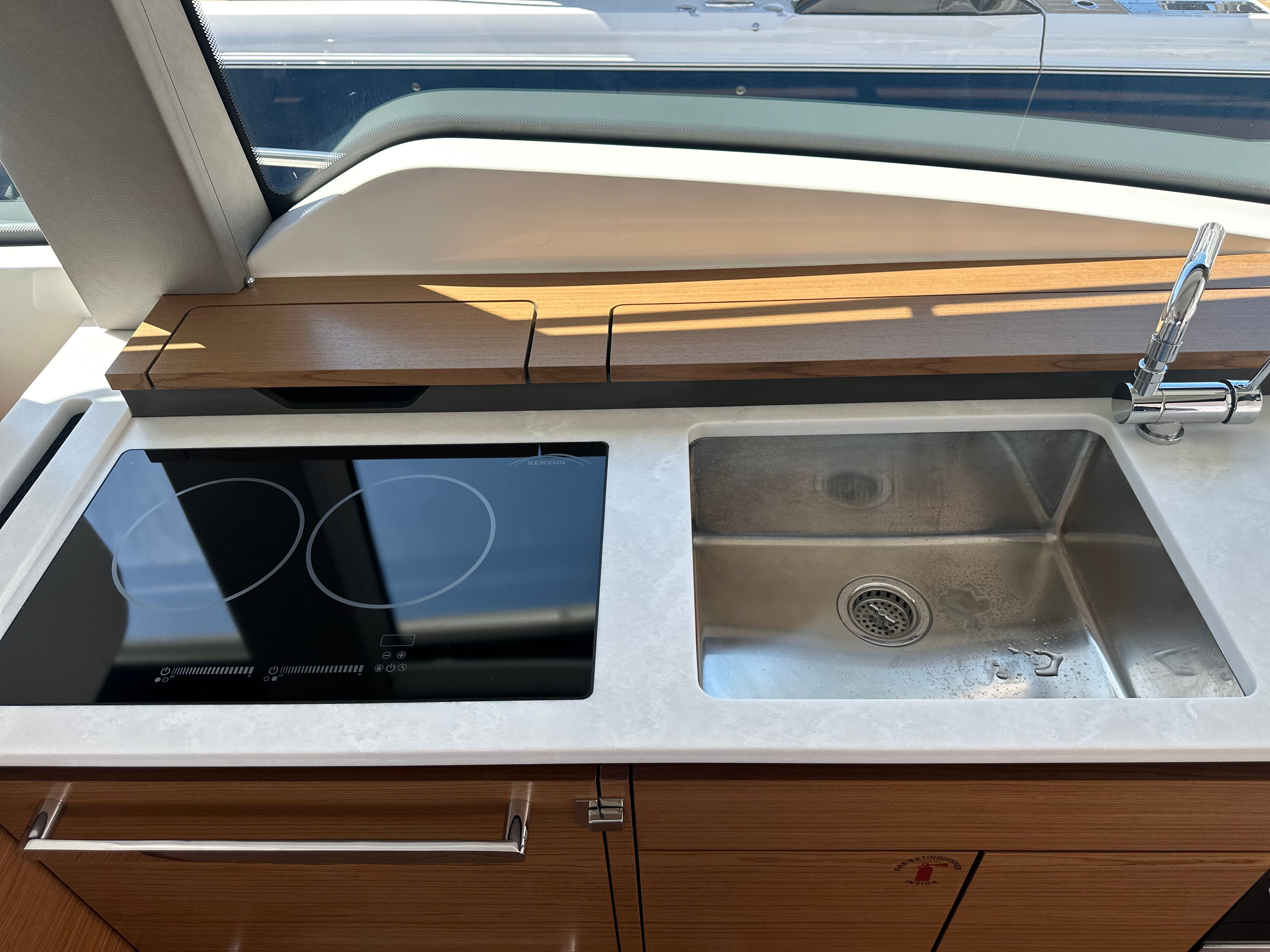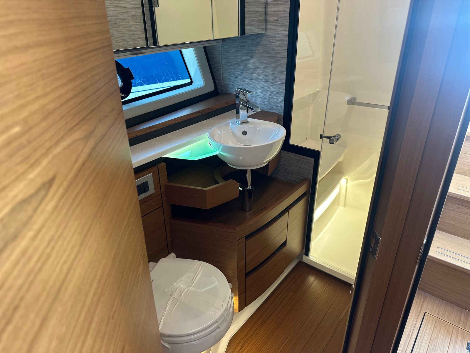 Practicality meets luxury in the Tiara Yachts 48 LE. The yacht’s thoughtful design includes ample storage for gear, supplies, and personal items, making it easy to stay organized during extended trips. The integrated bow thruster and Mercury JPO system simplify docking and maneuvering, even in crowded marinas or challenging conditions. Fuel efficiency is enhanced by the advanced engine technology, allowing you to enjoy longer journeys with fewer stops. Maintenance is streamlined with features like the oil changer for the generator and the Electrosea strainer, reducing downtime and keeping your yacht in top condition. The all-chain windlass and macerator add convenience for anchoring and waste management, while the Syn Teak deck offers durability and easy cleaning. Every aspect of the 48 LE is designed to make ownership as enjoyable and hassle-free as possible.