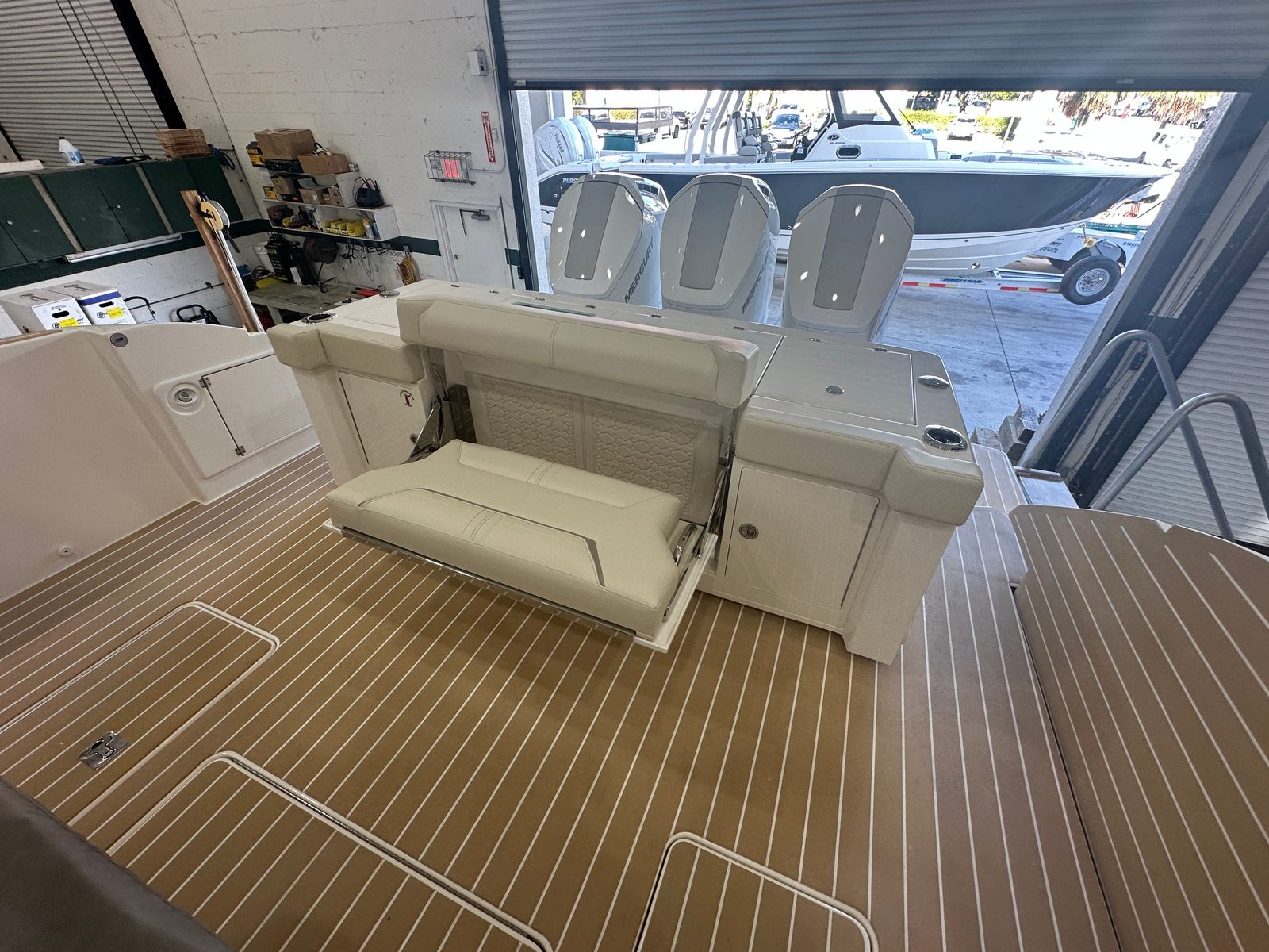 At the heart of the Tiara Yachts 48 LS is a powerhouse trio of engines: Triple Mercury V12 600HP, delivering a combined 1800 horsepower. This formidable setup ensures exhilarating speed, smooth acceleration, and reliable performance in a variety of conditions. The integration of the Mercury JPO (Joystick Piloting for Outboards) and a bow thruster offers unmatched maneuverability, making docking and close-quarters handling effortless, even for less experienced captains. Whether you are chasing the horizon or navigating tight marinas, the 48 LS provides confidence-inspiring control and a thrilling ride every time you take the helm.