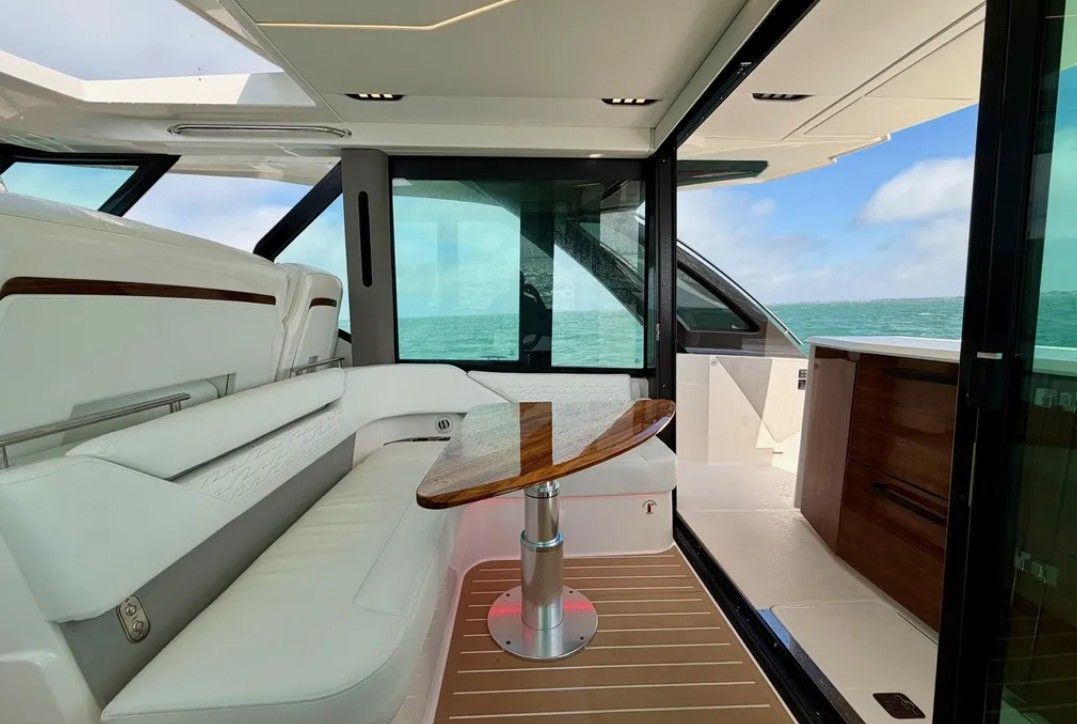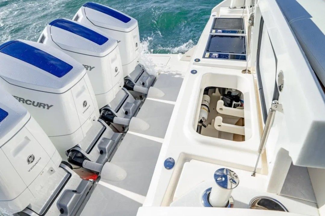 Powered by quad Mercury 600 V12s with 190 hours, with the full 200-hour service completed by Mercury in February 2026. Turnkey and ready with Tiara’s proven performance, refined finishes, and seamless indoor-outdoor layout.