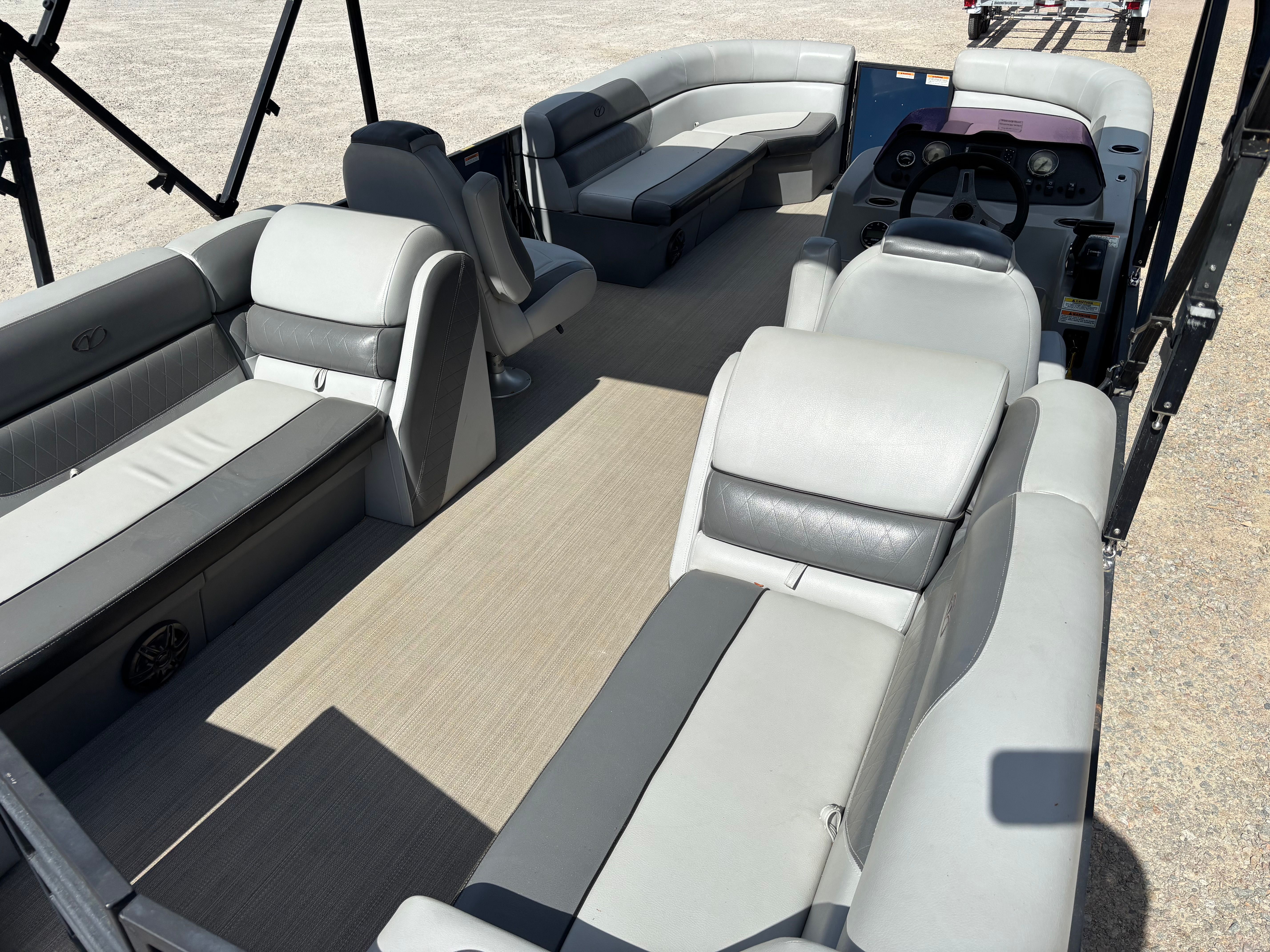 Powered by a single engine with an impressive 175 horsepower, the Veranda Vista 22RC delivers the perfect balance of power and efficiency. With 723 engine hours, this pontoon boat demonstrates reliability and proven performance on the water. The robust engine ensures smooth acceleration, responsive handling, and the capability to cruise comfortably at various speeds. Whether you’re towing water toys, heading out for a leisurely sunset cruise, or exploring new waterways, the Vista 22RC’s engine provides the confidence and excitement you seek in a pontoon boat for sale.