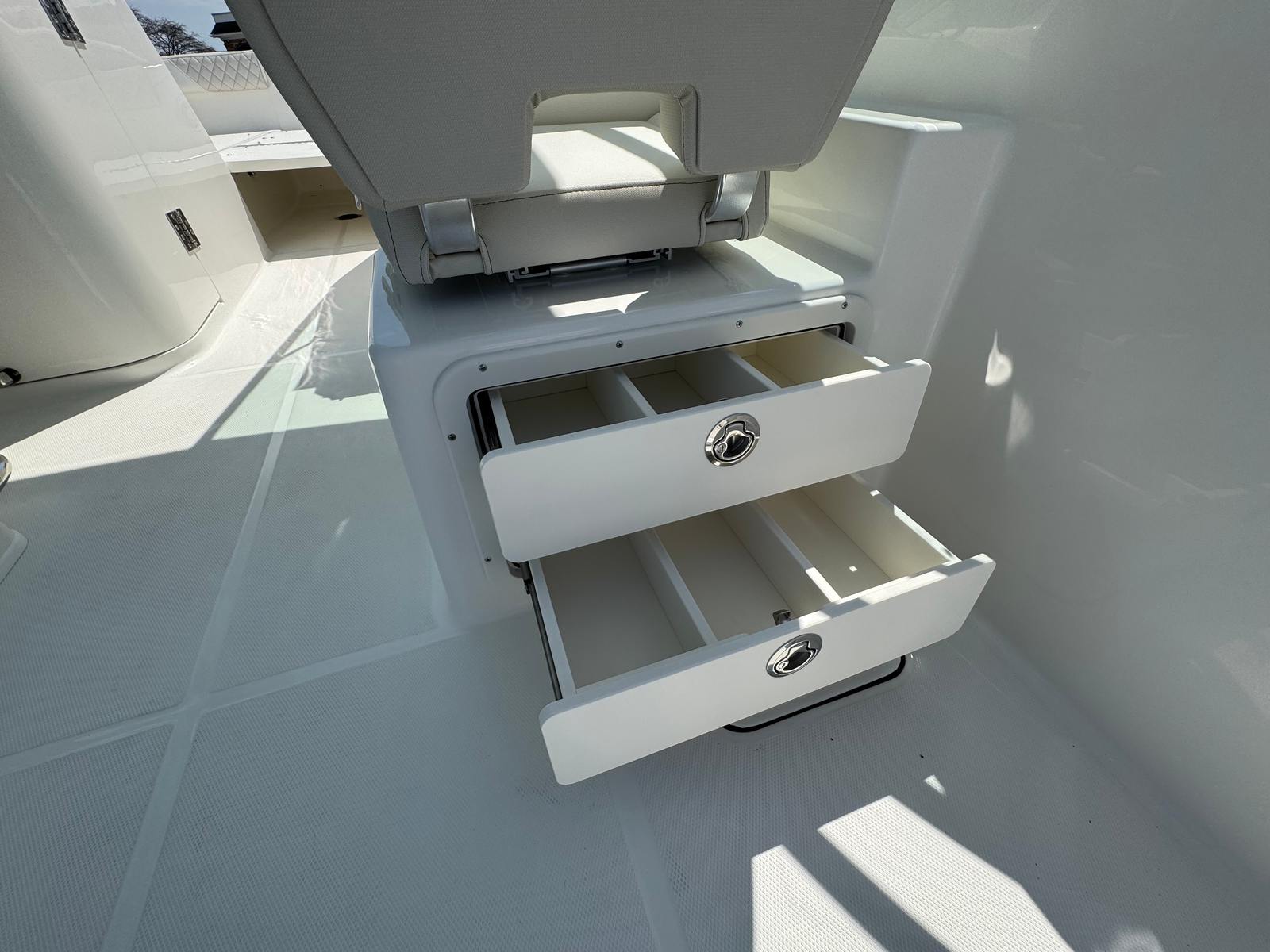 Powered by twin Yamaha T-F115XB engines, the World Cat 230 DC offers a combined horsepower of 230, ensuring robust performance for a variety of activities. With only 1 engine hour, these outboards are virtually brand new, promising reliability and efficiency for years to come. The dual engine setup provides enhanced maneuverability, smooth acceleration, and the confidence to tackle both calm lakes and choppy coastal waters. Whether you’re cruising, fishing, or towing water toys, the World Cat 230 DC delivers a responsive and exhilarating ride.