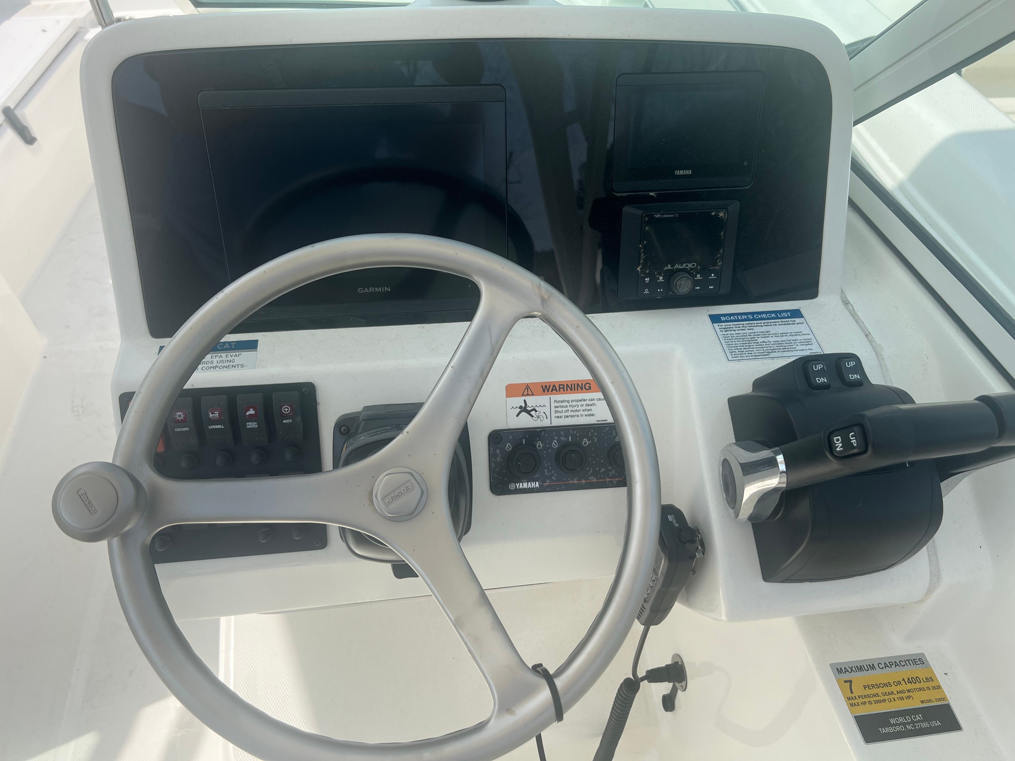 Owning the World Cat 230 DC dual console boat brings a host of recreational and social benefits. The spacious dual console layout offers comfortable seating for family and friends, making it ideal for group outings, sunset cruises, or lively gatherings on the water. The open design allows for easy movement throughout the boat, while the hardtop provides shelter from the sun and rain, ensuring comfort in all weather conditions.The advanced electronics and navigation systems make every trip stress-free, whether you’re exploring new waterways or heading out for a day of fishing. The ski tow and rocket launchers cater to watersports enthusiasts and anglers alike, offering endless opportunities for fun and excitement. The stylish hull color and boot stripe ensure you’ll make a statement wherever you go, while the Edson Wheel guarantees smooth, responsive handling for captains of all skill levels.