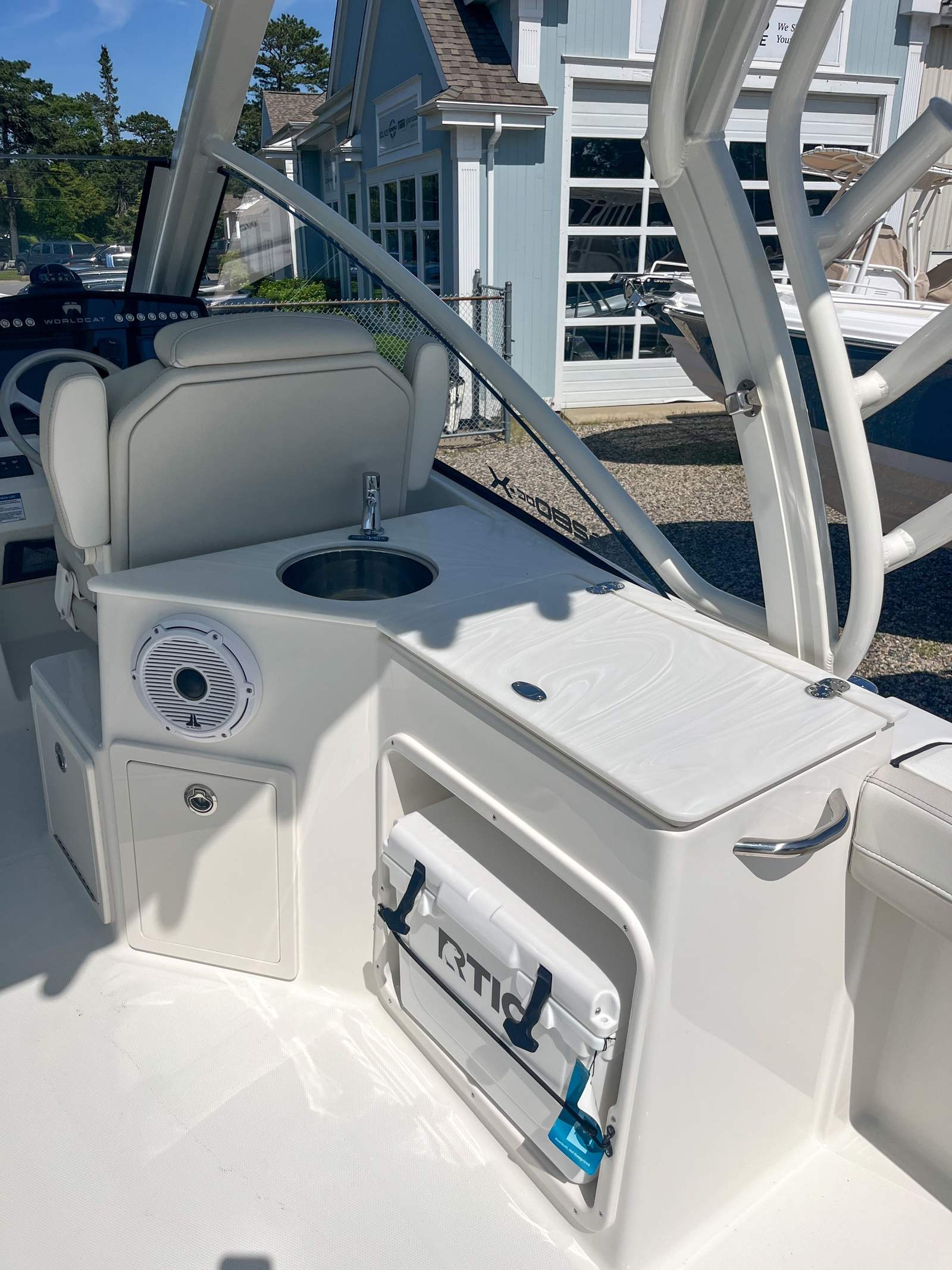 Beyond its recreational appeal, the World Cat 280 DC is designed with practicality in mind. The Yamaha Helm Master with Joystick simplifies docking and close-quarters maneuvering, reducing stress and making boating more accessible for everyone. The retractable ski pylon is easy to deploy and stow, maximizing deck space when not in use. The boat’s layout provides ample storage for gear, water toys, and personal items, keeping the deck organized and clutter-free. The hard top offers protection from the sun and rain, ensuring comfort in a variety of weather conditions. With its efficient twin engines and advanced controls, the World Cat 280 DC is both fuel-efficient and easy to operate, making it a smart choice for boaters who value convenience and performance.