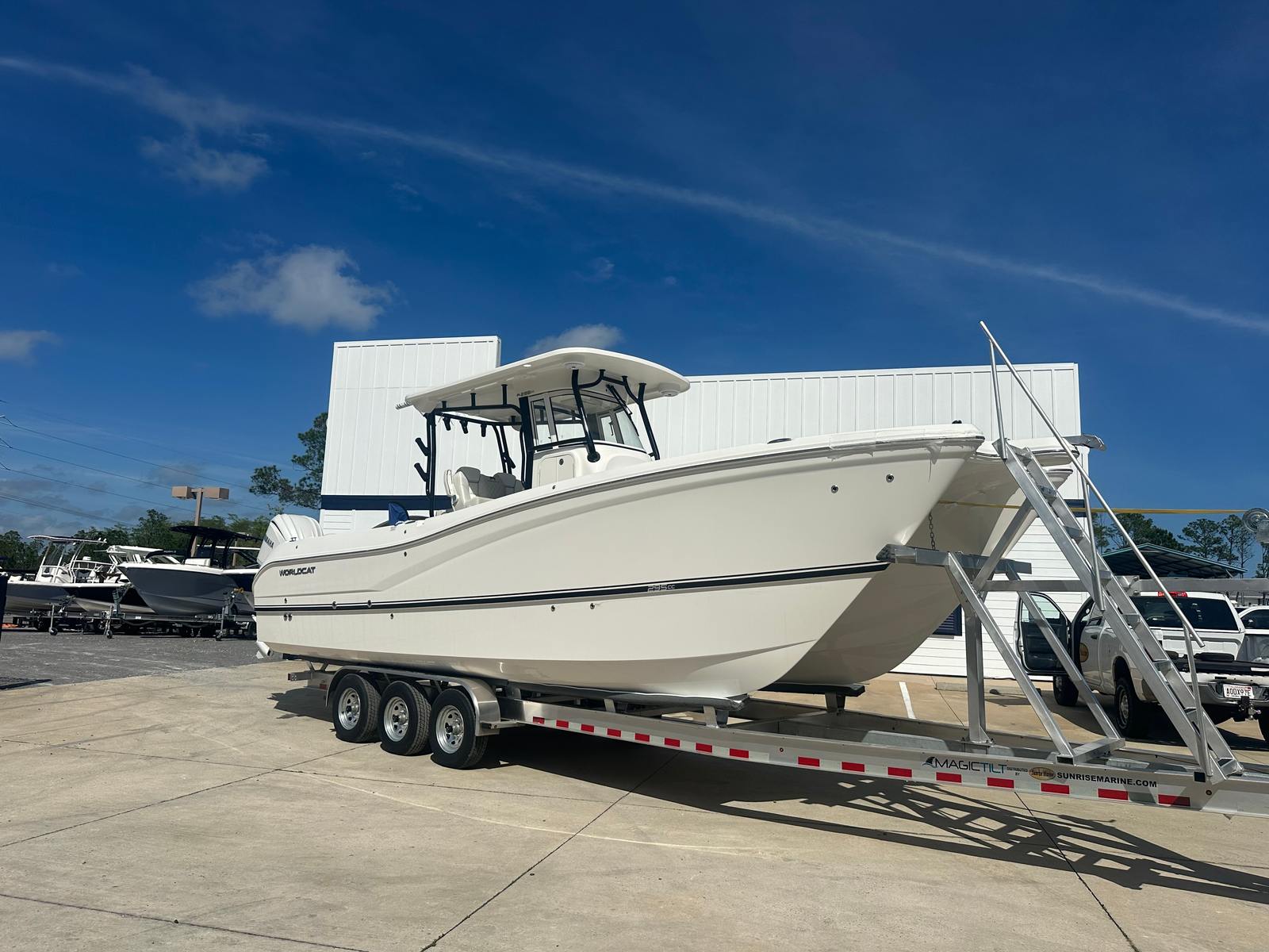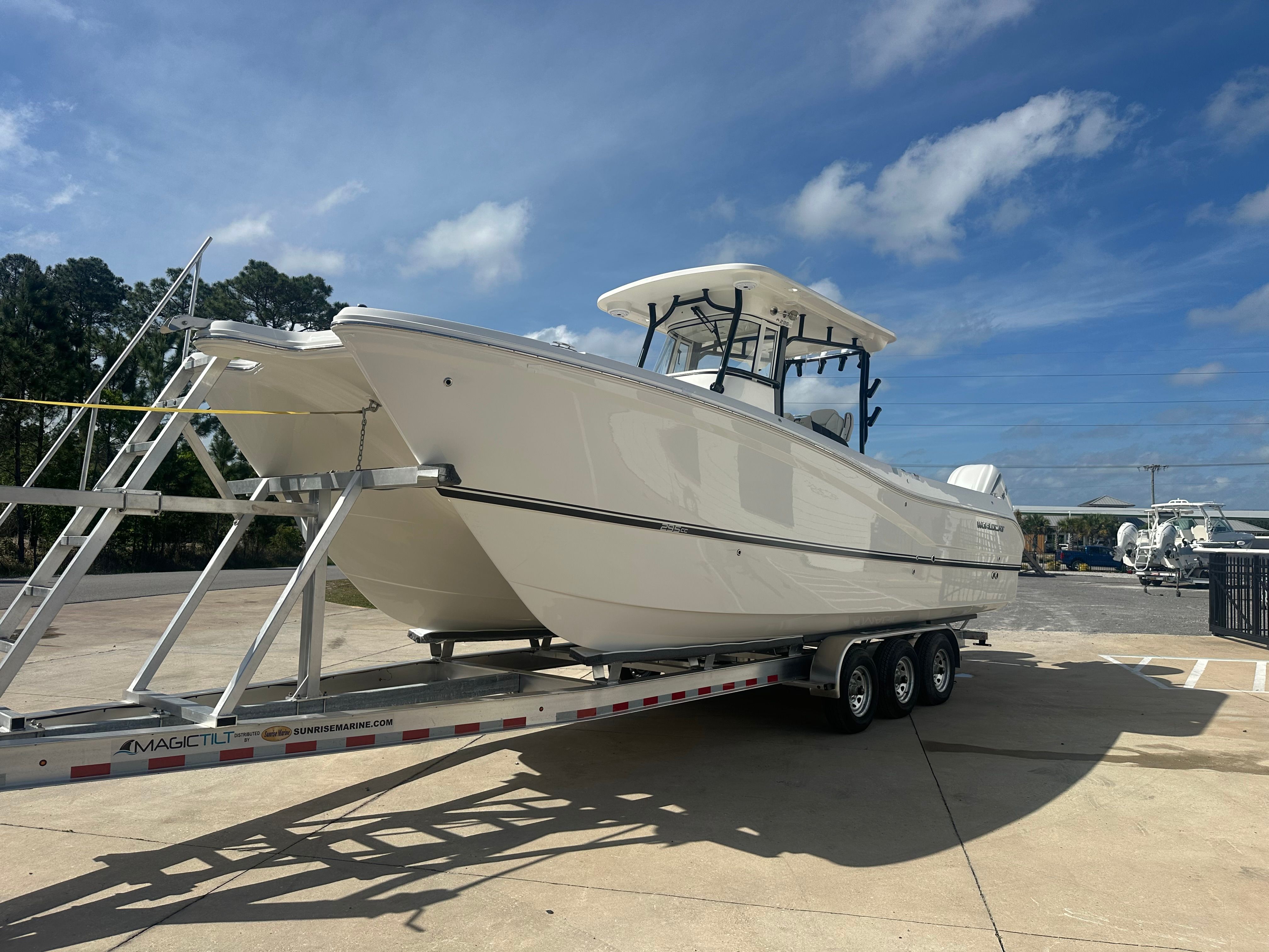 The 2026 World Cat 295 CC is a 29-foot center console that combines cutting-edge technology with luxurious comfort. Measuring 29.08 feet in length, this vessel offers ample space for both adventure and relaxation. As a new model, it boasts the latest advancements in marine engineering and design, ensuring you enjoy a modern and reliable boating experience. The World Cat 295 CC’s striking white full hull, accented by a bold black bootstripe and black powdercoat option, gives it a sophisticated and sporty appearance that turns heads at the dock and on the open water.