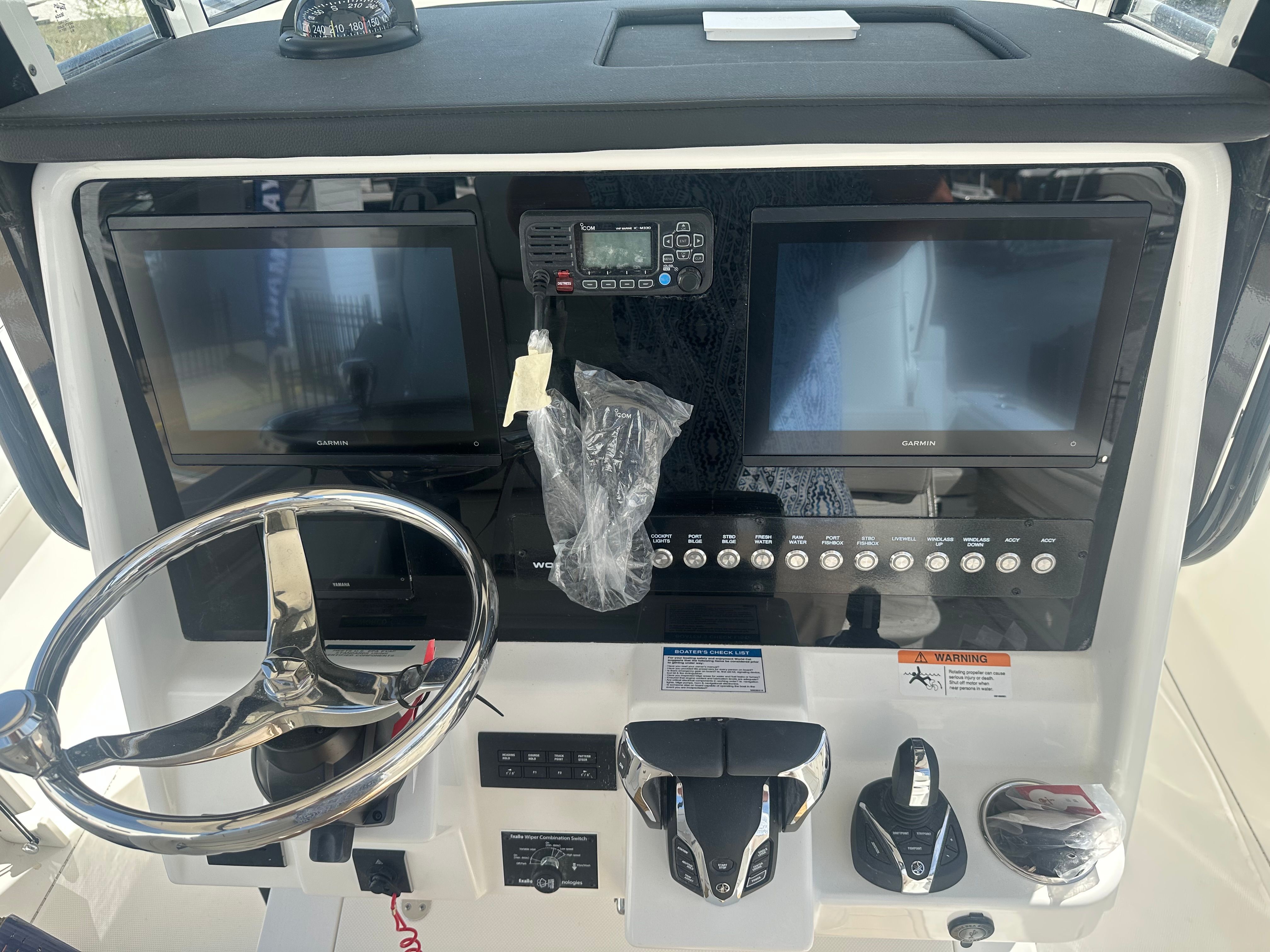 - Yamaha EX Controls, HelmMaster Integrated DES Steering and CL-5 Display, Dual GARMIN 1243xsv's, B175M-1kW CHIRP transducer, Icom 115 VHF Radio