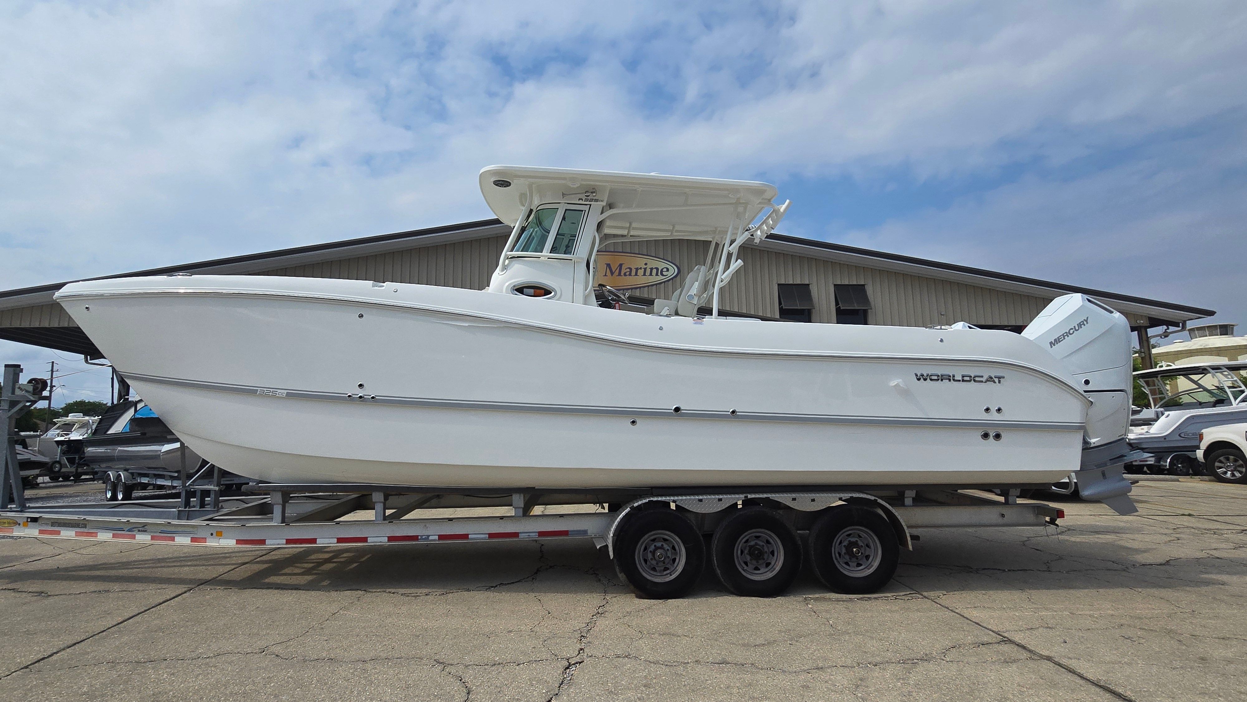 The 2026 World Cat 325 CC Center Console boat for sale is a remarkable blend of power, innovation, and style. With twin Mercury 425 V10 Verado Cold Fusion engines, electric steering with joystick controls, a stereo upgrade, and a motor-well rocket launcher, this vessel is designed to deliver unforgettable experiences on the water. The striking White Full Hull and Stardust Bootstripe ensure that you arrive in style, while the spacious layout and thoughtful features make every trip enjoyable and hassle-free. If you're searching for a World Cat boat for sale that offers unmatched versatility, comfort, and excitement, the 325 CC is ready to exceed your expectations. Discover the possibilities and take the next step toward your dream boating lifestyle by reaching out for more information today.