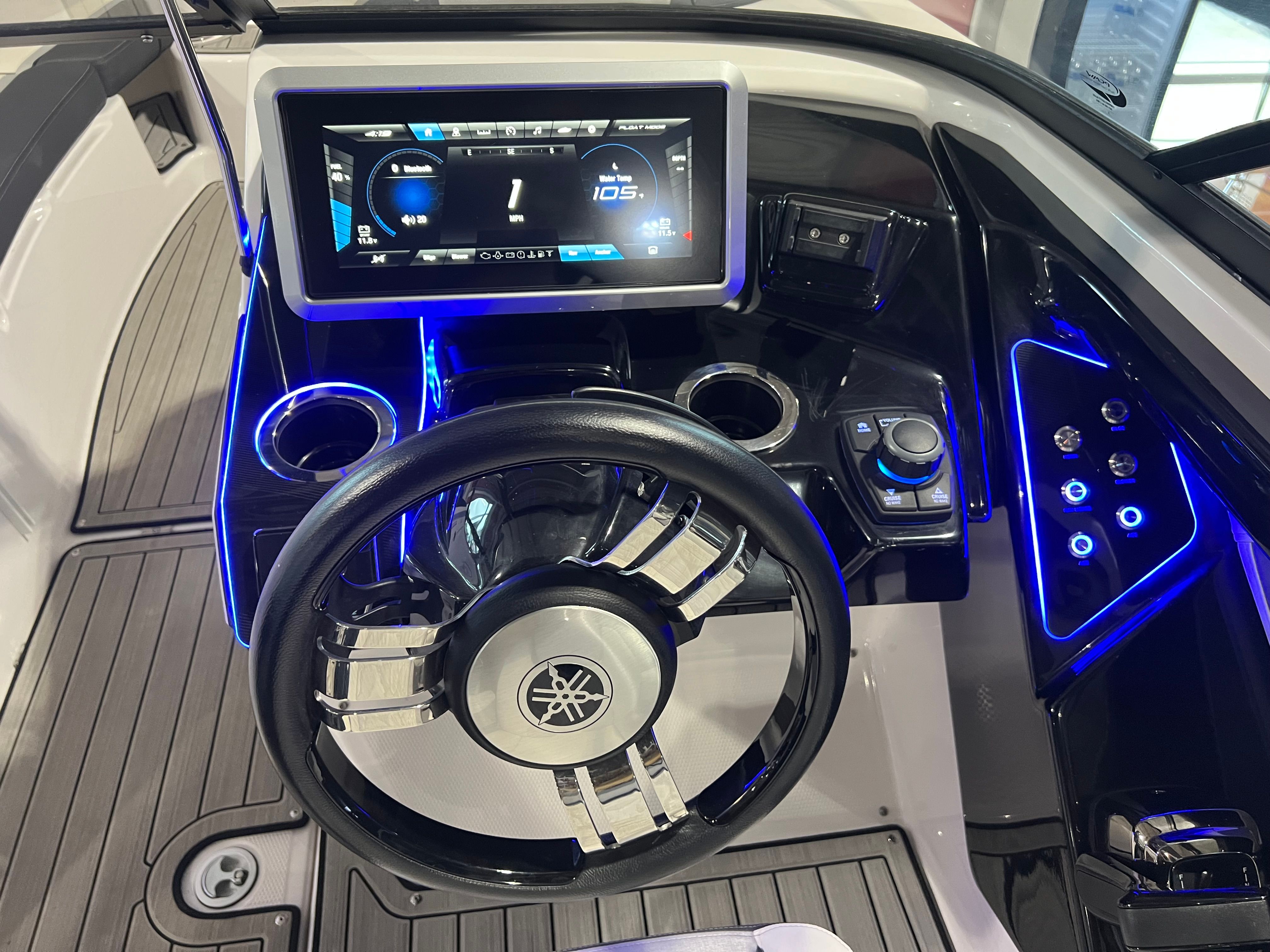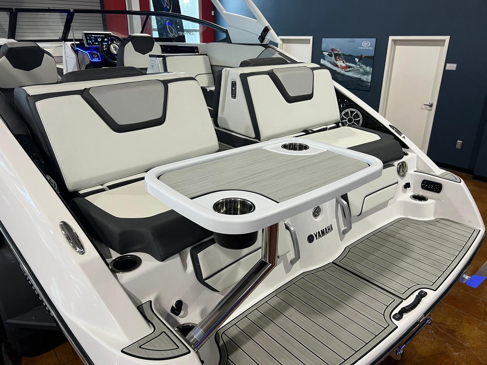 The Yamaha 252 SD is packed with features that elevate your boating experience. Its 24.5-foot length provides ample space for passengers to relax, socialize, and enjoy the open water. The innovative design maximizes every inch of the boat, offering comfortable seating, generous storage options, and easy access to the water. The intuitive helm layout ensures that the captain has full control, with clear instrumentation and ergonomic controls that make navigation effortless. The jet propulsion system not only boosts performance but also allows for shallow water operation, expanding your options for exploration and fun.