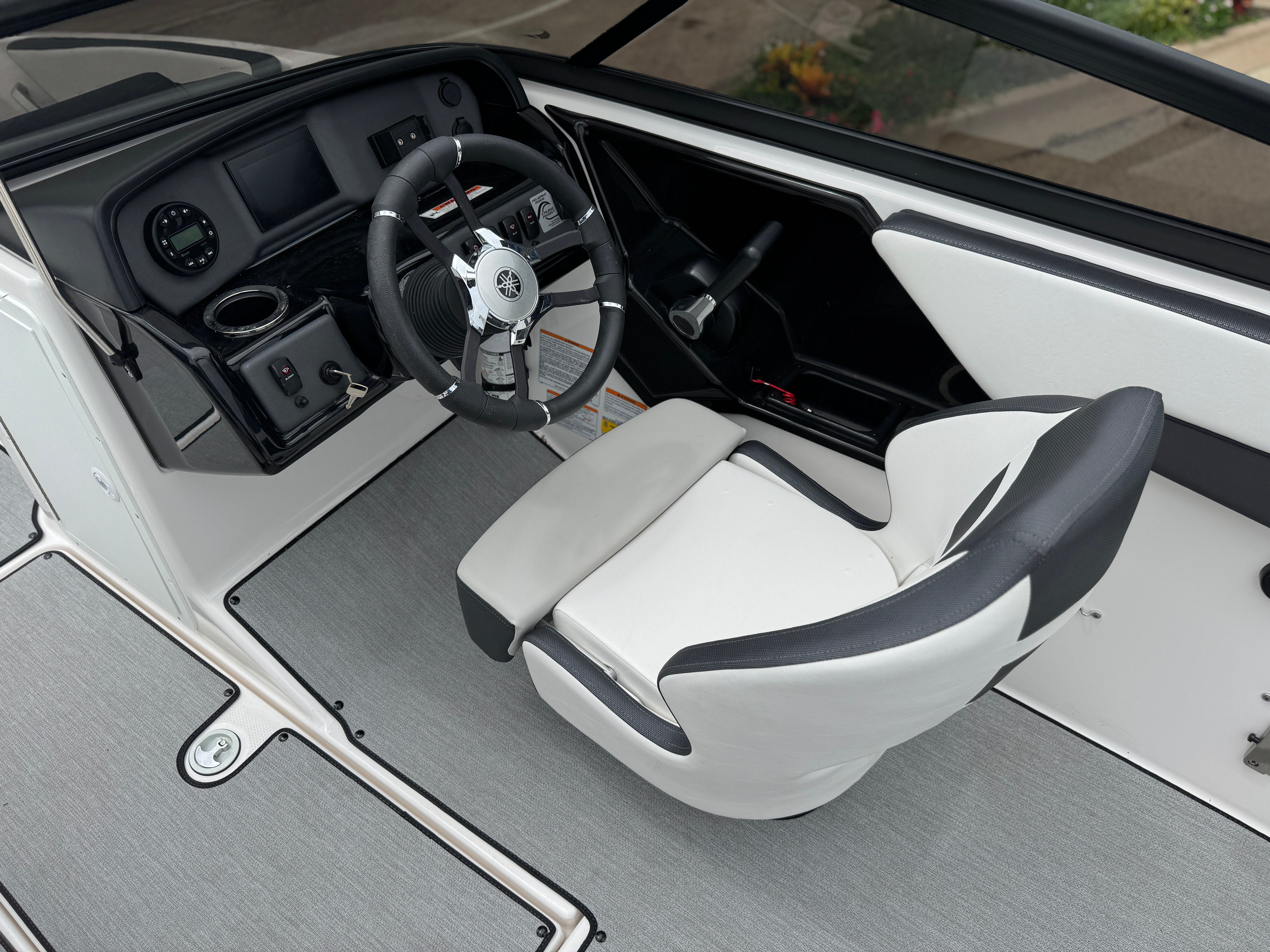 The Yamaha AR195 is as practical as it is fun. Its compact 19.05-foot length makes it easy to trailer, store, and launch, even for those with limited dock space. The jet propulsion system allows for shallow water operation, opening up more areas for exploration and making beaching the boat simple and safe. The efficient engine design helps maximize fuel economy, so you can spend more time on the water and less time at the pump.Storage is thoughtfully integrated throughout the boat, providing plenty of room for gear, water toys, and personal items. The intuitive layout ensures everything you need is within reach, so you can focus on enjoying your time on the water. Whether you’re docking at a busy marina or anchoring in a secluded bay, the AR195’s agile handling and responsive controls make every maneuver effortless.