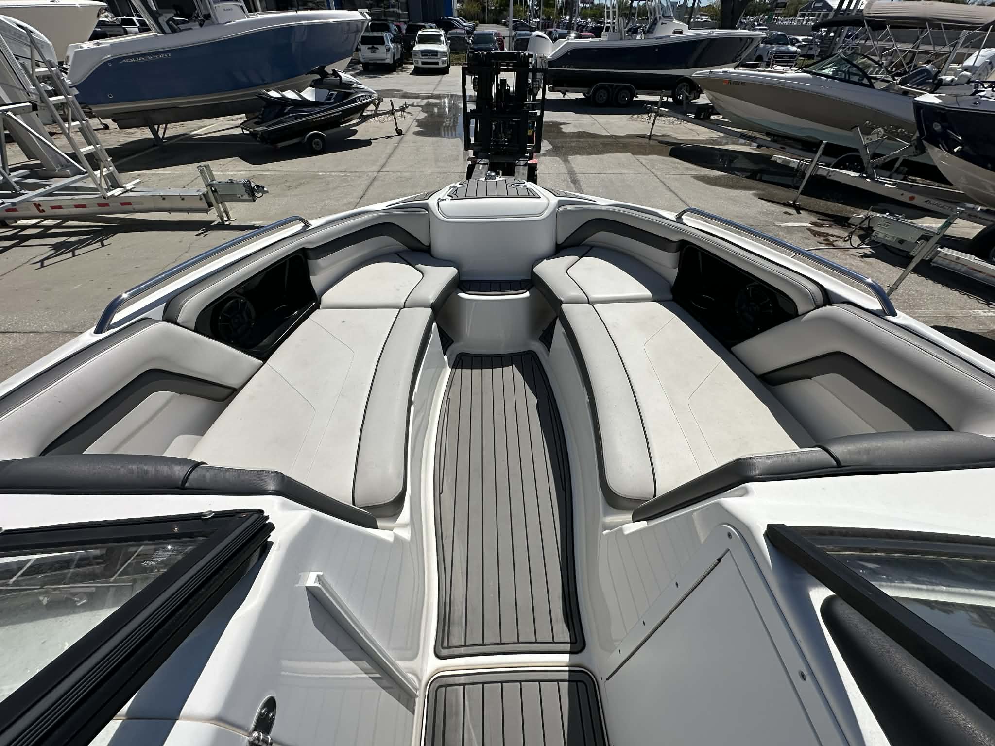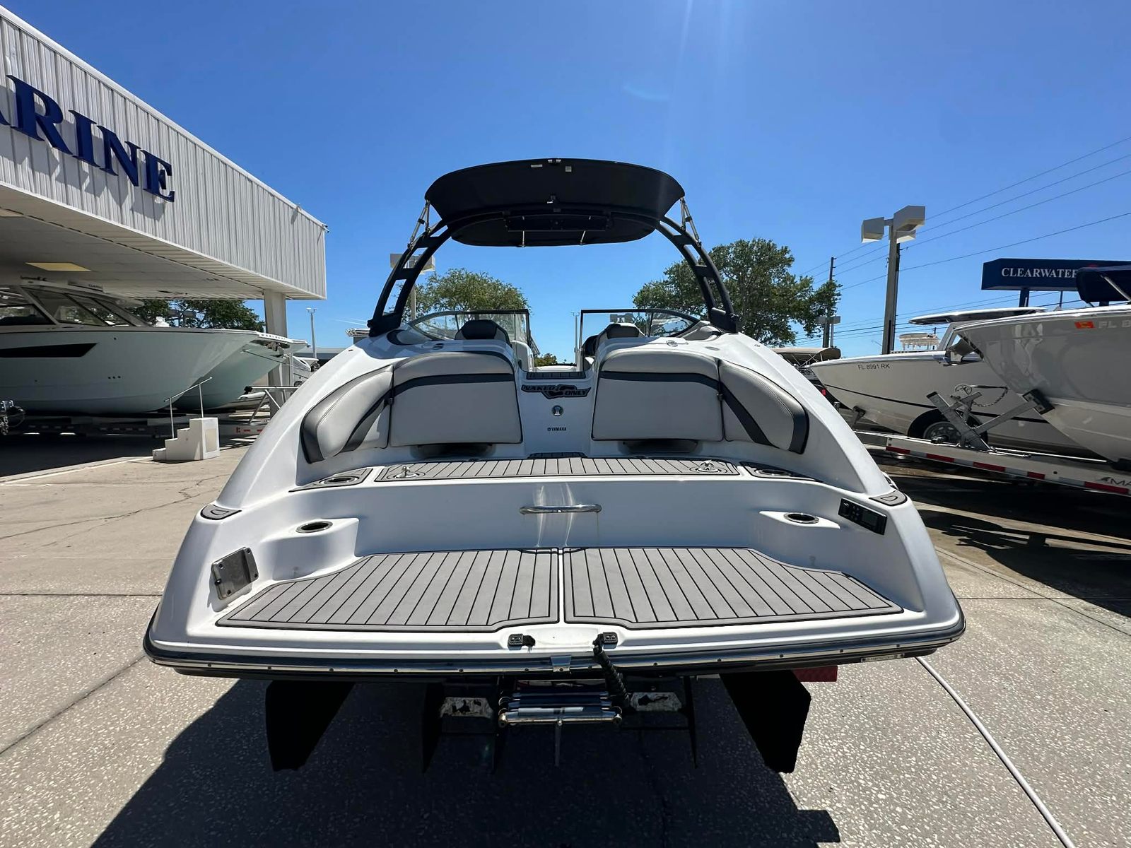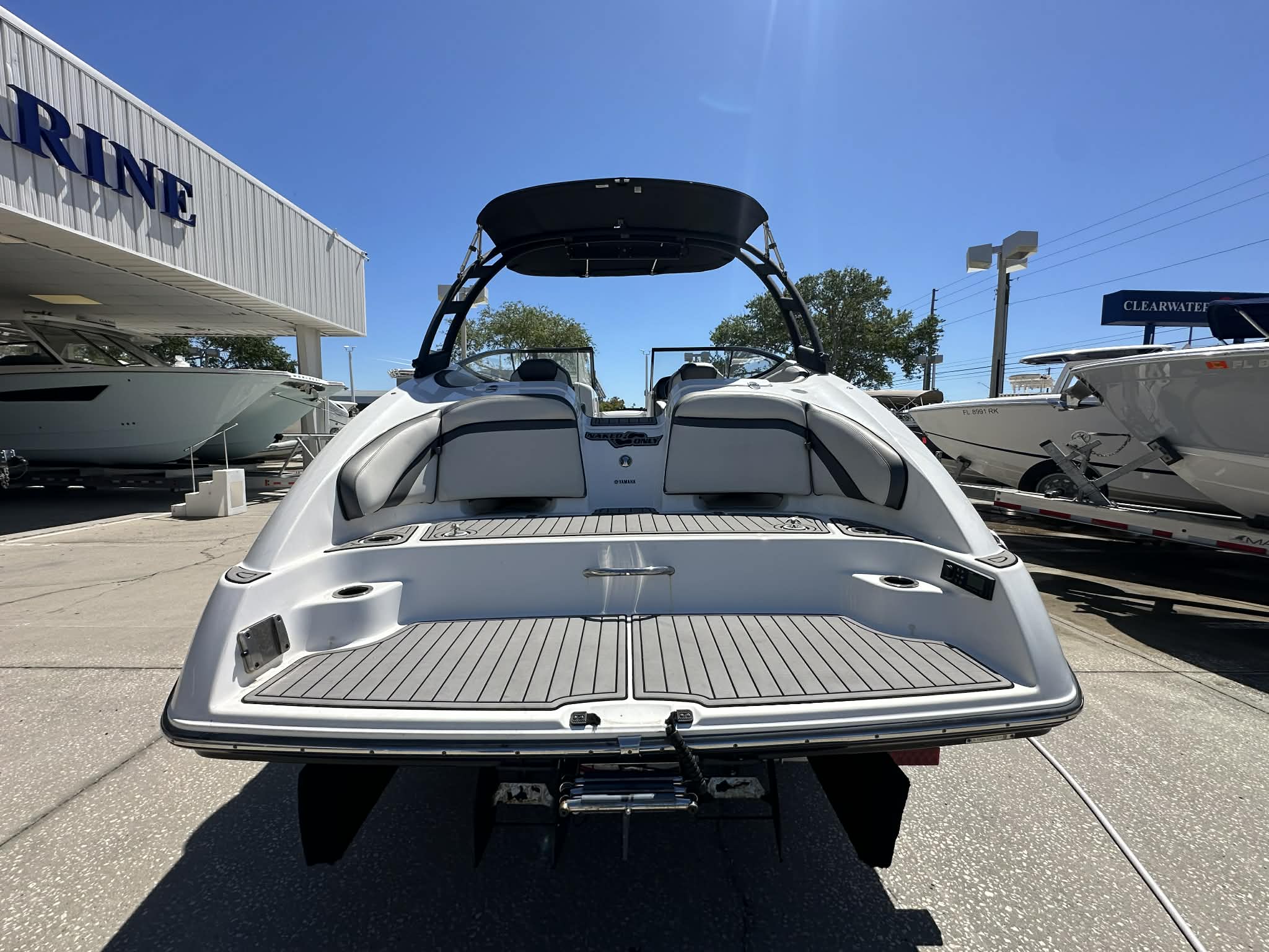 The 2019 Yamaha AR240 is packed with features that enhance your boating experience. The spacious layout provides plenty of room for passengers to stretch out and enjoy the sun. The innovative design maximizes every inch of the 24-foot hull, offering both comfort and functionality. The AR240’s jet propulsion system not only delivers thrilling acceleration but also ensures a shallow draft, allowing you to explore areas that other boats can’t reach.With its dual engines, this Yamaha boat for sale is built for performance and reliability. The intuitive helm puts all controls at your fingertips, making it easy to monitor engine performance and navigate with confidence. The AR240’s stylish exterior and comfortable seating create an inviting atmosphere for socializing, relaxing, or gearing up for watersports.